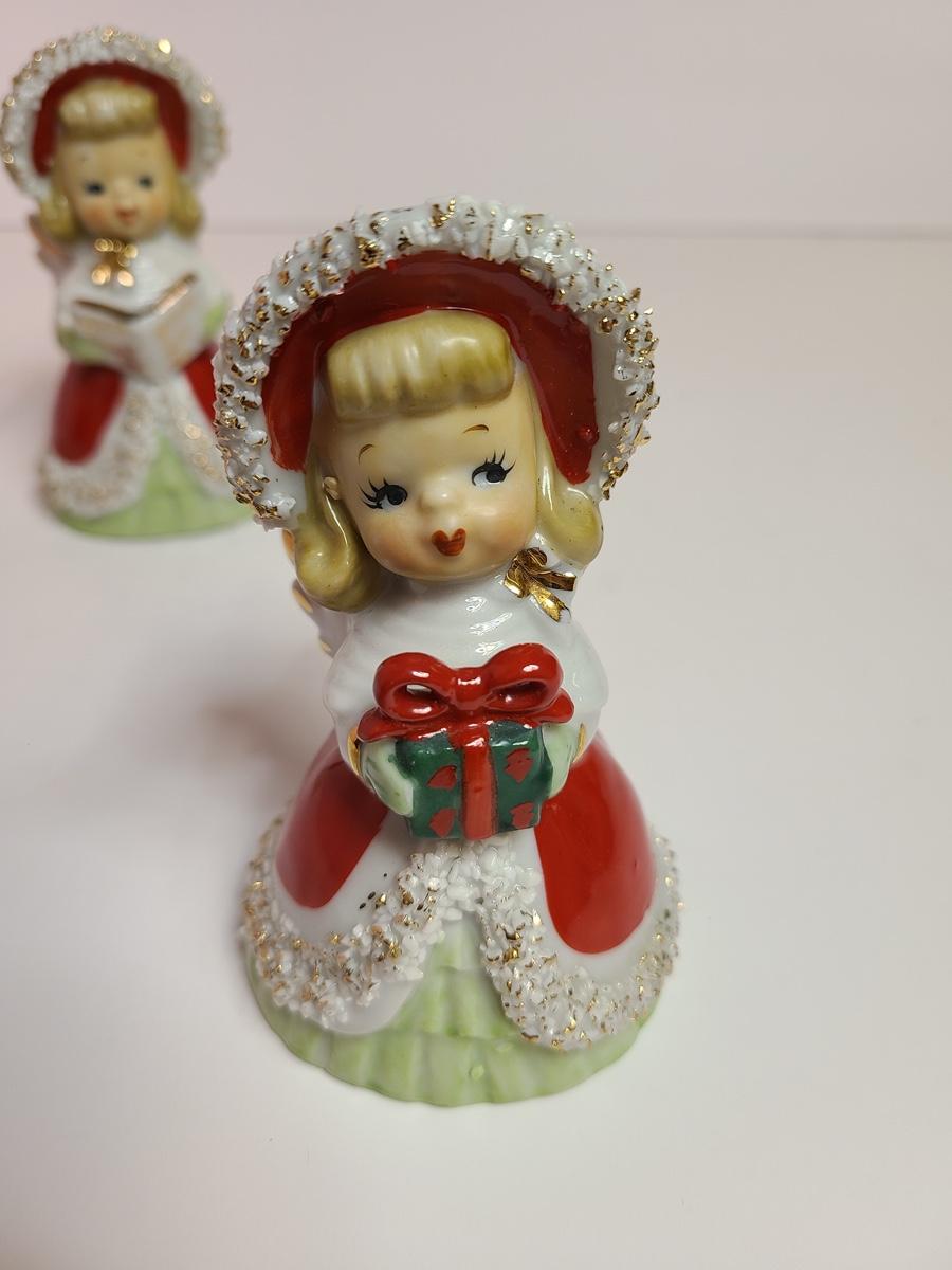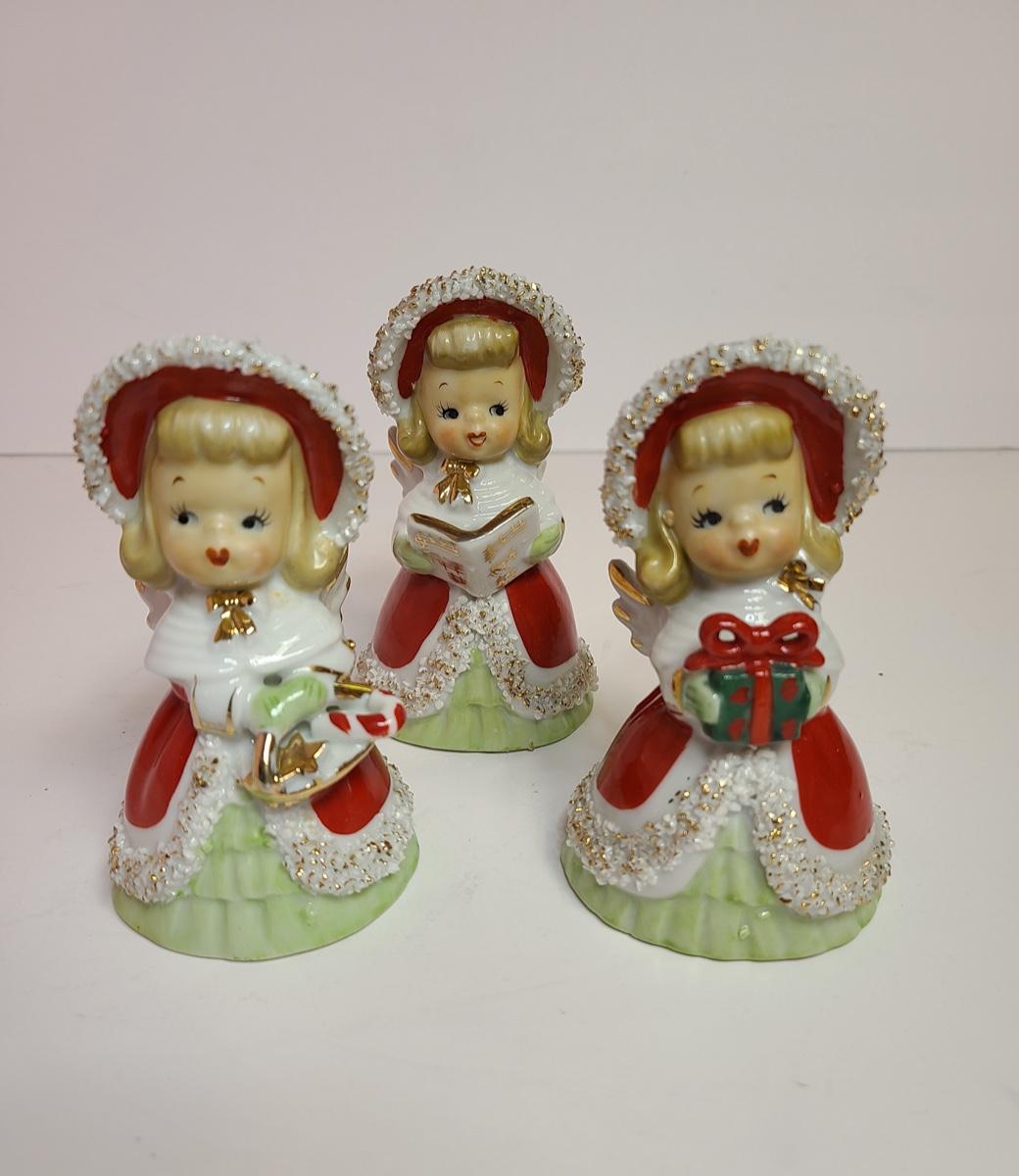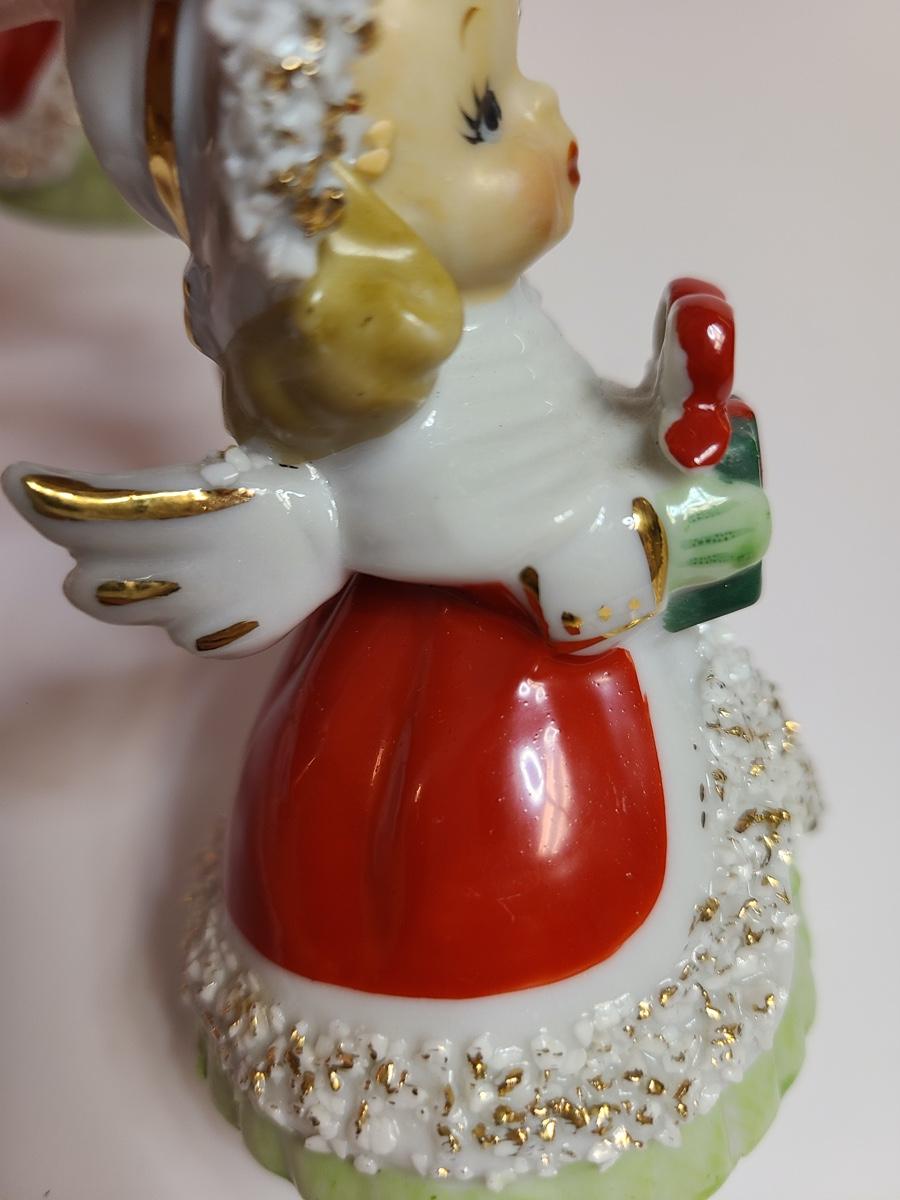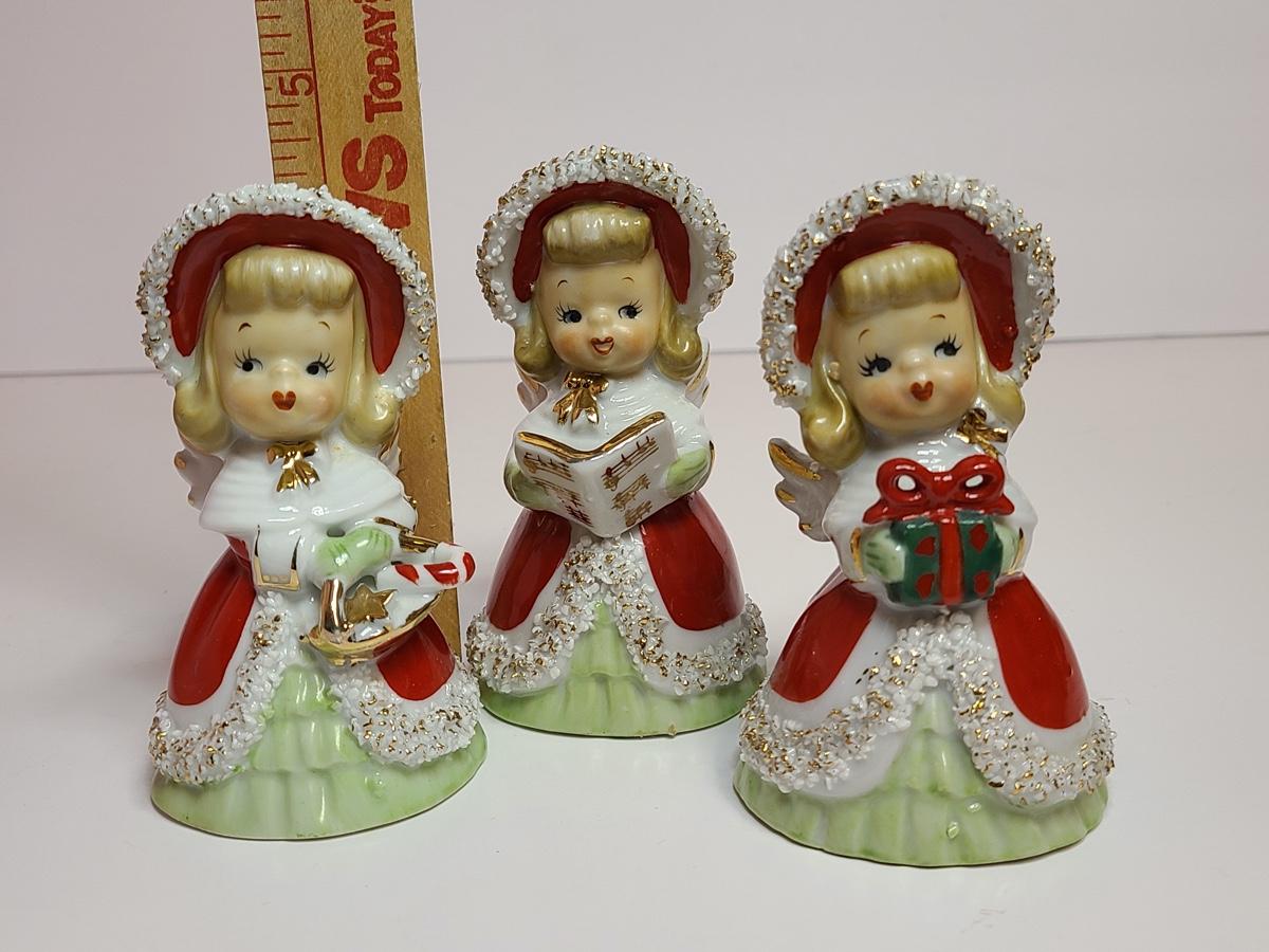 Lot 279: Vintage Lefton Spaghetti Trim Angel Carolers/Bells