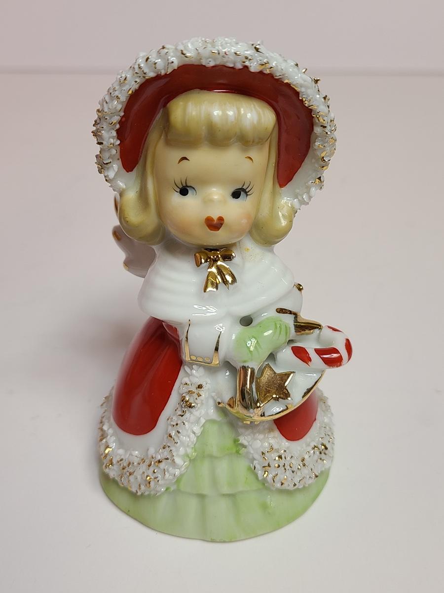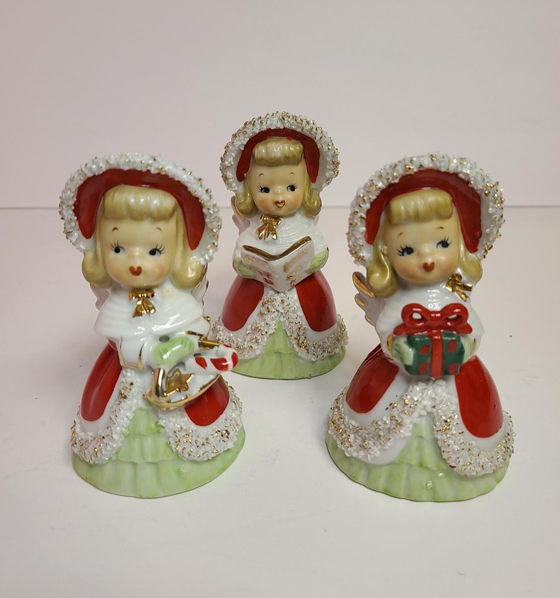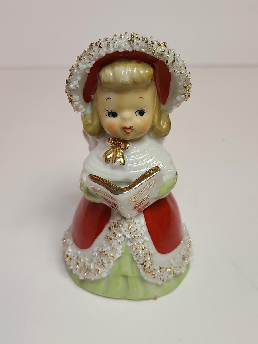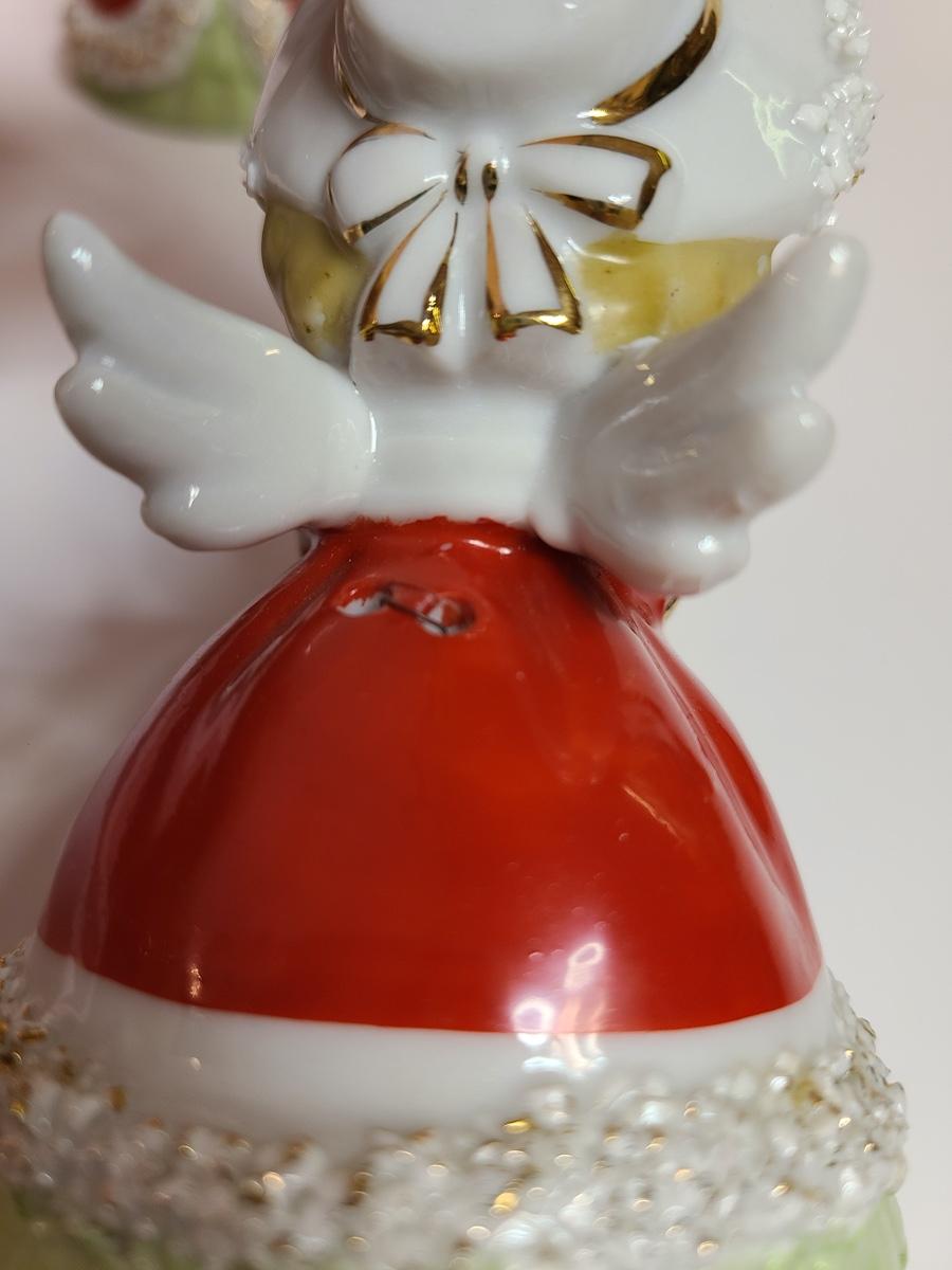 Lot 279: Vintage Lefton Spaghetti Trim Angel Carolers/Bells