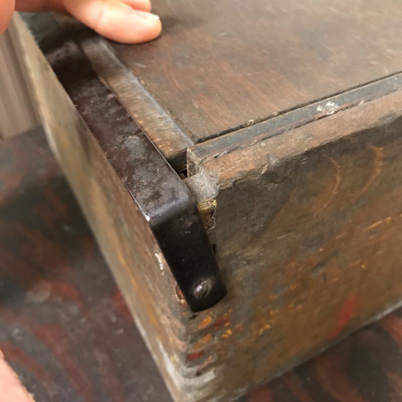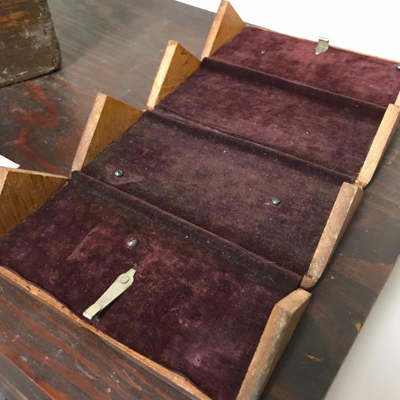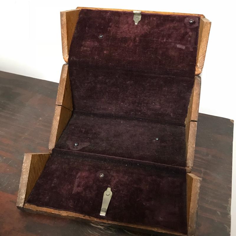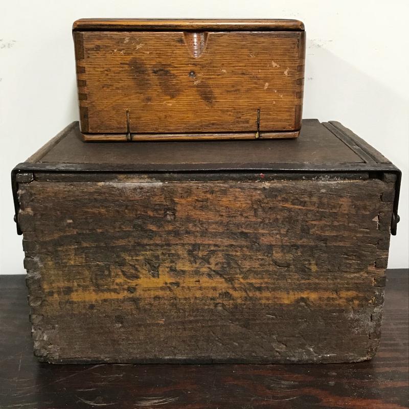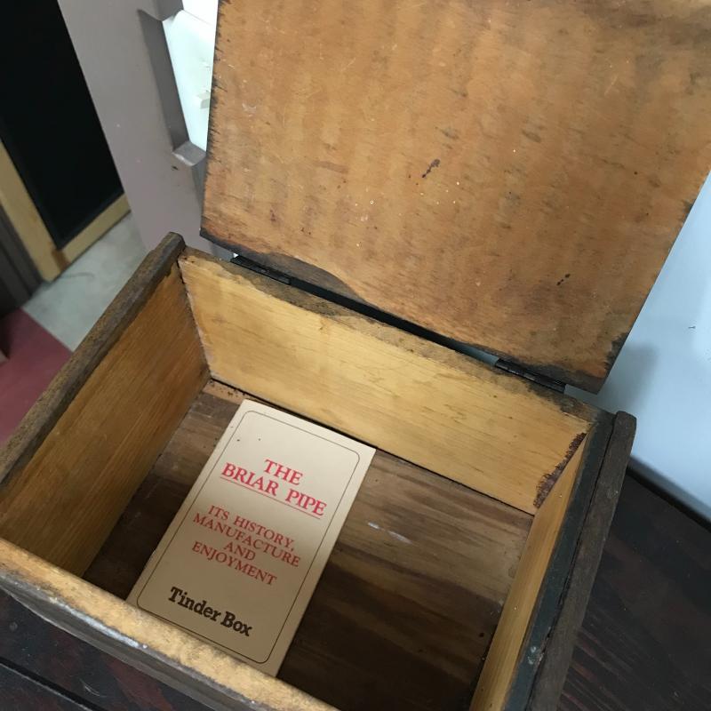 Briar pipe tinder box with unique opening latch. Approx. 9.5”l x 7”w x 5.5”h. Other box opens up and lies flat. See pics. Approx. 6.5” x 3.5”x 3.5”. Shipping available or local pickup in Asheville, NC.