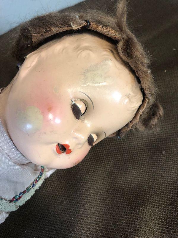 16" Composite Head Rubber arms and legs Used needs new forever home! Unknown Maker Age related wear