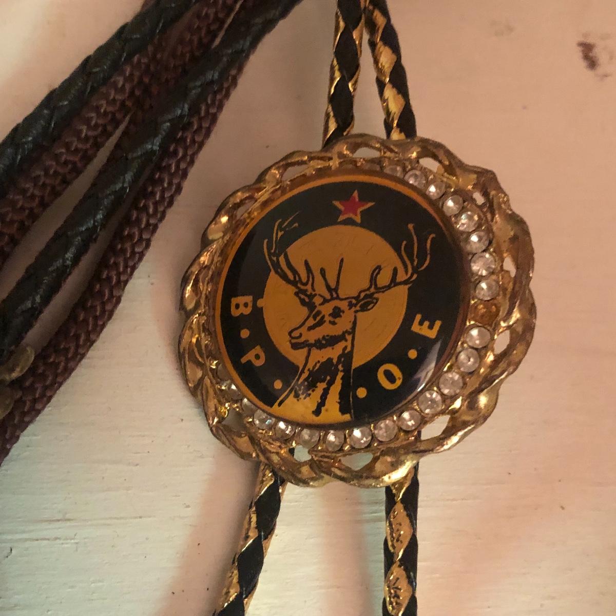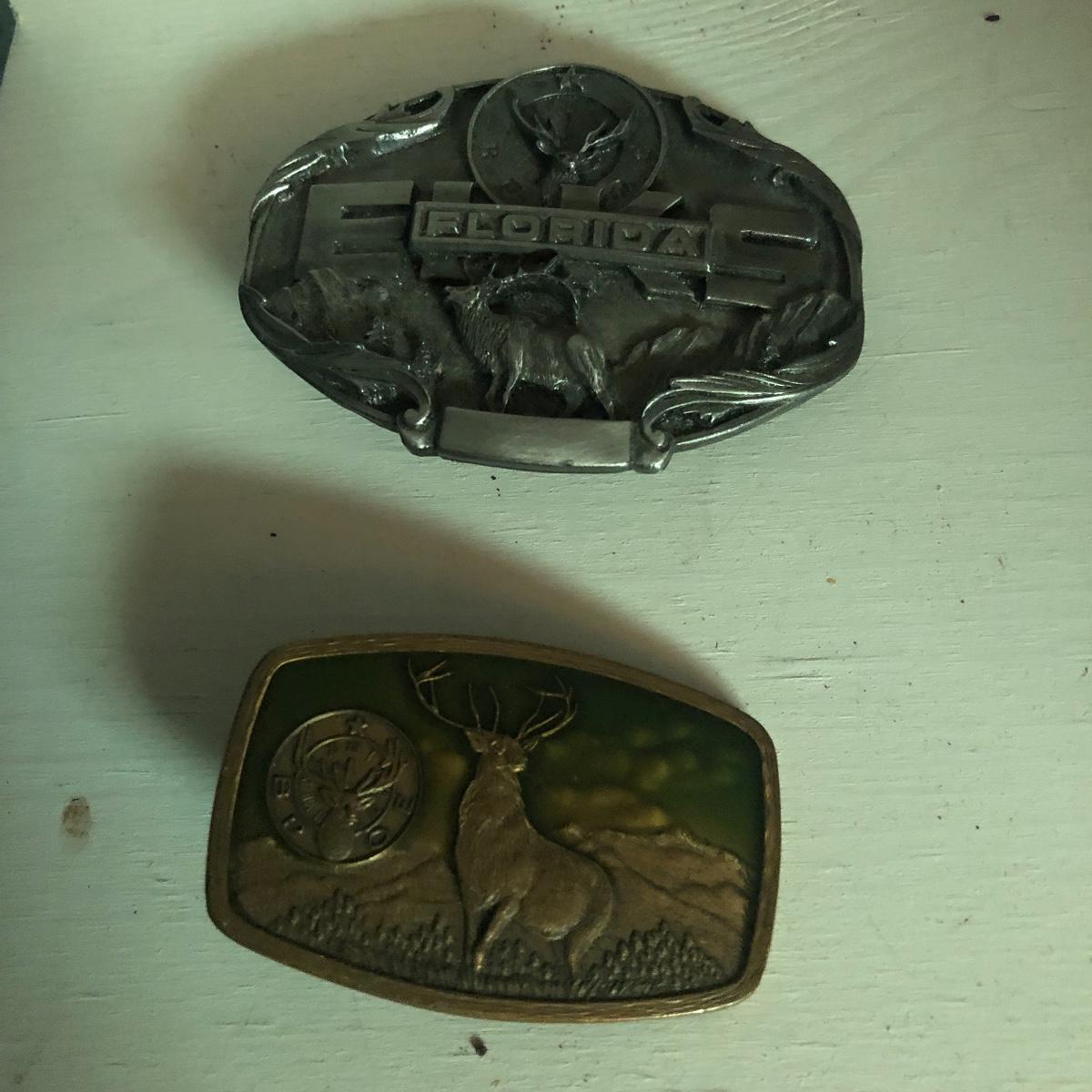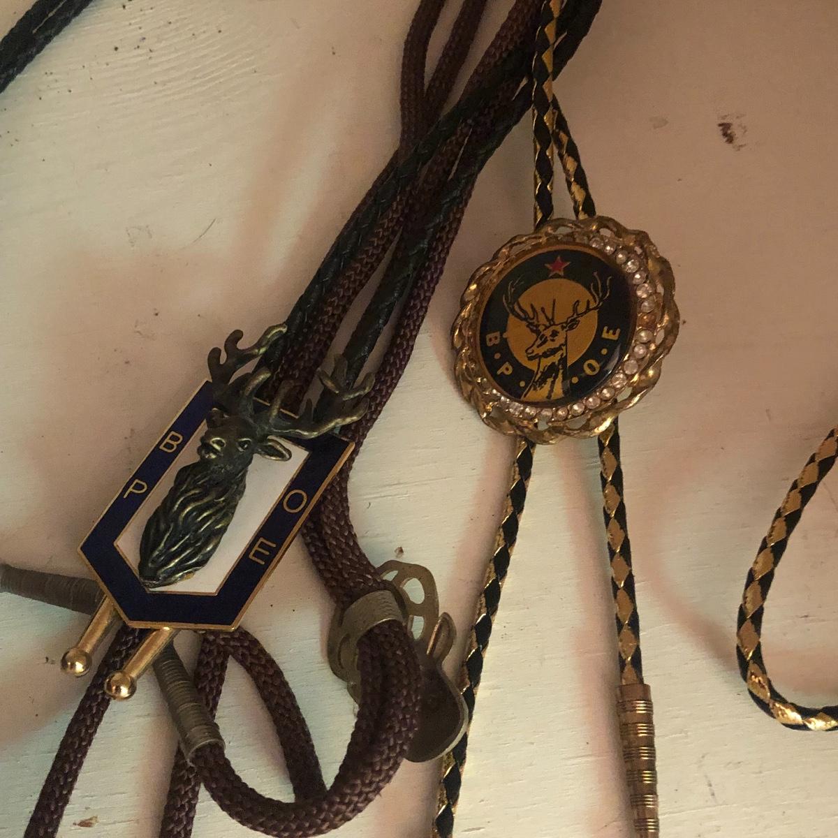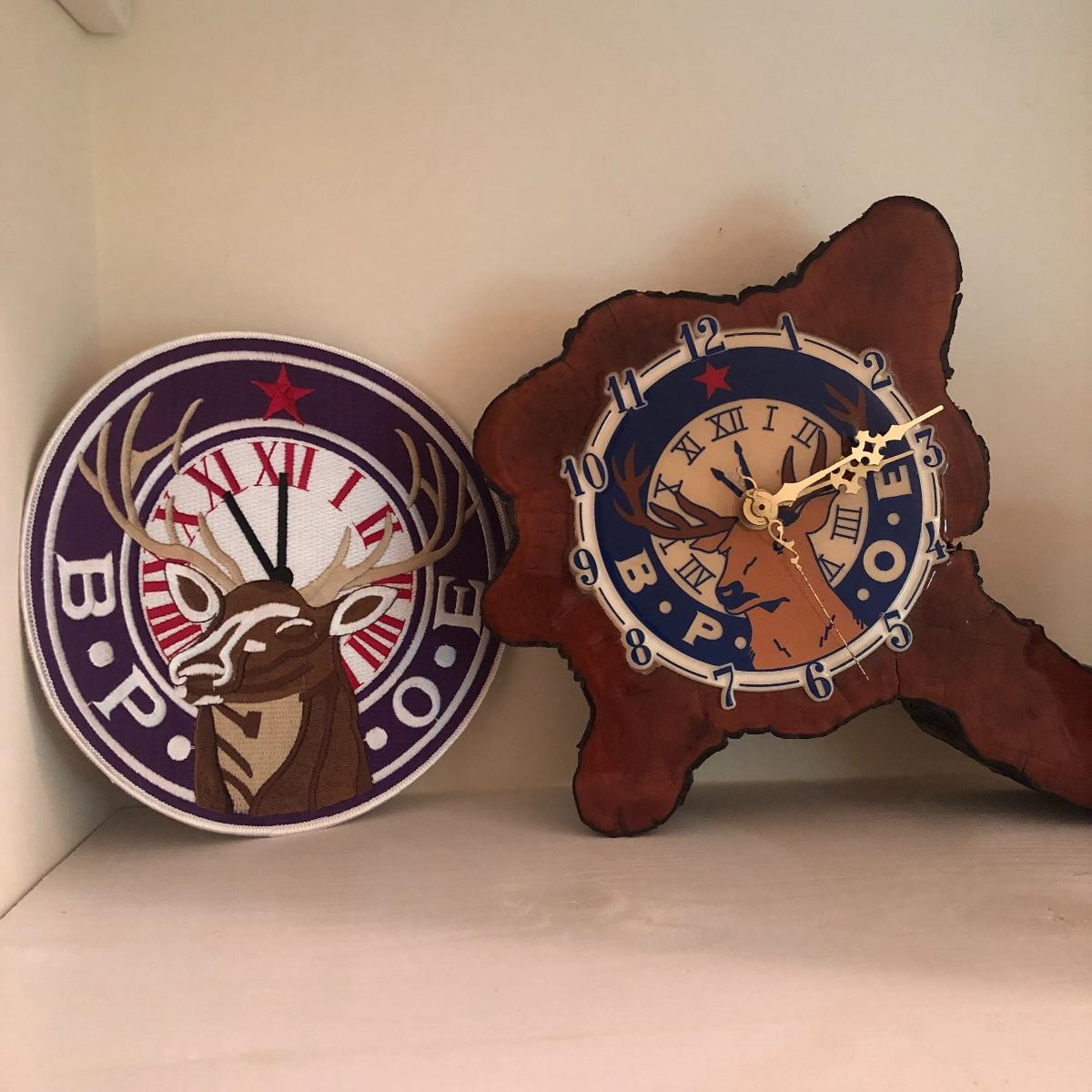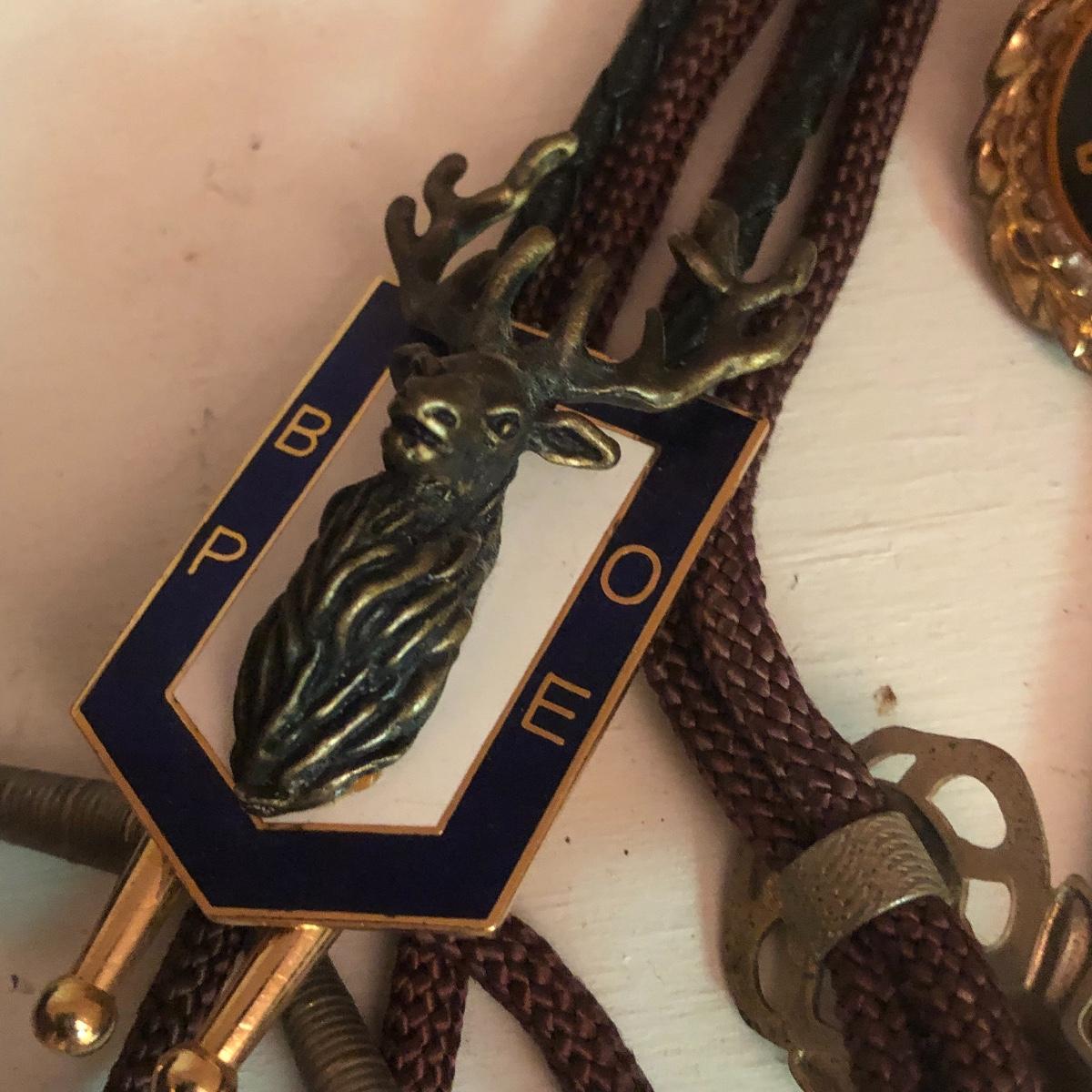If you are involved with the Elks, this lot is for you! There is a wooden wall clock (needs new battery so was not tested), a large round patch, eight shirts (XL mostly), three glasses, loads of pins, belt buckles, a watch and two vests COVERED in pins! Shipping Available.