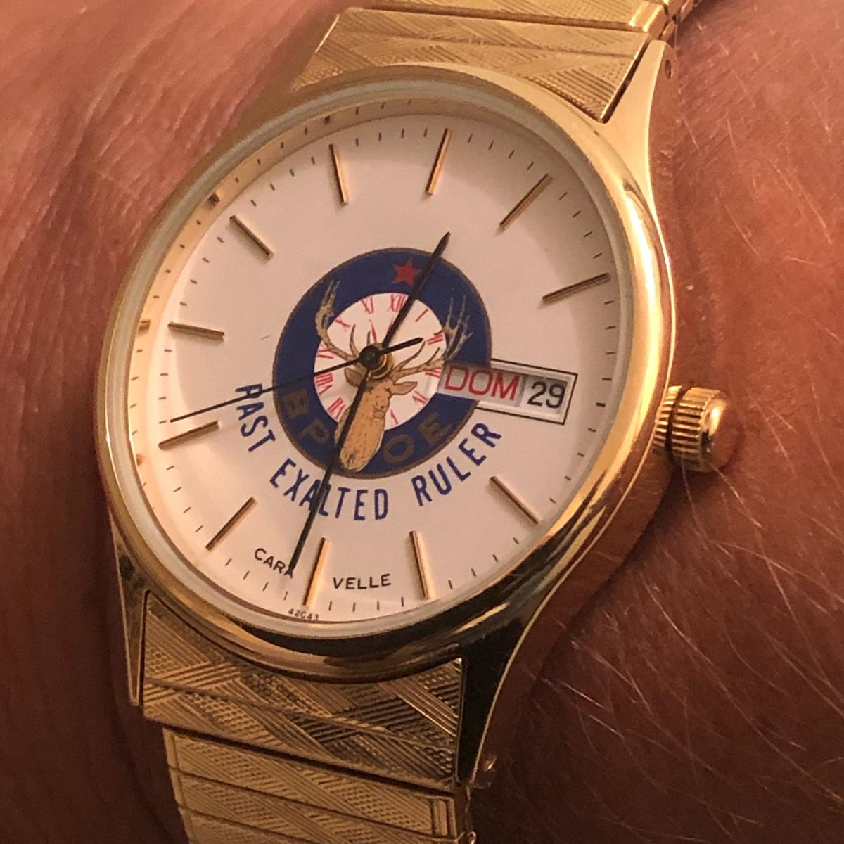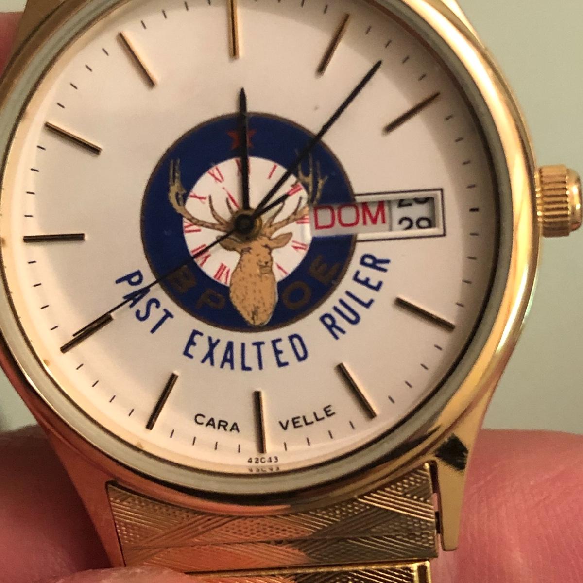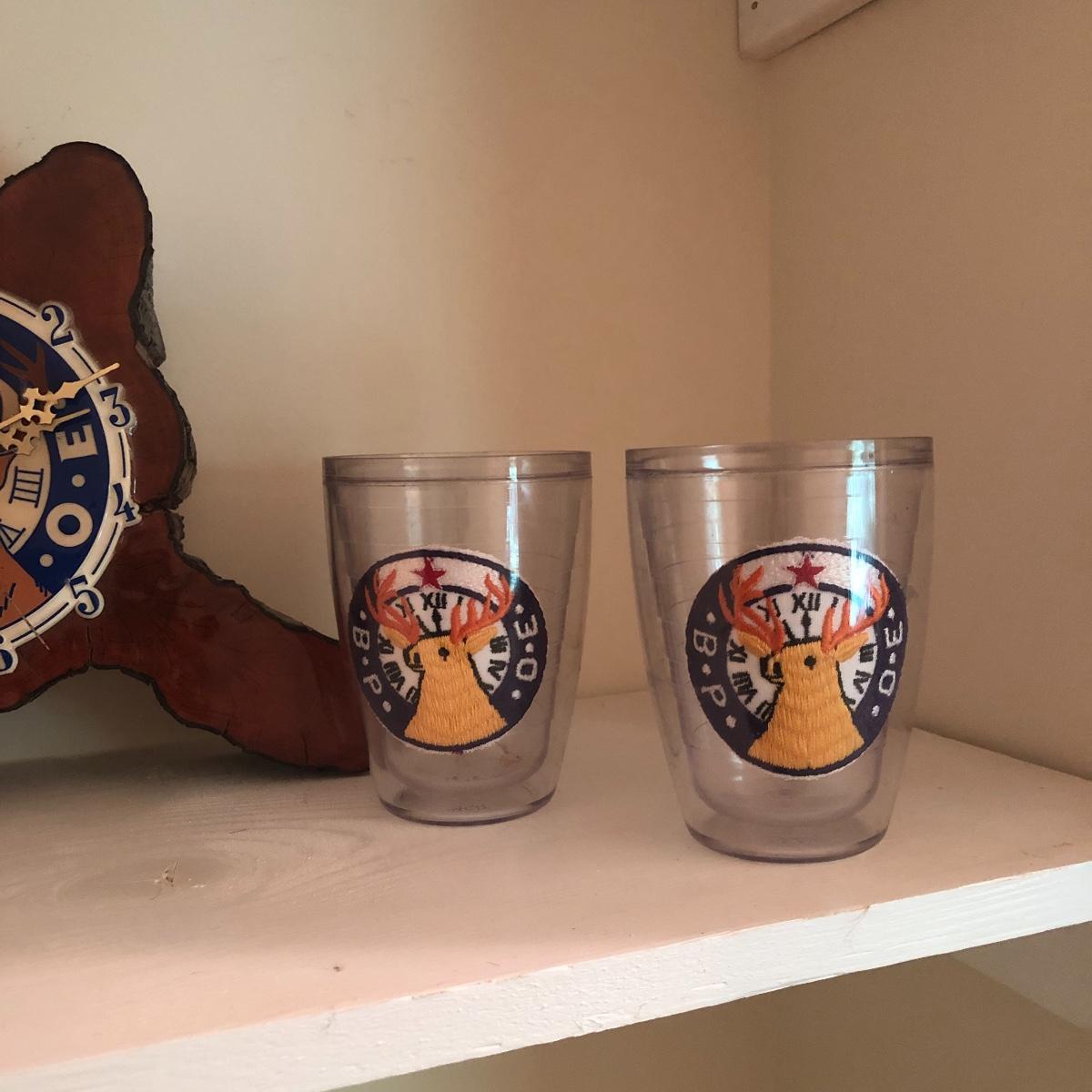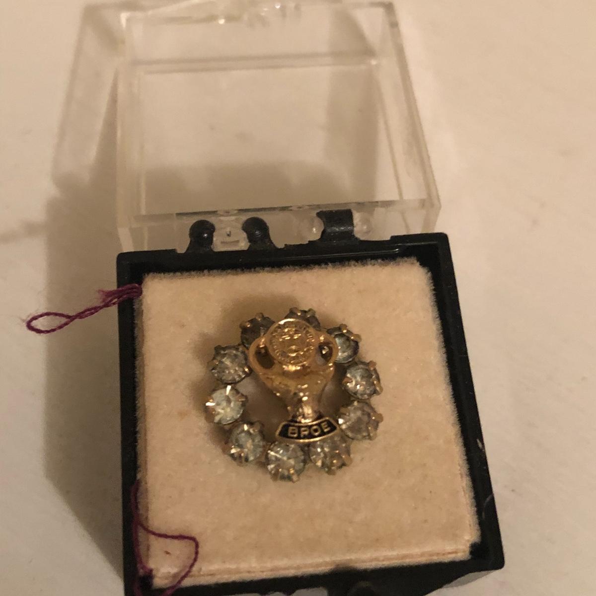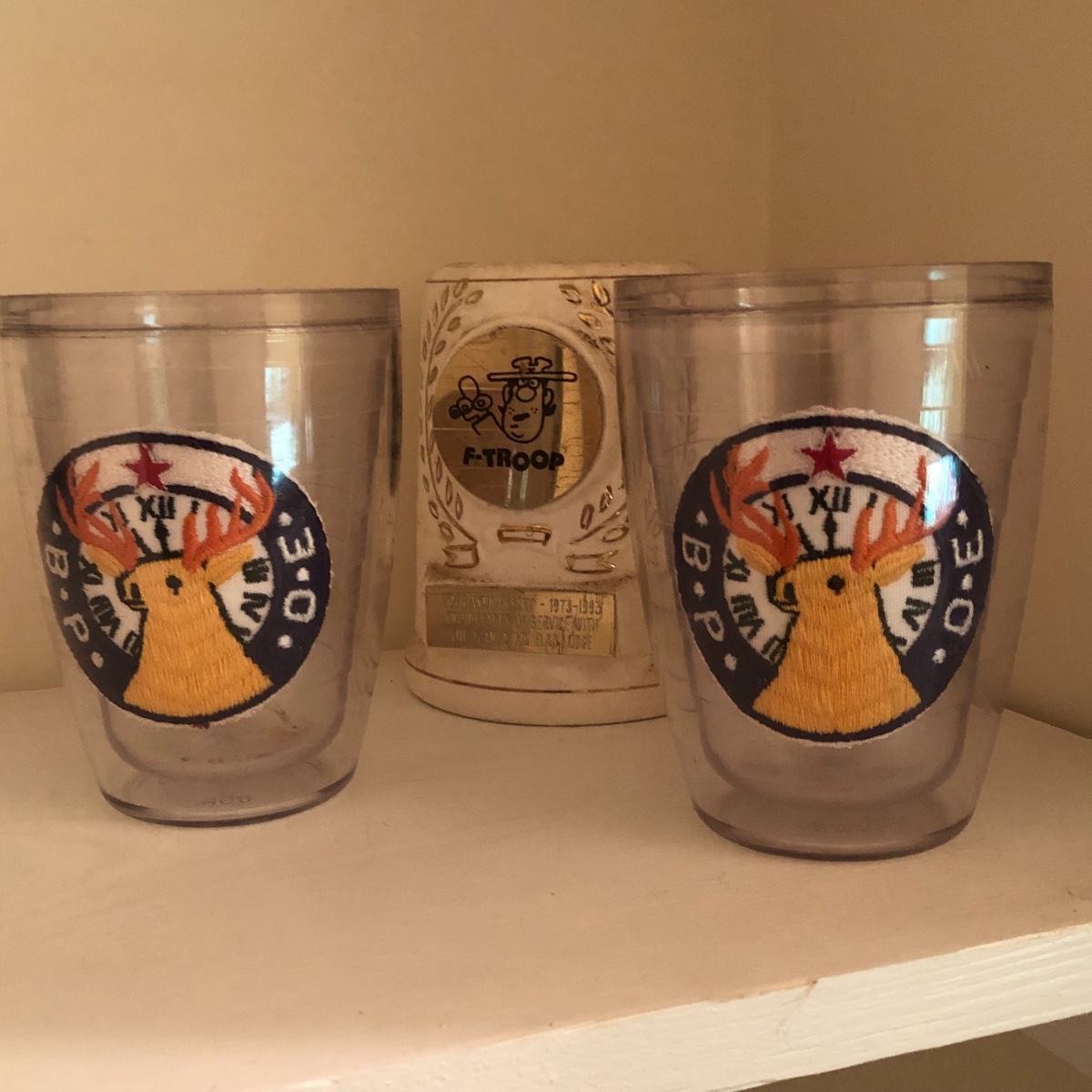 If you are involved with the Elks, this lot is for you! There is a wooden wall clock (needs new battery so was not tested), a large round patch, eight shirts (XL mostly), three glasses, loads of pins, belt buckles, a watch and two vests COVERED in pins! Shipping Available.