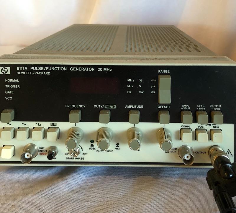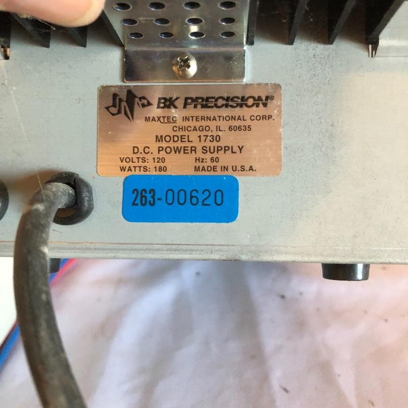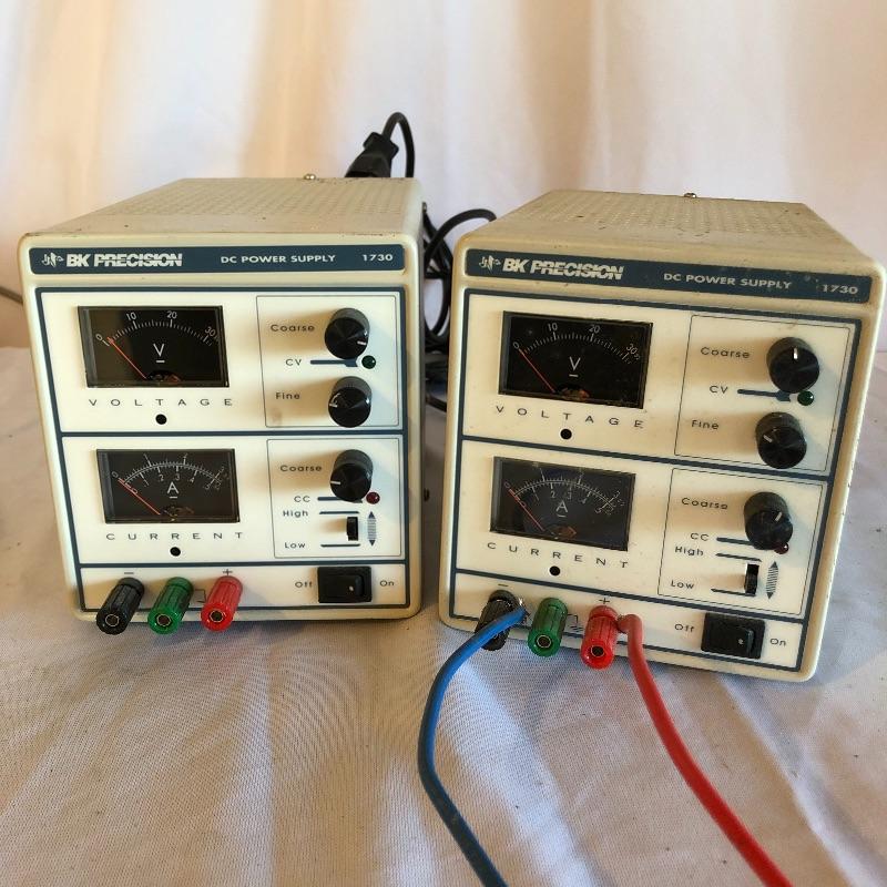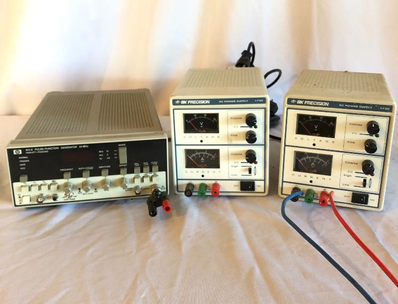 Lot includes two BK Precision model # 1730 DC power supplies and a Hewlett-Packard model 8111A pulse/function generator that measures approximately 8.25” x 14.5” x 3.5”. All three items powered on when tested.