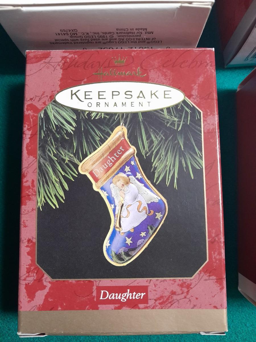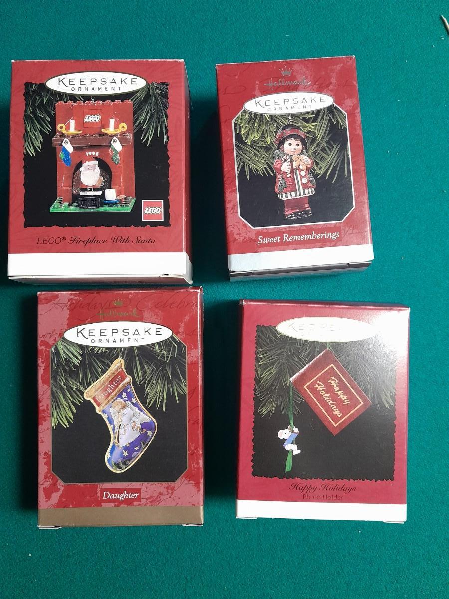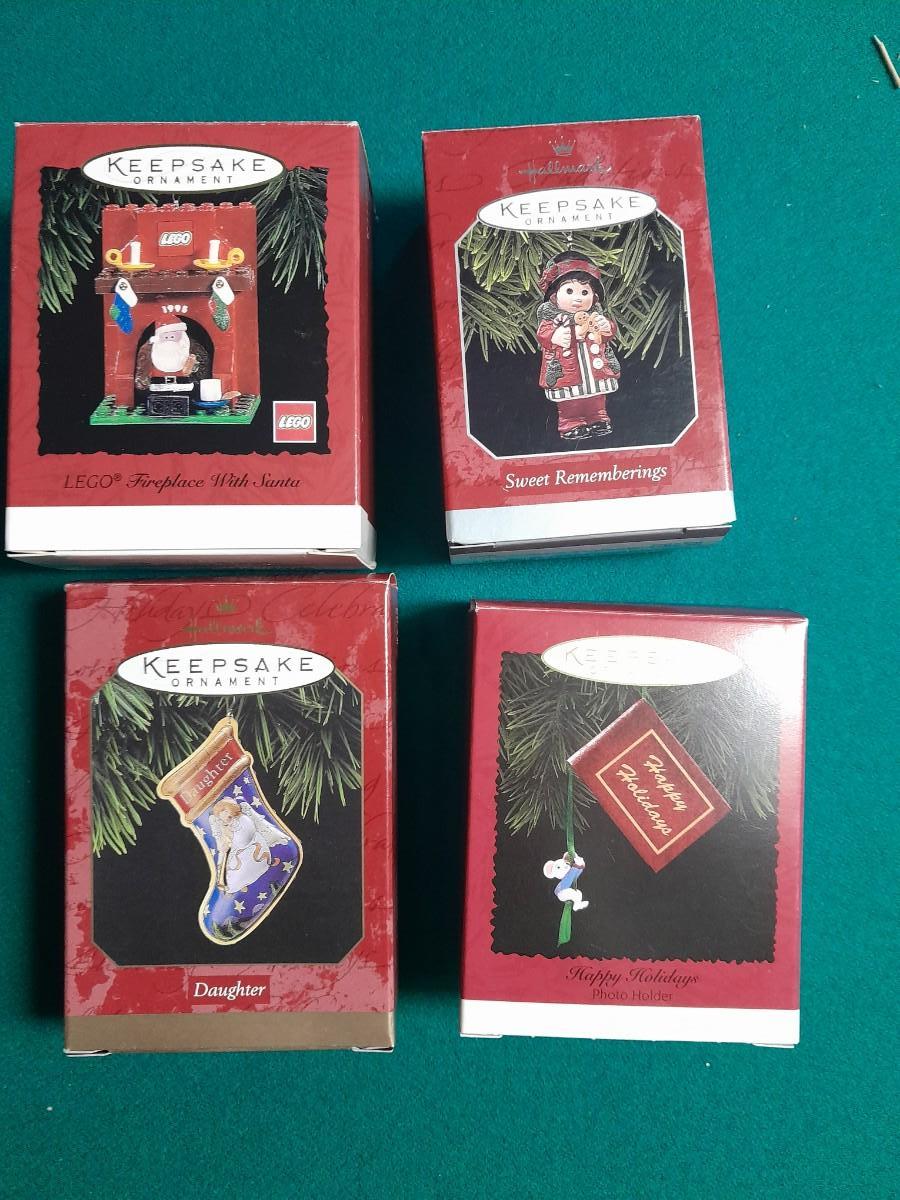 HALLMARK CHRISTMAS ORNAMENTS DAUGHTER, LEGO, REMEBERINGS, AND PHOTO HOLDER