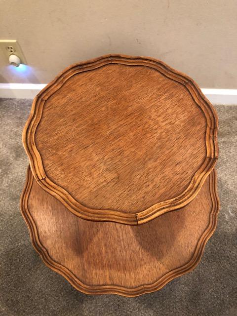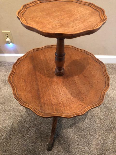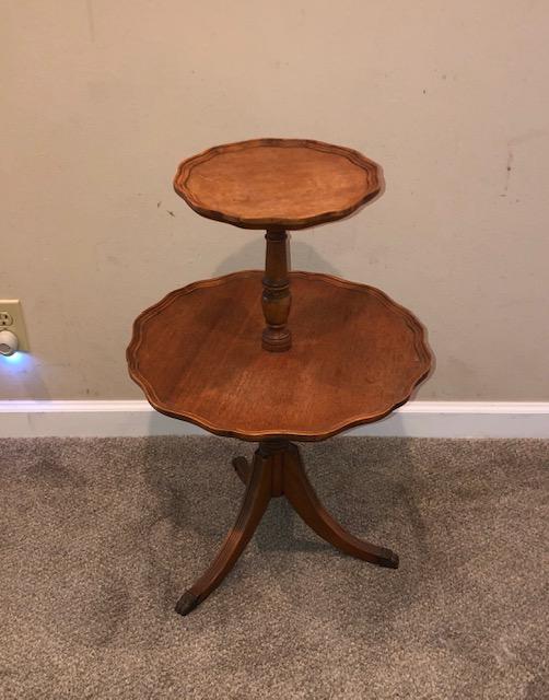 2 Tier Mahogany / Walnut Tea Table with pie crust edge.