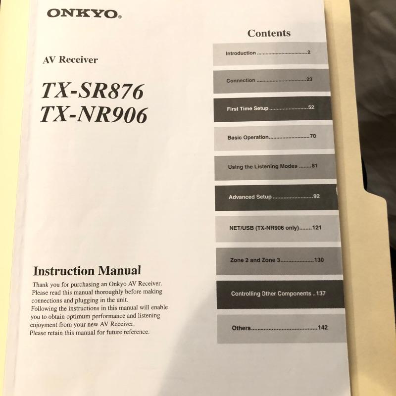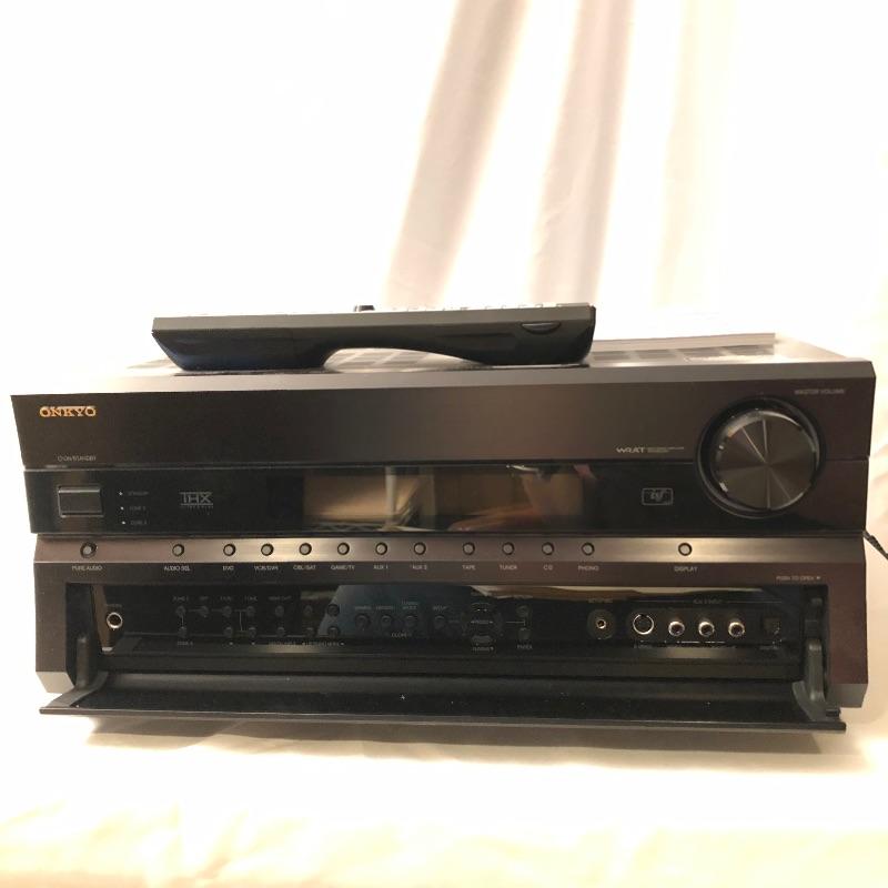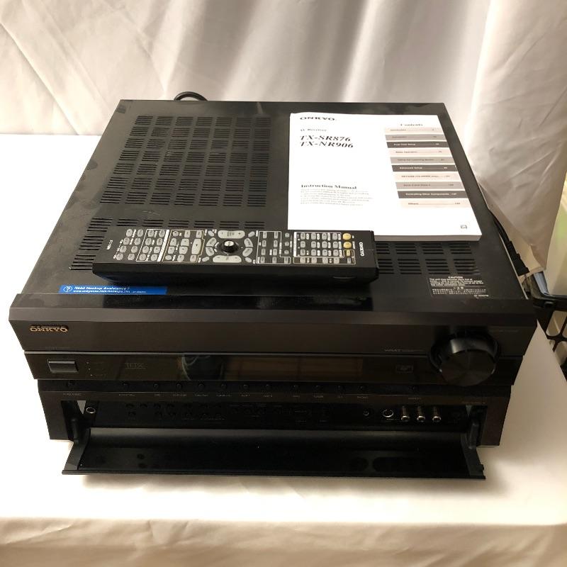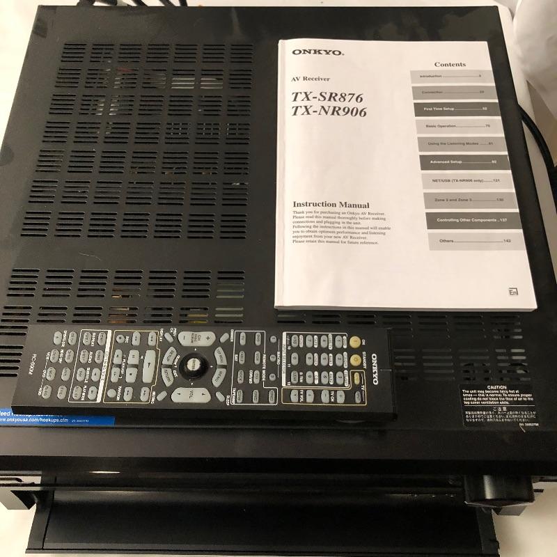 Onkyo AV Receiver TX-SR876 is an A/V processing “hub” receiver for home theater that powers on when tested. Comes with manual and remote control.