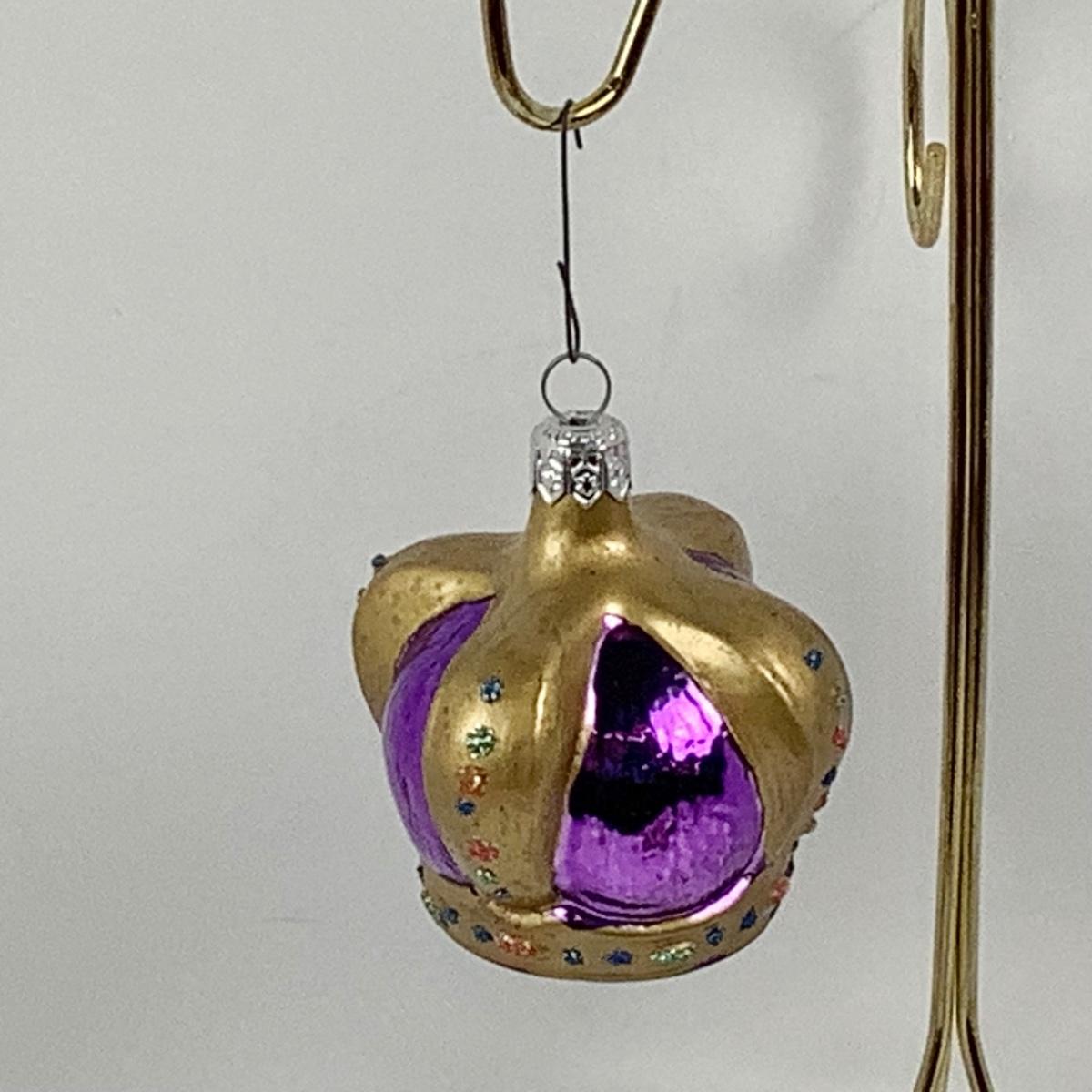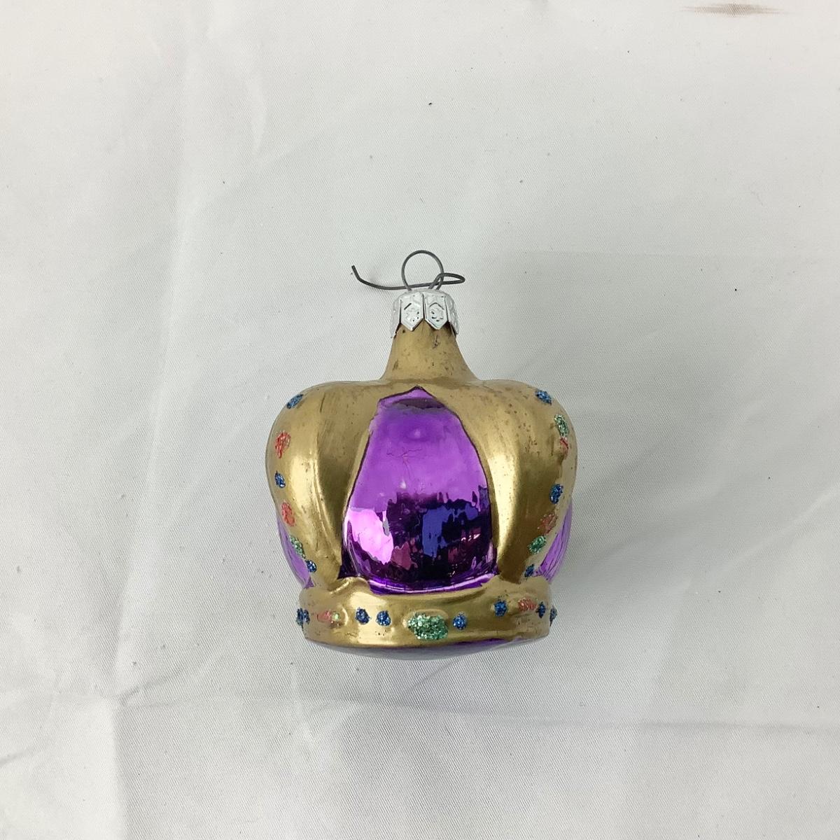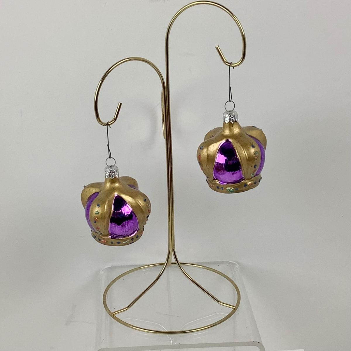 Pair of Vintage Blown Glass Purple Crown Ornaments