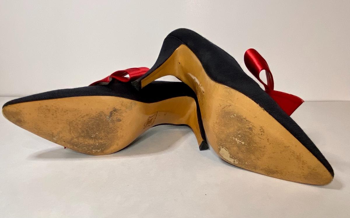 Stunning Black with Red Ribbons. Size 8, Like new. Please see all pictures as they are the best representation of the items. The pictures show condition, measurements if taken, and what is included in the lot. Due to the large amount that we photograph and the time frame, we are not always able to take measurements. All items unless noted, are pre-owned and have been used. If you purchased furniture, you must bring help. We do not allow one person to carry large furniture out on their own. Bring help, tools and a truck for the safety of our client’s homes, and your personal safety. Company policy. Thank you