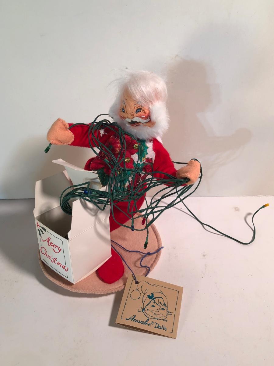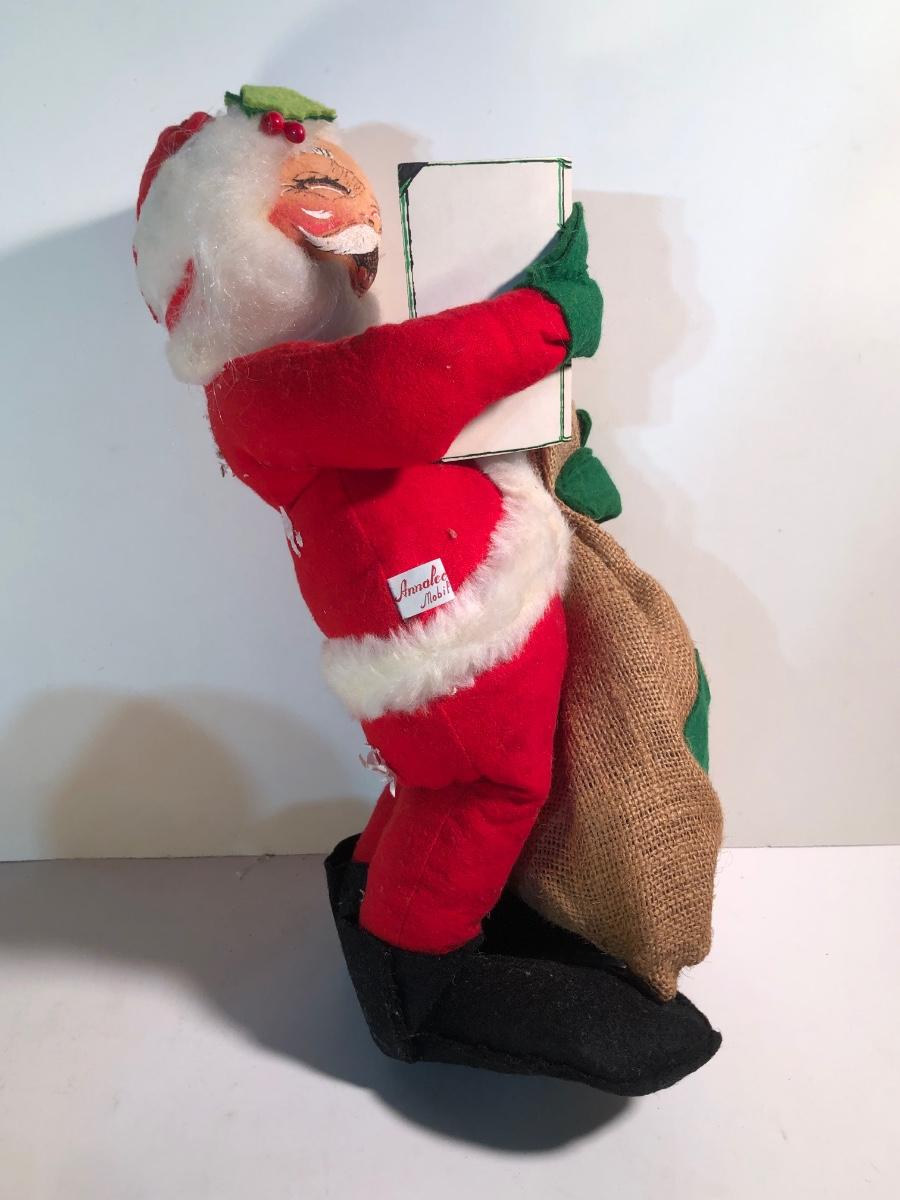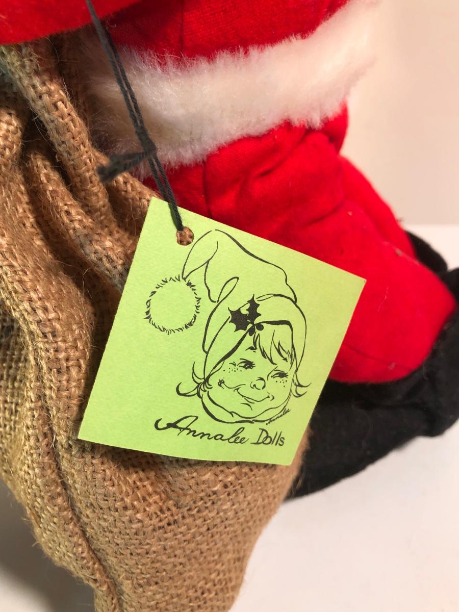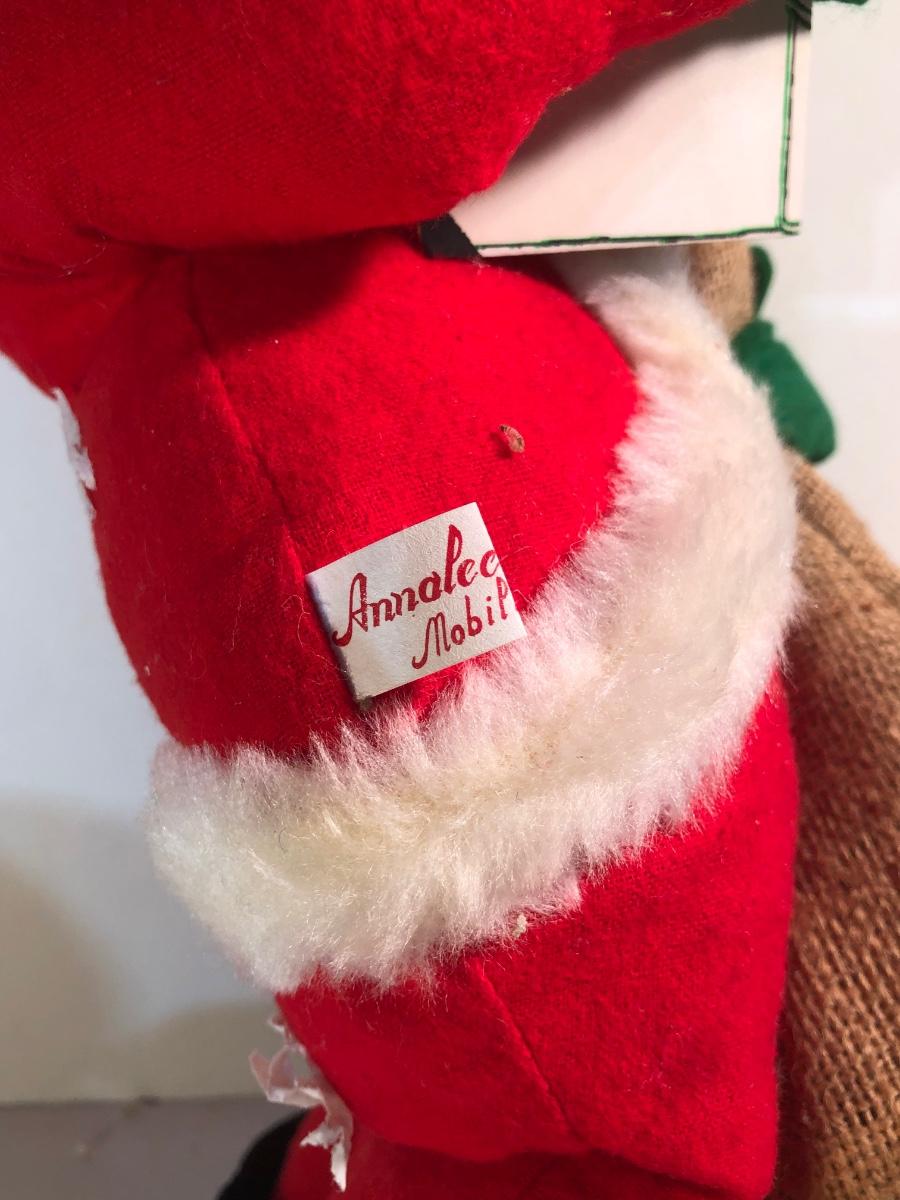 LOT 279B: Vintage Annalee Christmas Dolls - 1964 Santa w/ List & Toy Sack, Child on Sled, Reindeer, Snowman w/ Pipe, 1994 Santa w/ Lights