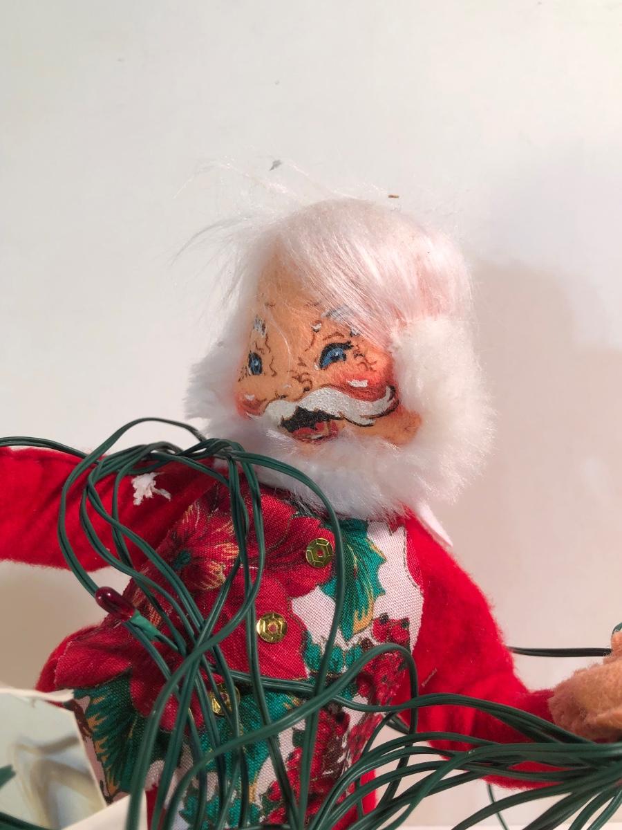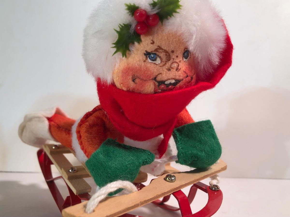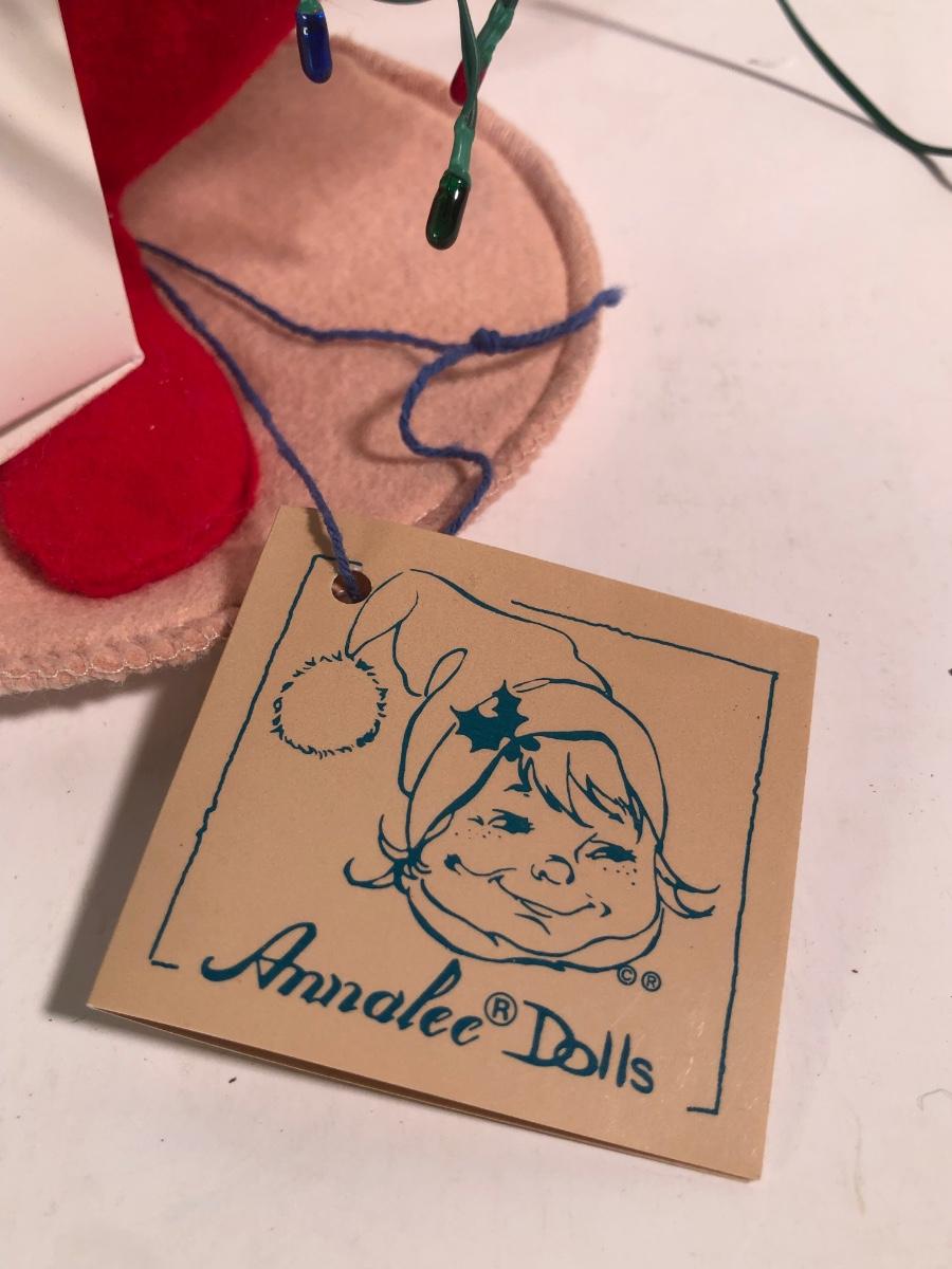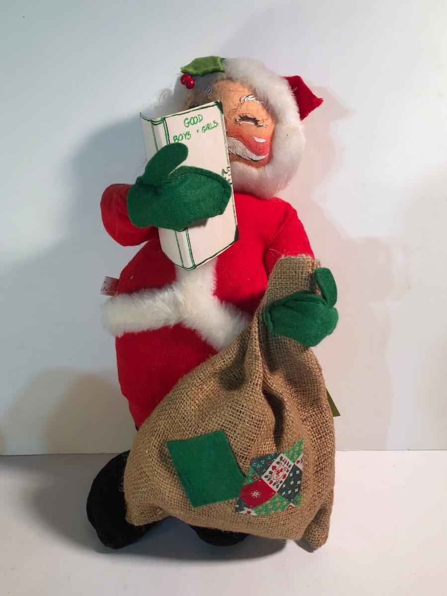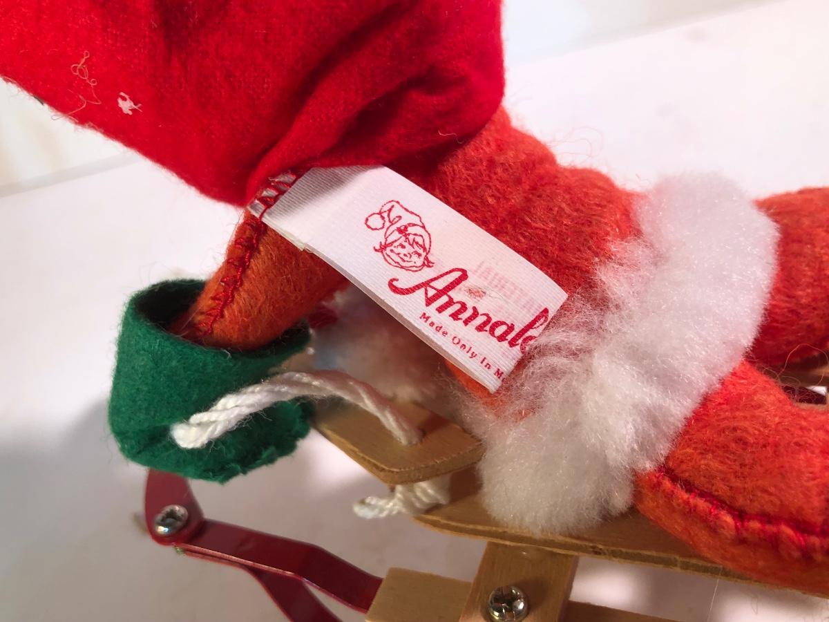 LOT 279B: Vintage Annalee Christmas Dolls - 1964 Santa w/ List & Toy Sack, Child on Sled, Reindeer, Snowman w/ Pipe, 1994 Santa w/ Lights
