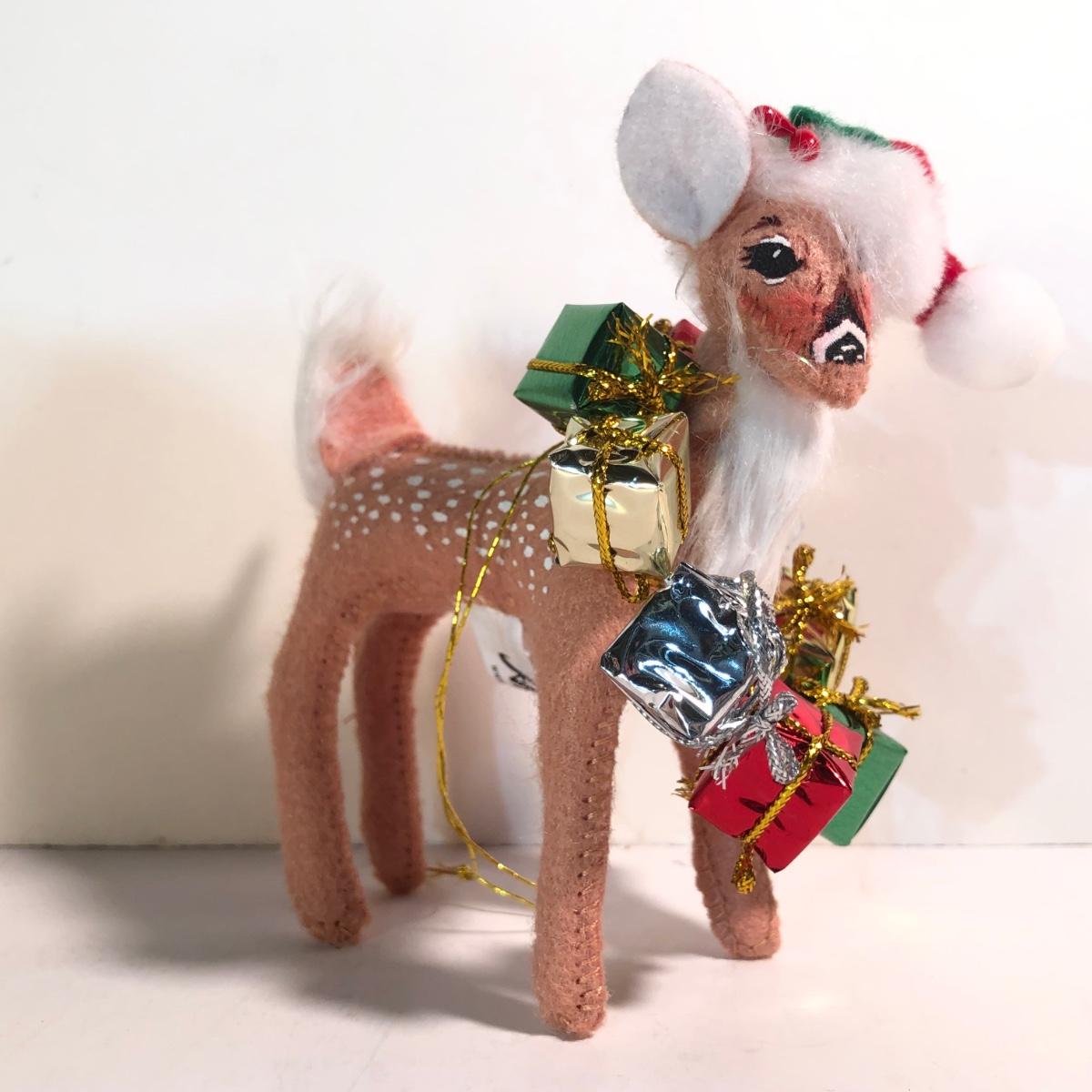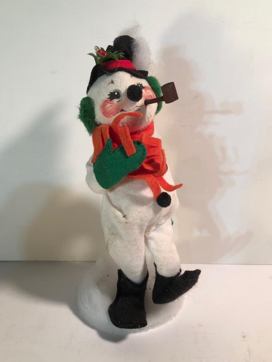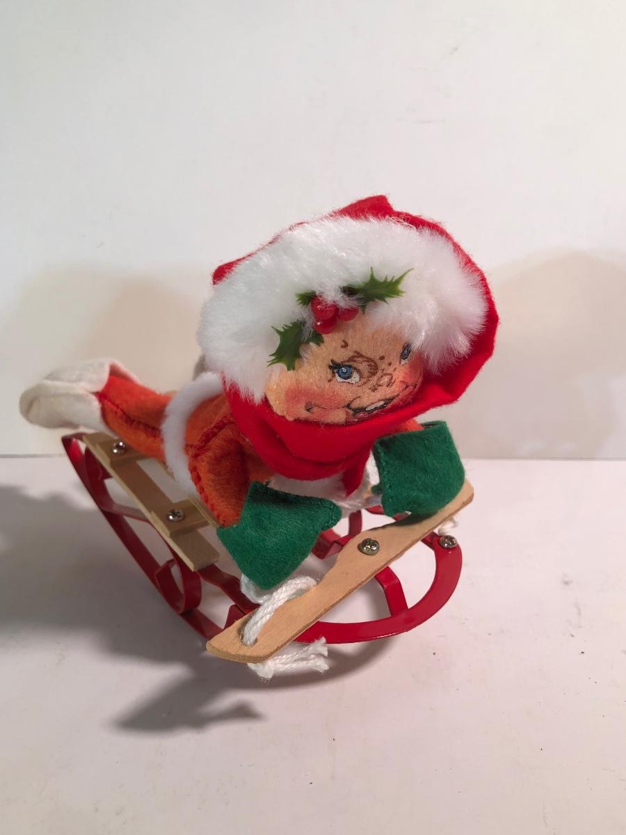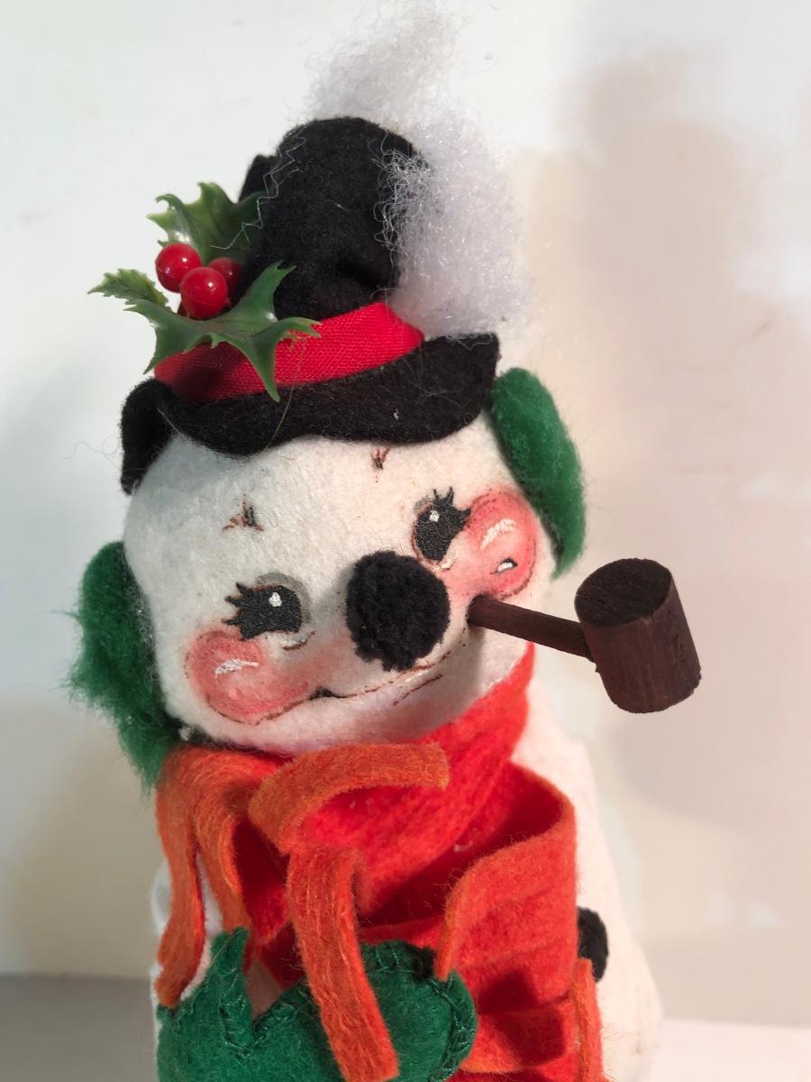 LOT 279B: Vintage Annalee Christmas Dolls - 1964 Santa w/ List & Toy Sack, Child on Sled, Reindeer, Snowman w/ Pipe, 1994 Santa w/ Lights