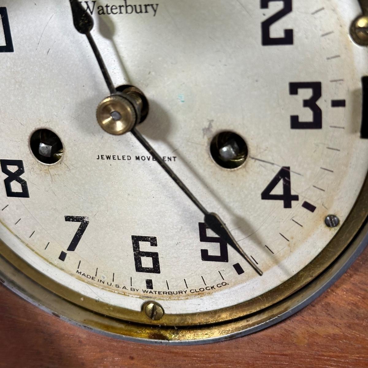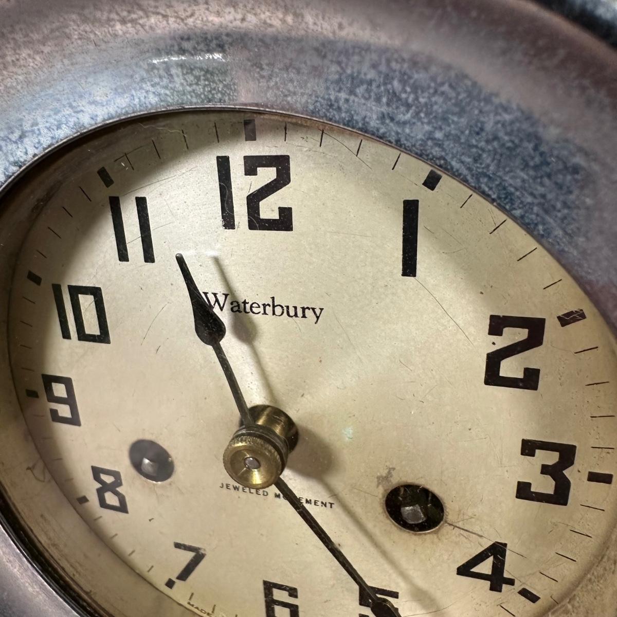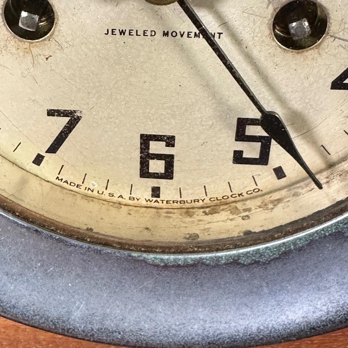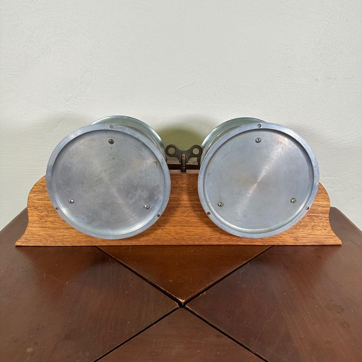 LOT 27B: Antique Waterbury Ship's Bell Clock & Barometer Wind Up with key!