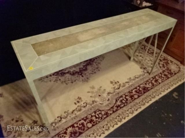 CLAD TOP AND SIDES WITH SHARKSKIN ACCENT PANEL, VERY GOOD VINTAGE CONDITION WITH SOME CHIPS TO STONE AT BOTTOM OF LEGS, 54" X 14" X 29", SKU287.19