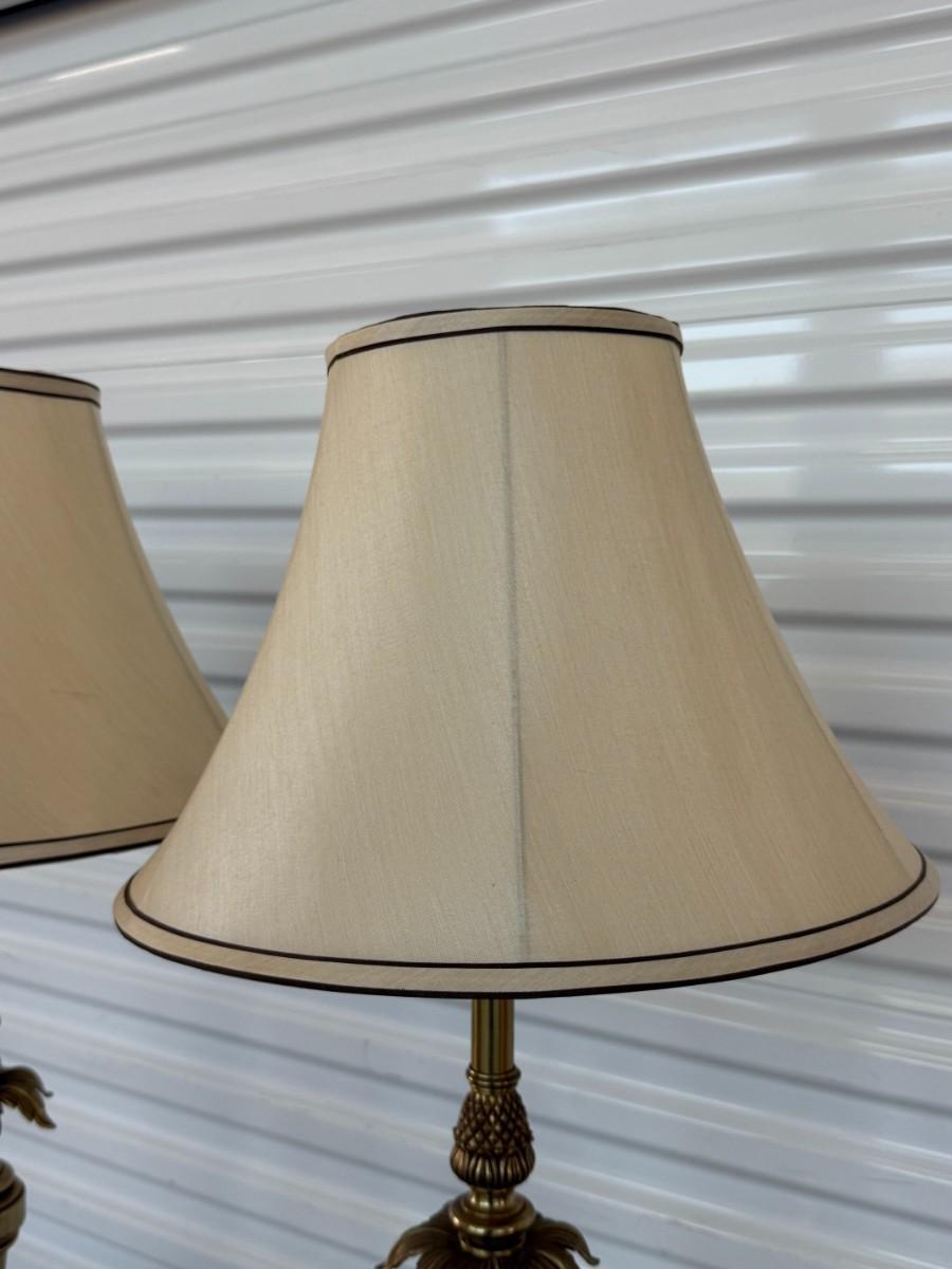 Perfect for traditional, Hollywood Regency, or mid-century-inspired interiors, these lamps serve as both functional lighting and statement décor pieces. Their warm gold tones and refined detailing make them ideal for living rooms, bedrooms, or office spaces that call for a touch of vintage elegance.