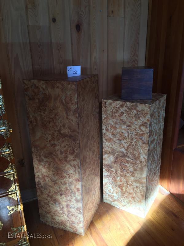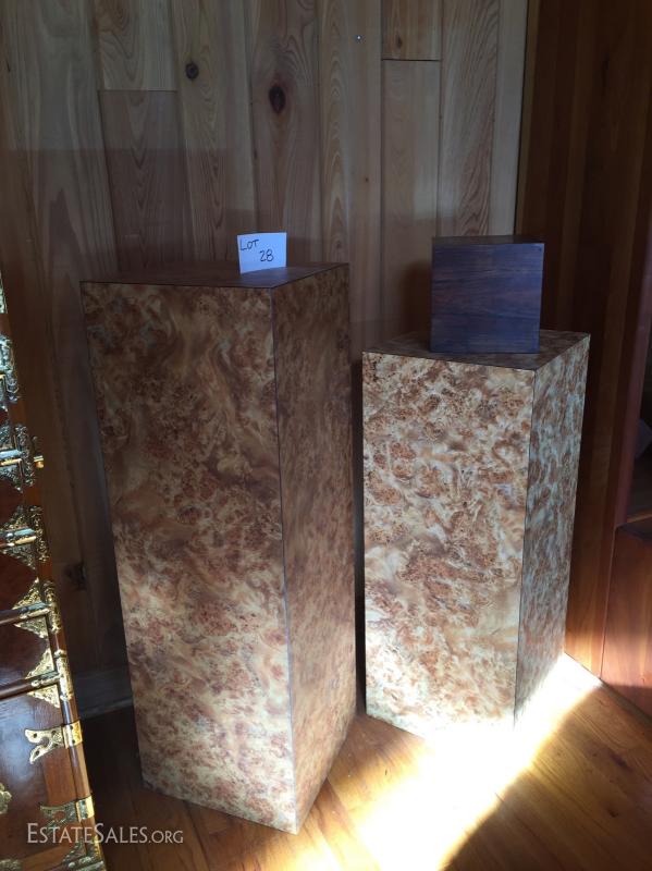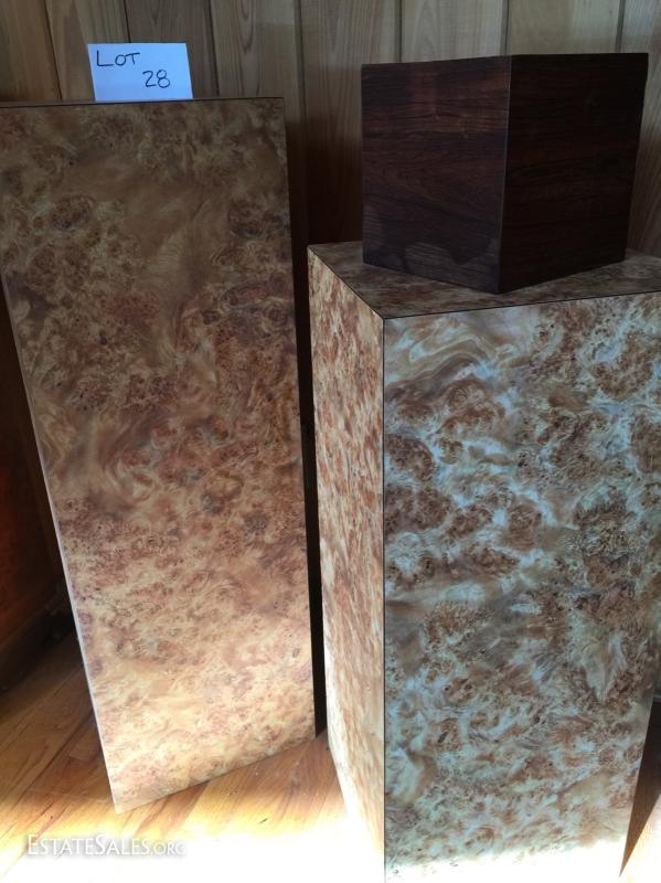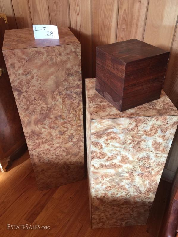 3 block display stands. Small wood stand and 2 tall laminate stands. Great for art or plants.