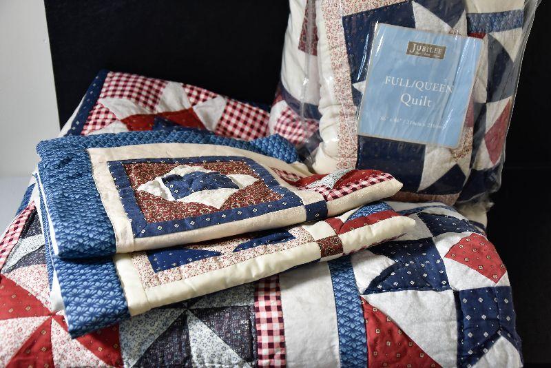 Two Full/queen size quilt with shams. Seems to be unused.