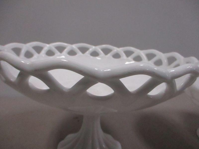 Lot 28 - White Milk Glass Candy Pedestal Bowls