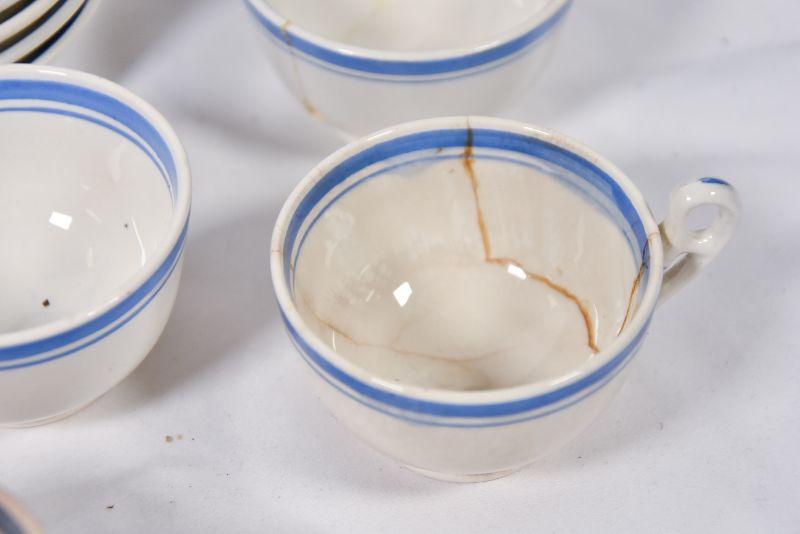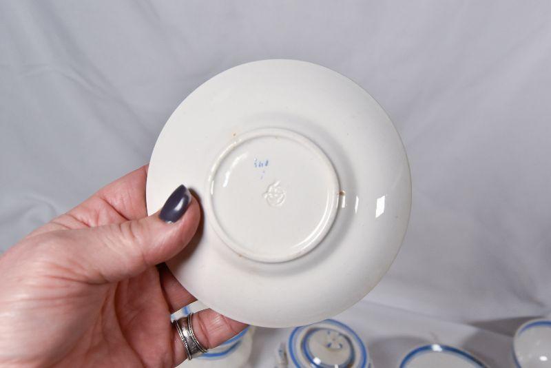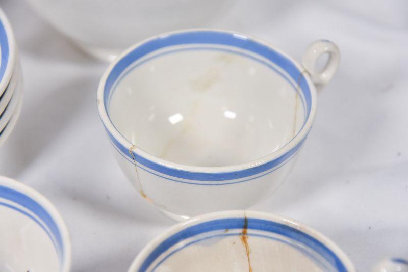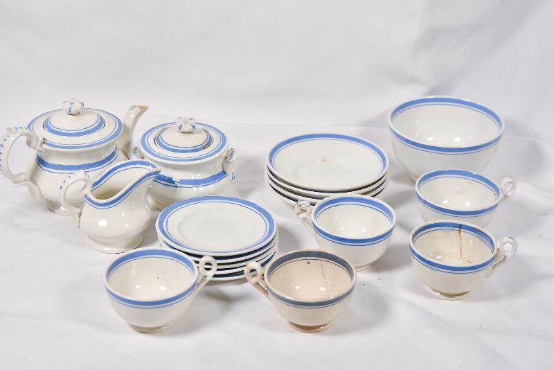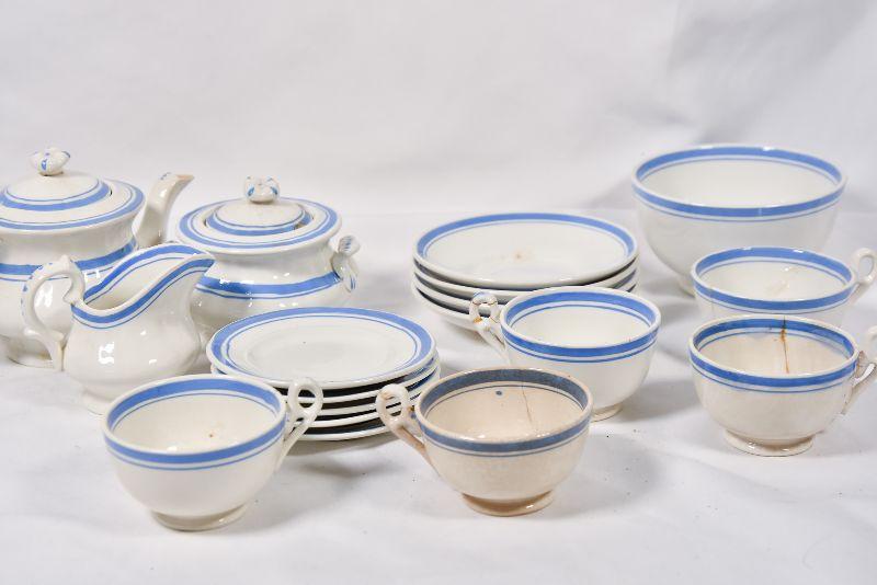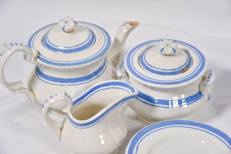 Lot 28: Vintage Blue Stripe Stoneware Tea Set