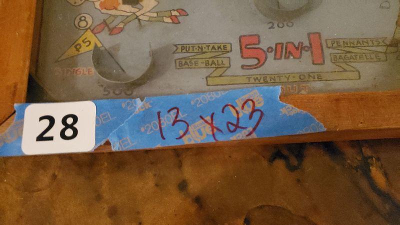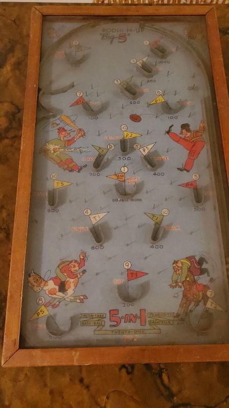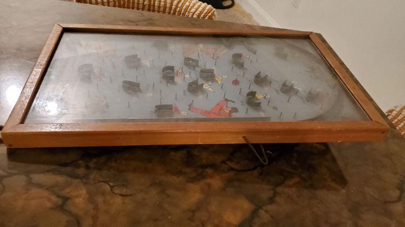 Lot 28:  Vintage Poosh-m-up tabletop pinball machine in working condition.