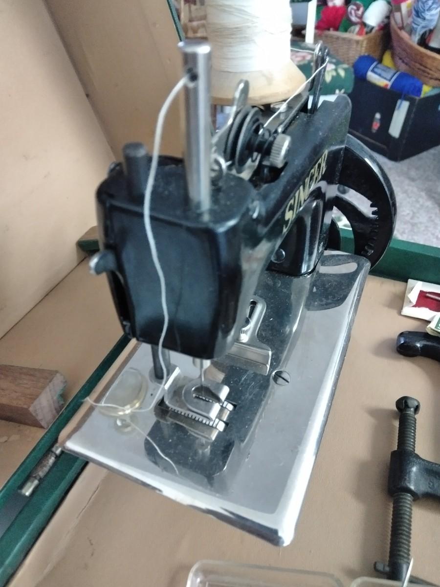 CHILD SIZE SINGER SEWING MACHINE WITH CASE, AND ACCESSORIES.