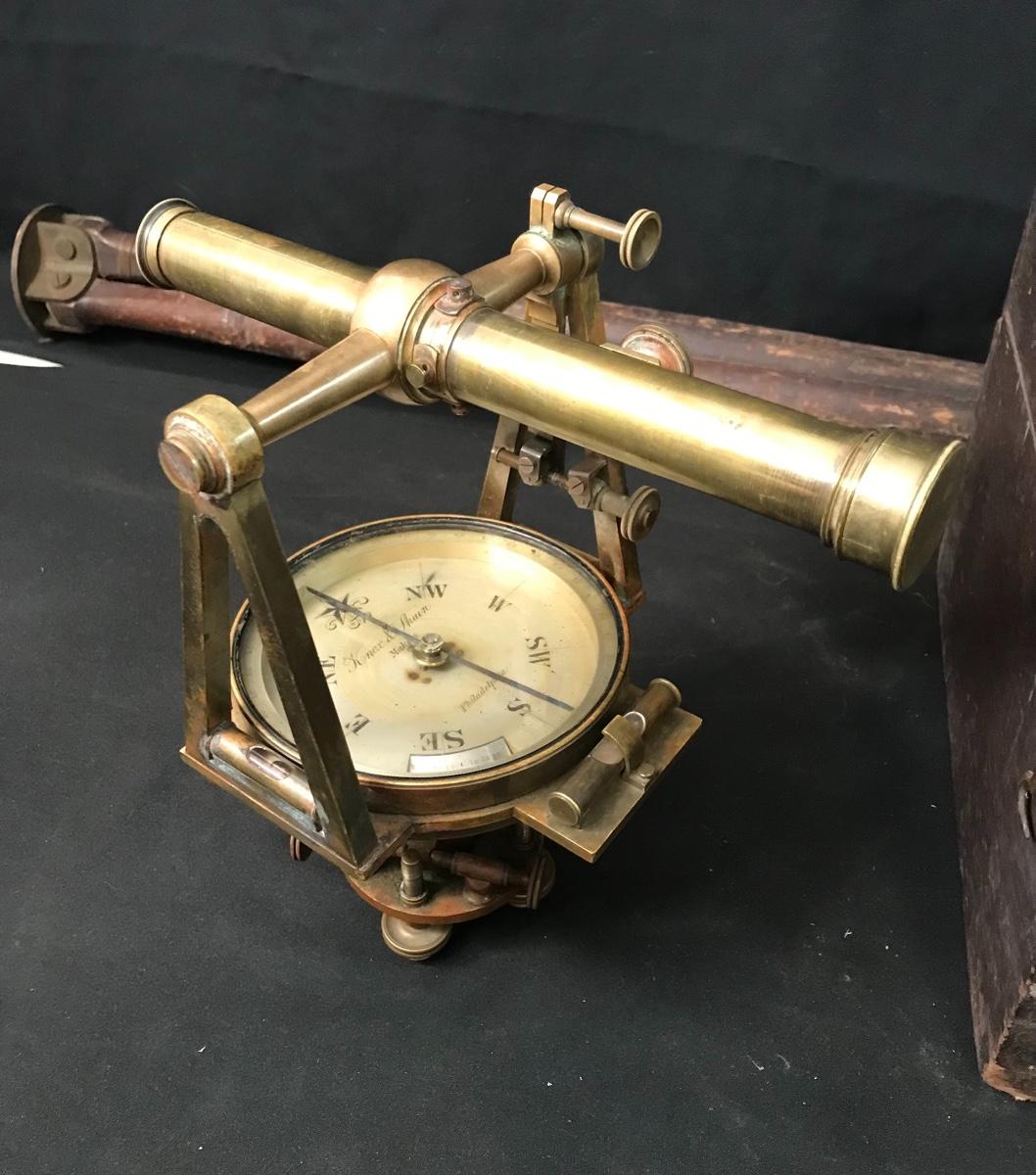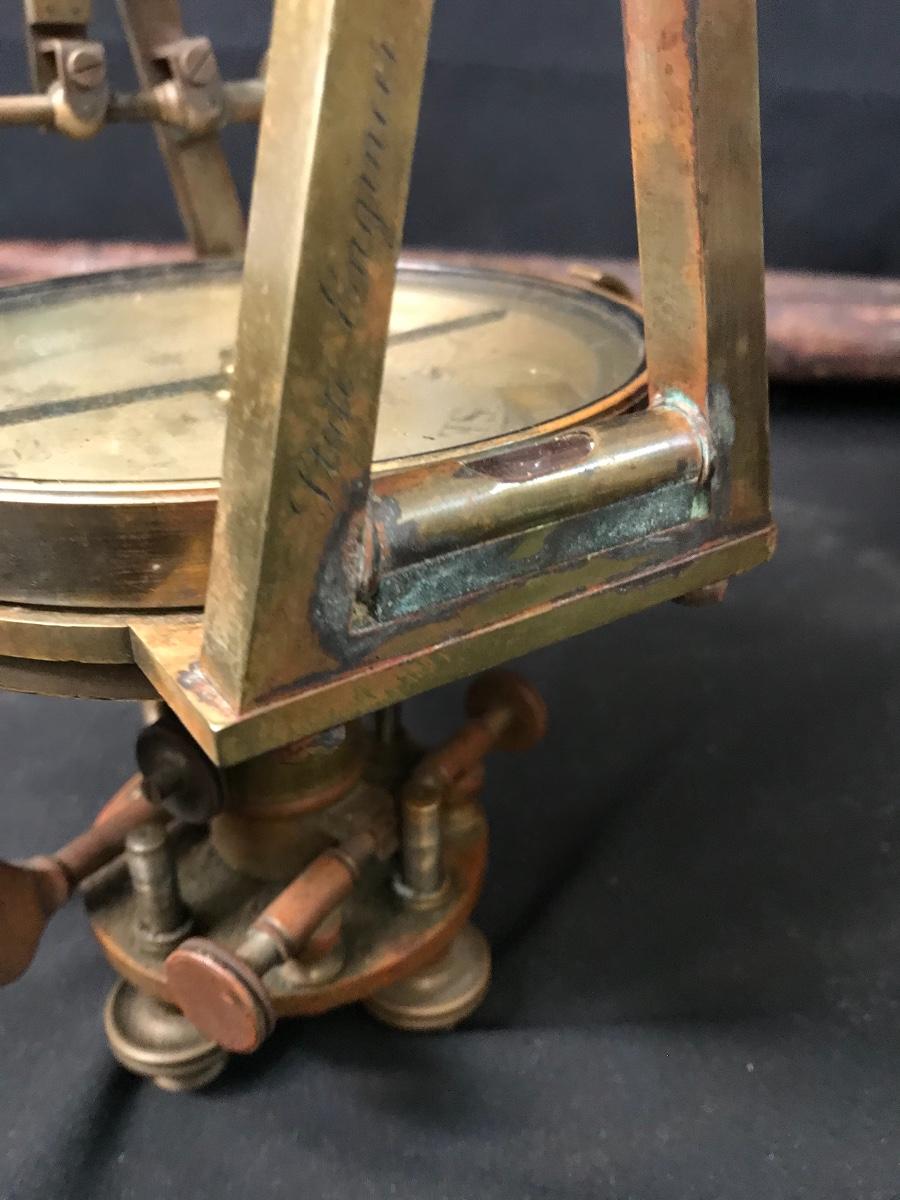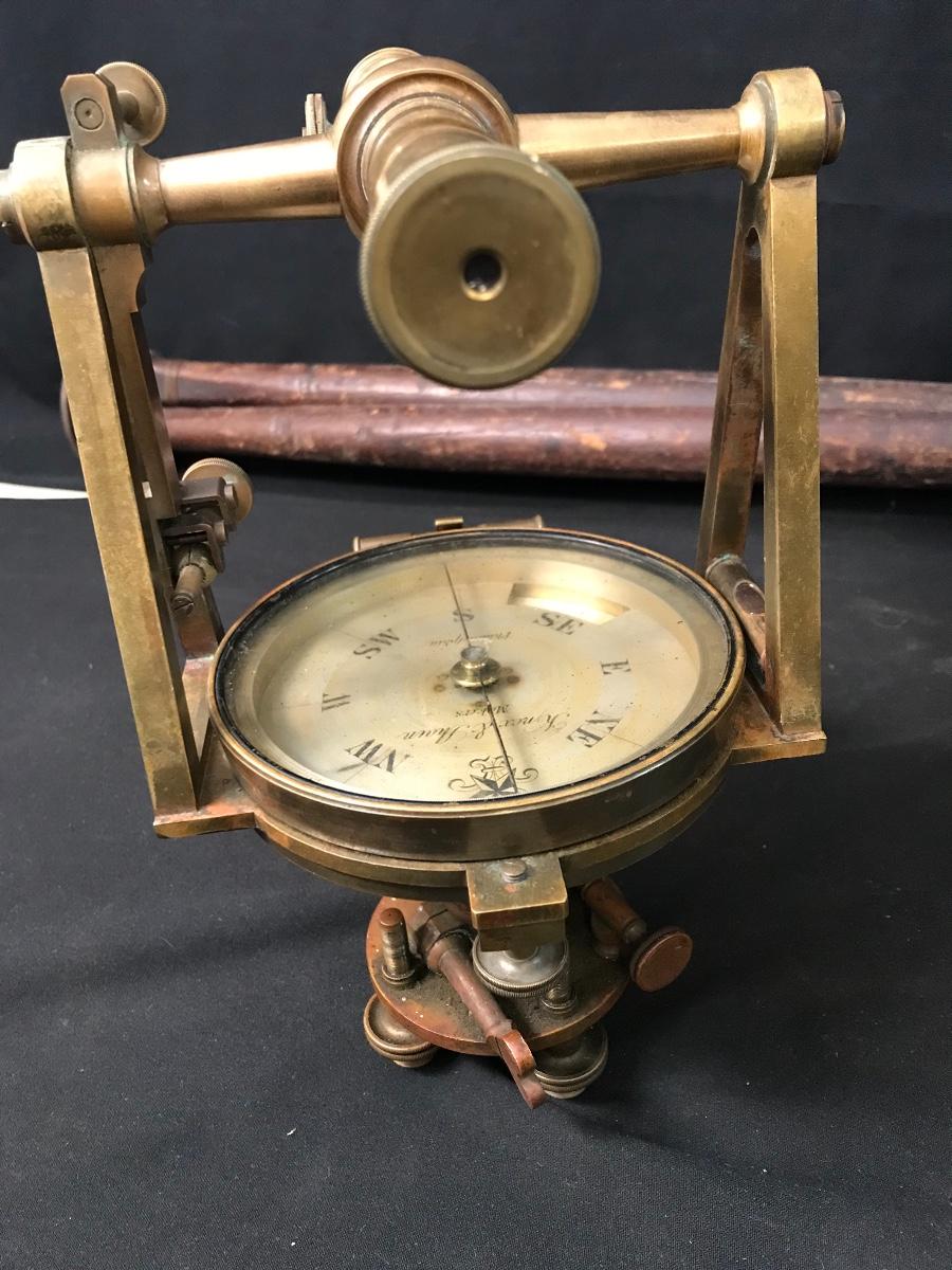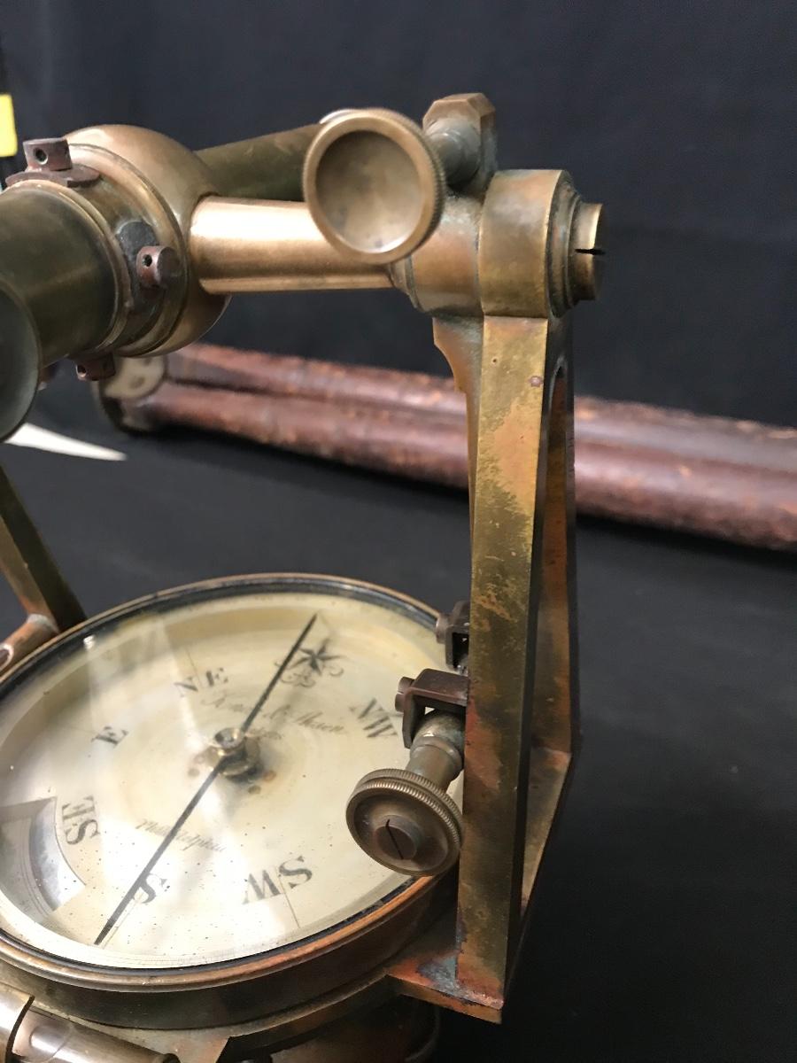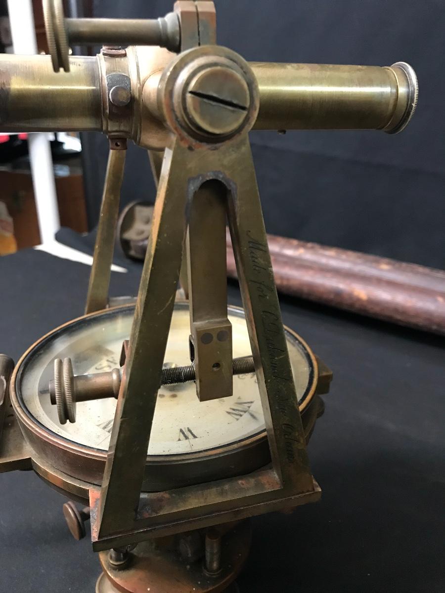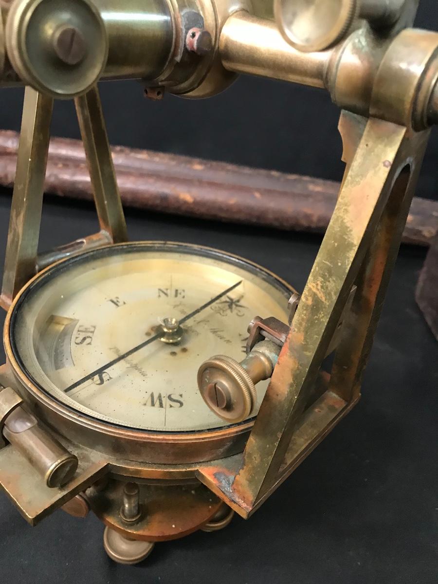 Lot 28: Antique Brass Survey Transit By Knox & Shain, Philadelphia For C. Duhamel, New Orleans