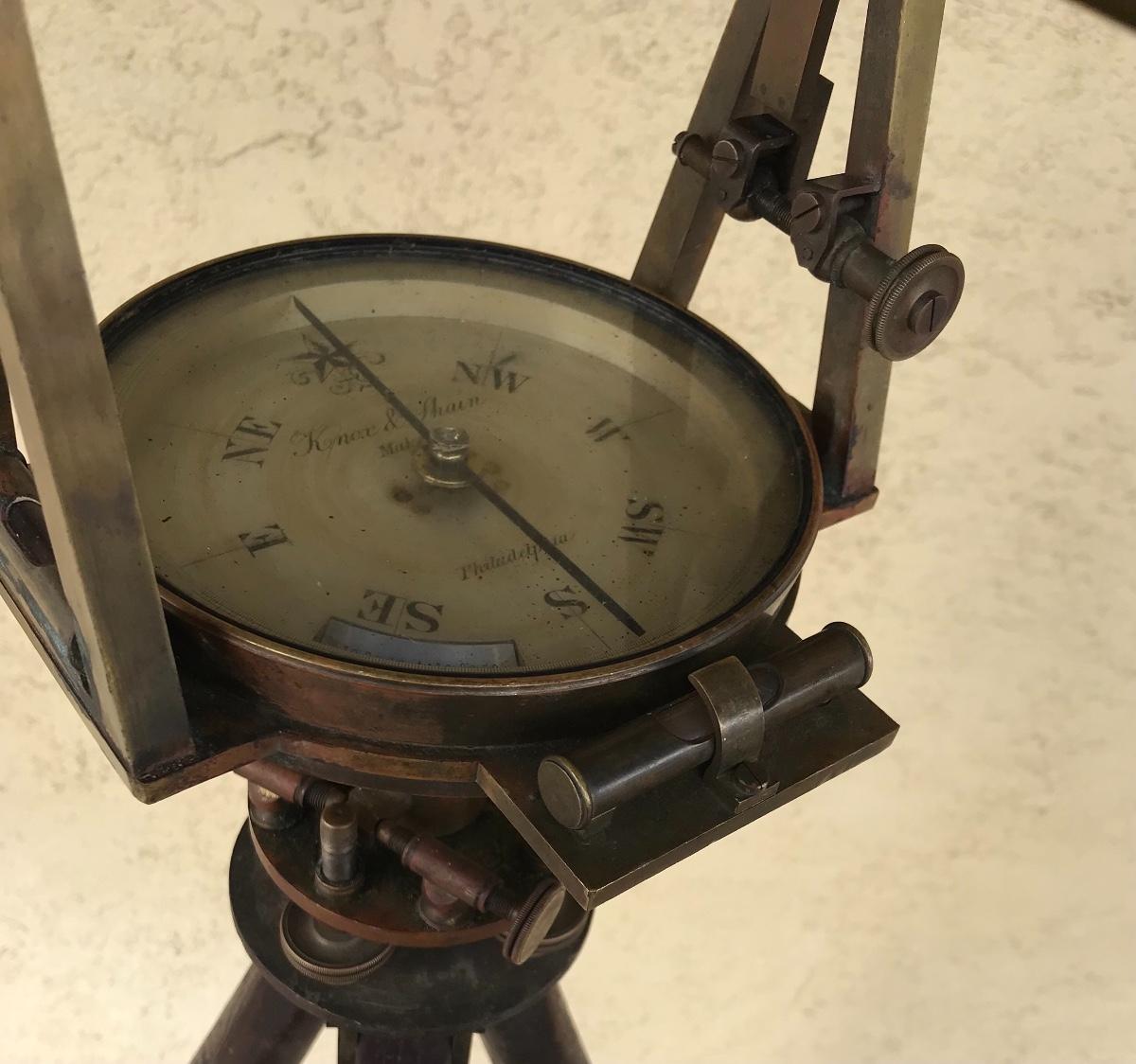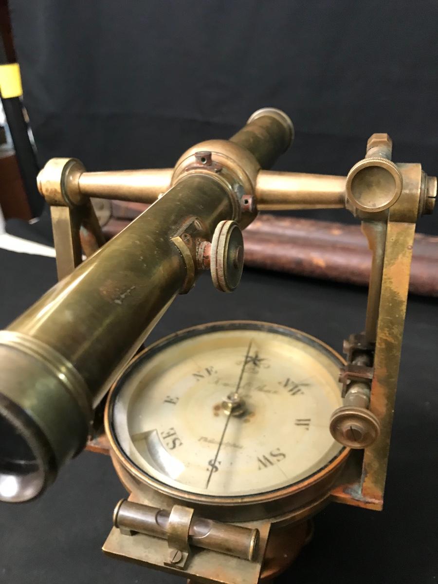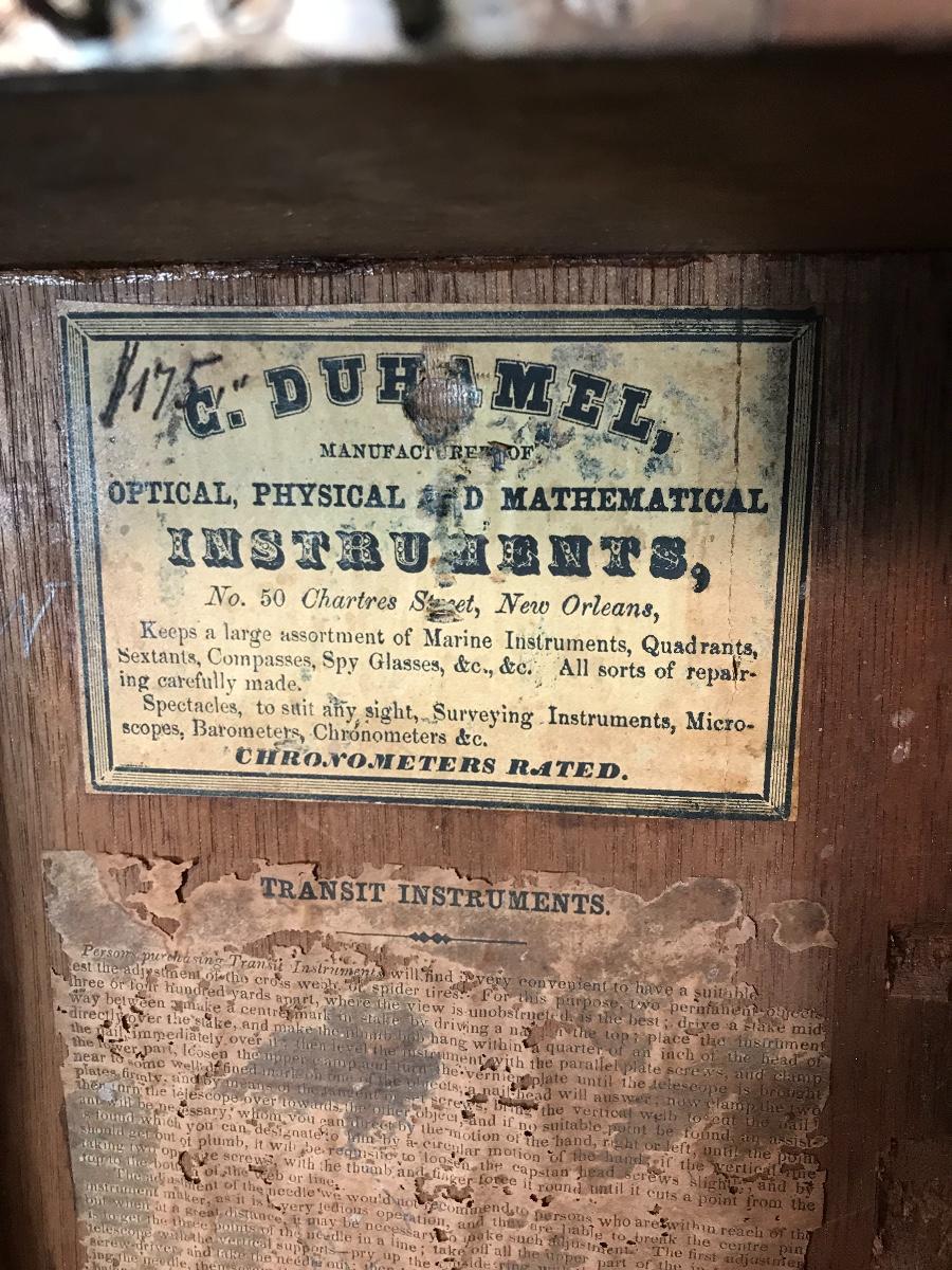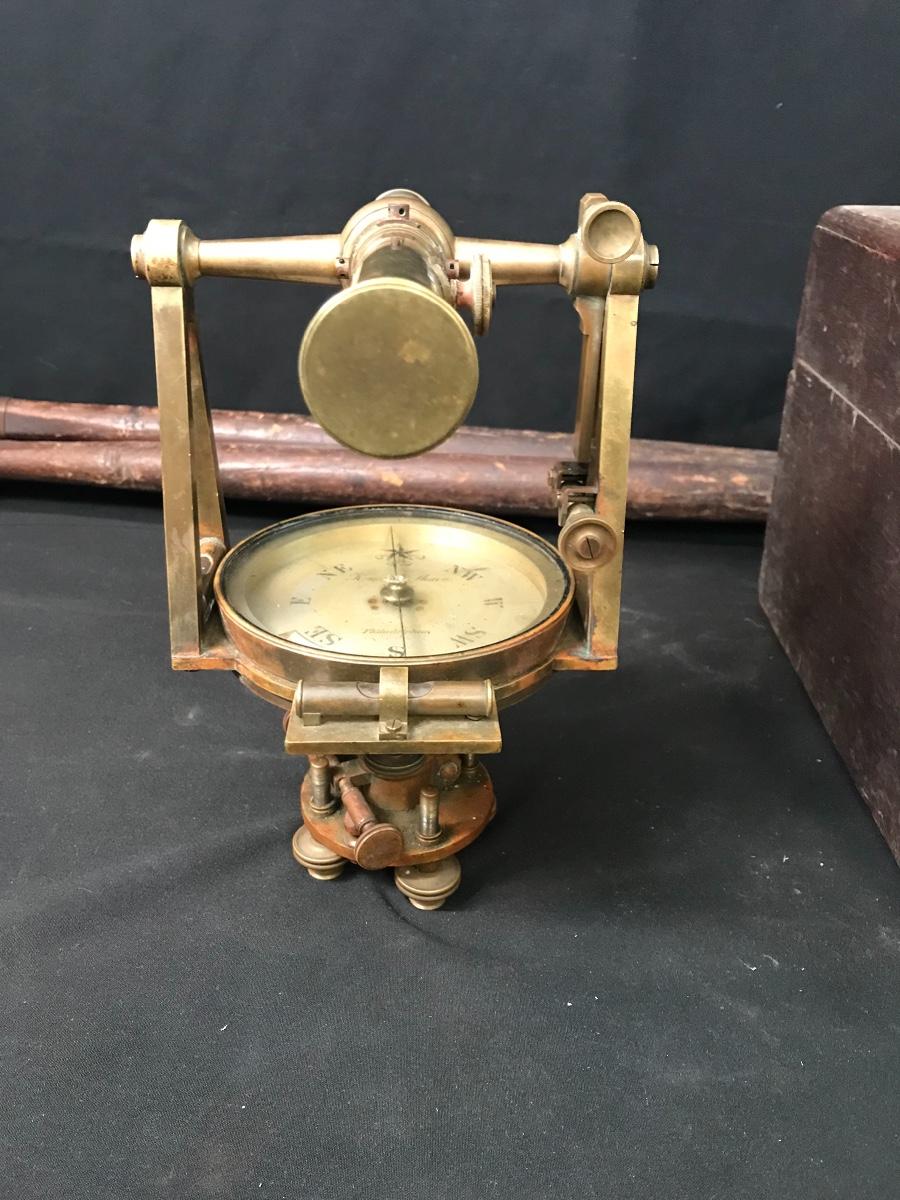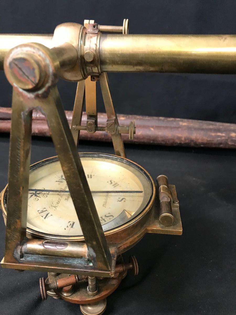 Lot 28: Antique Brass Survey Transit By Knox & Shain, Philadelphia For C. Duhamel, New Orleans