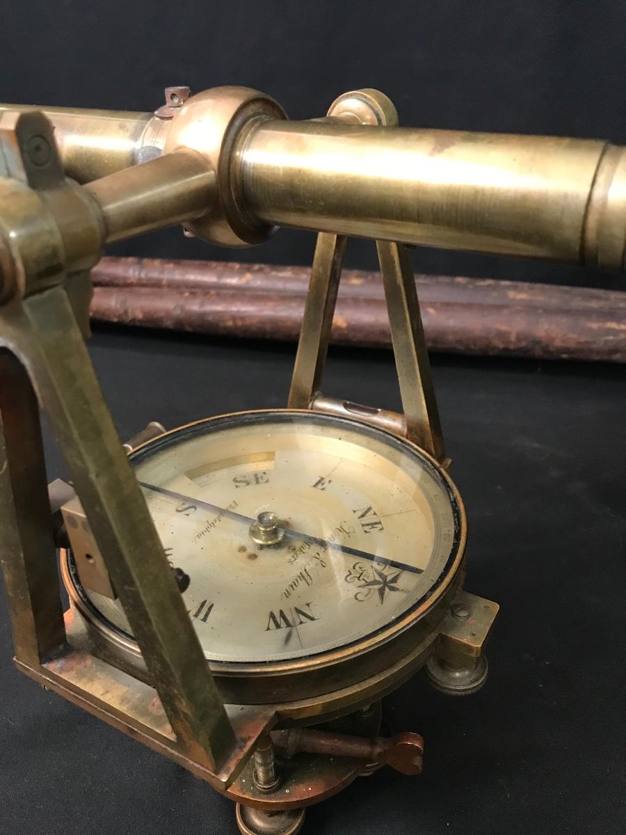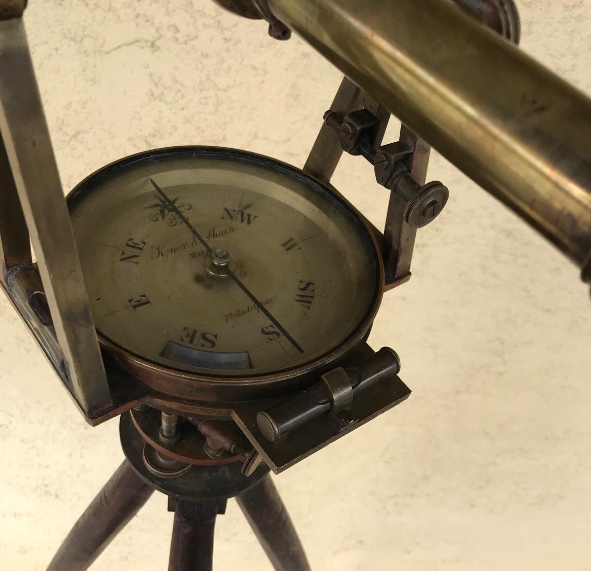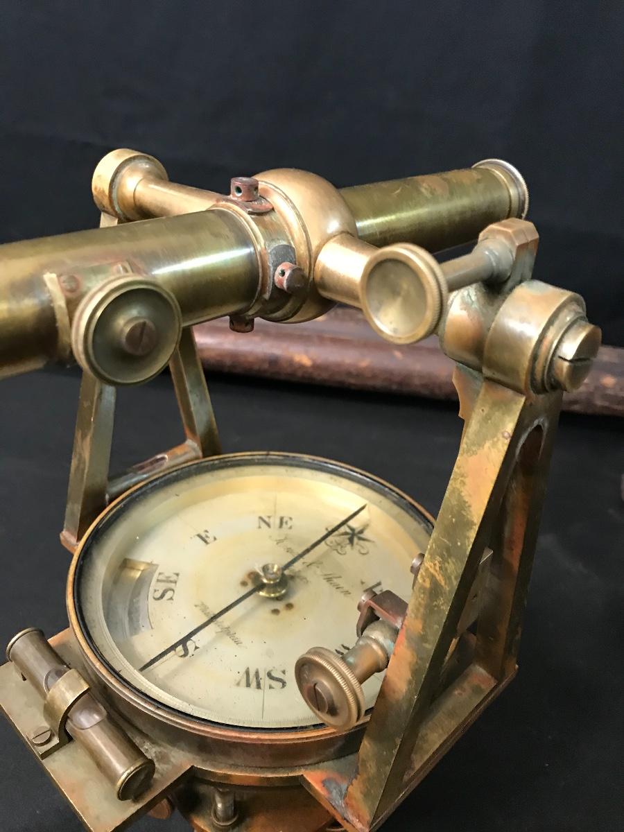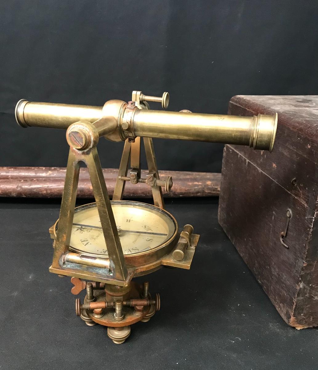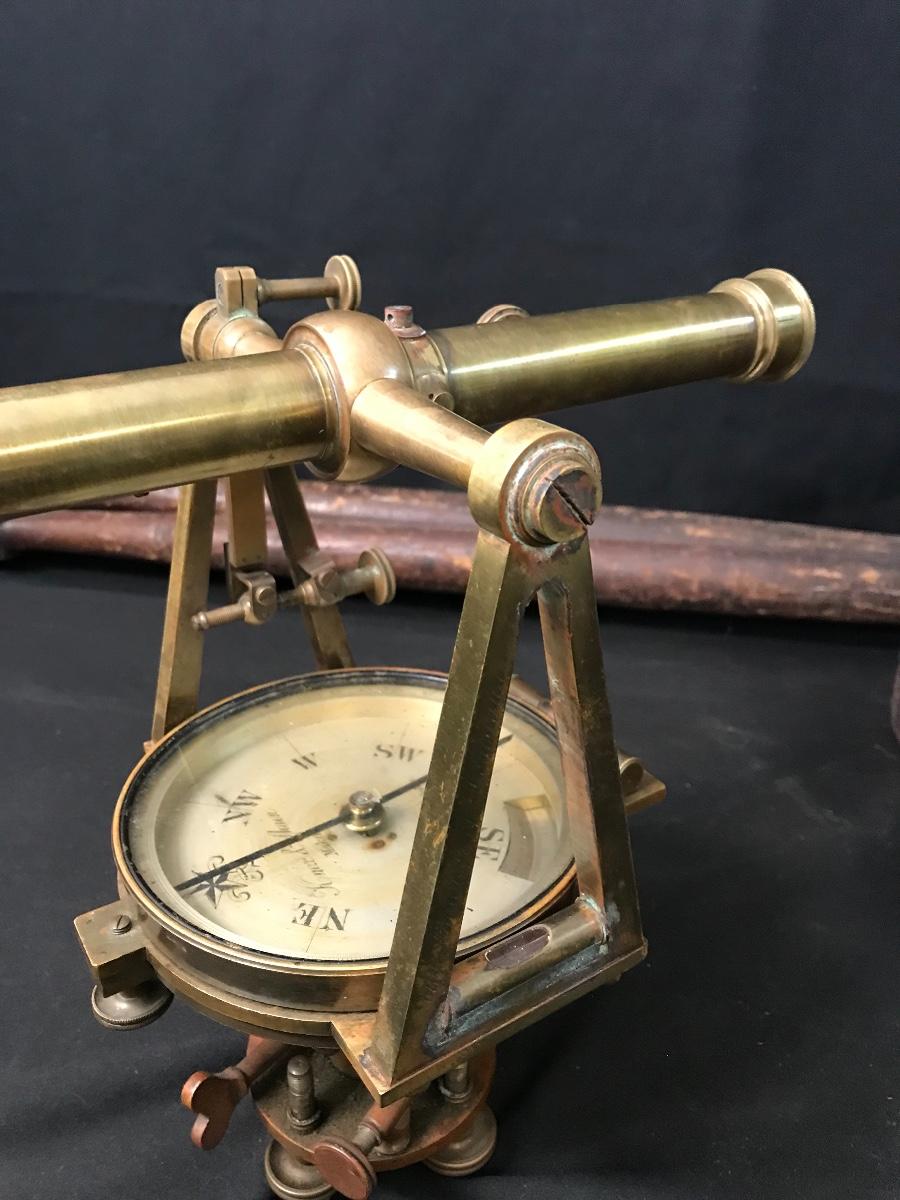 Lot 28: Antique Brass Survey Transit By Knox & Shain, Philadelphia For C. Duhamel, New Orleans