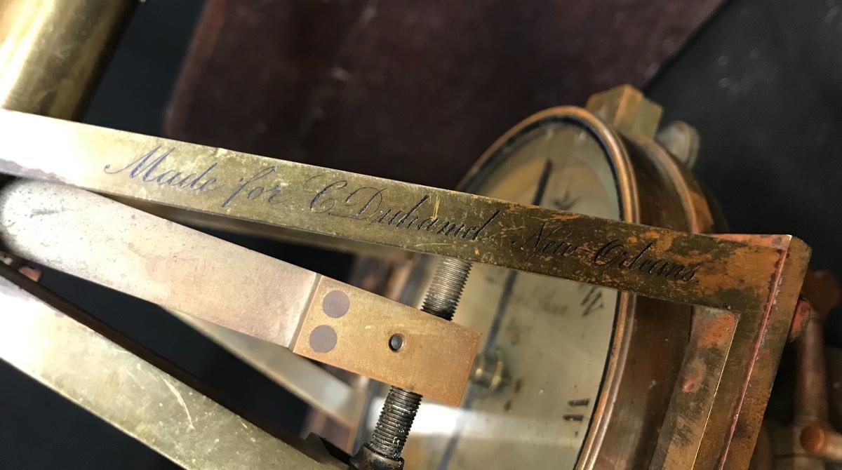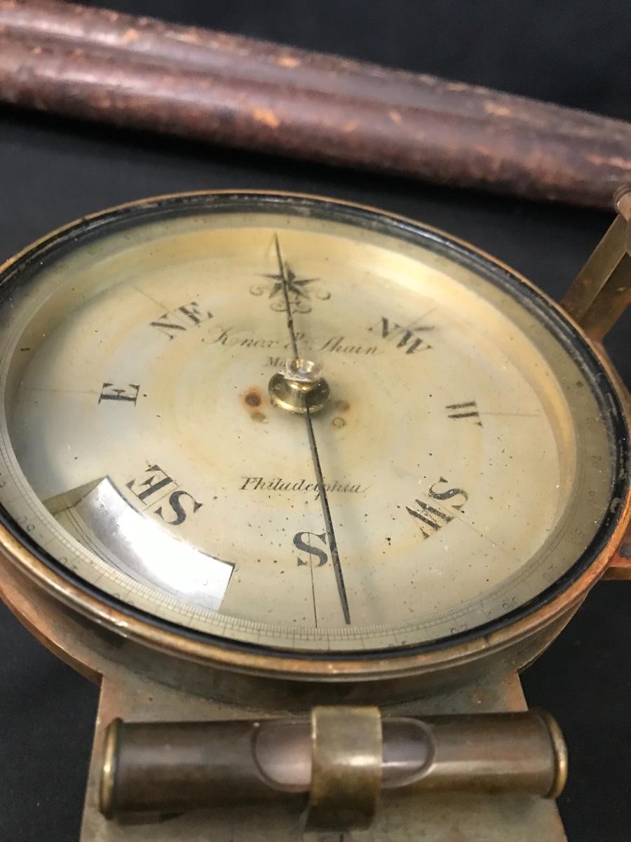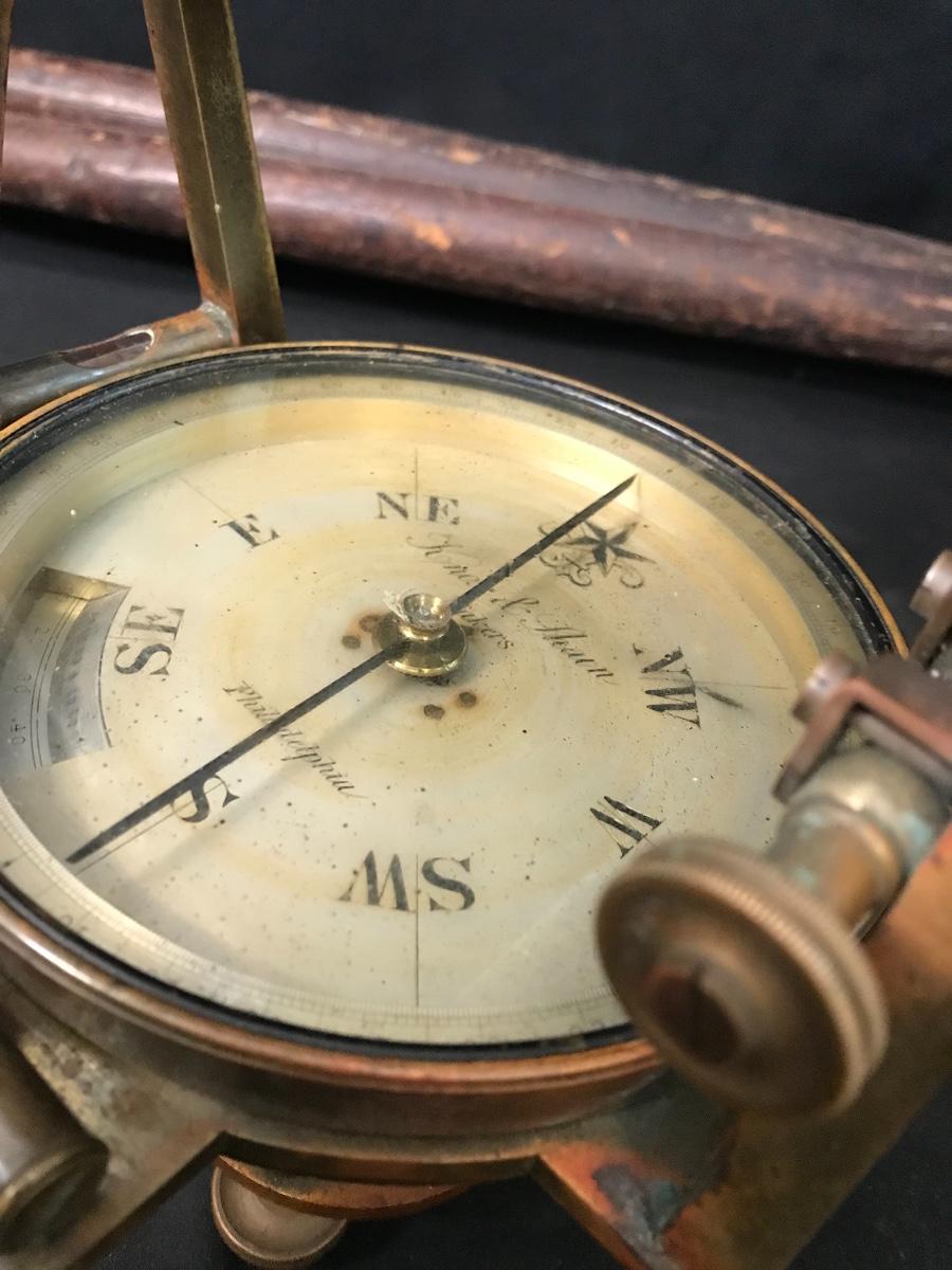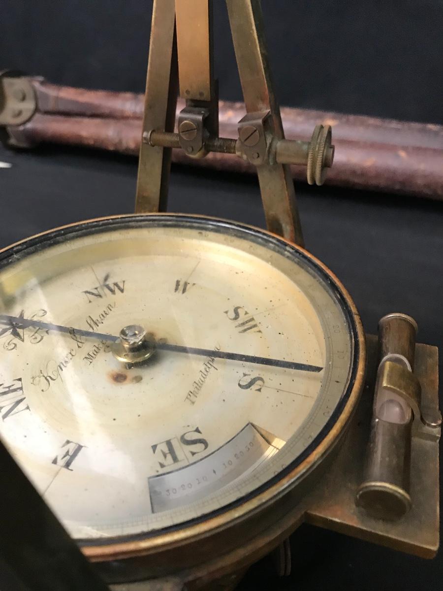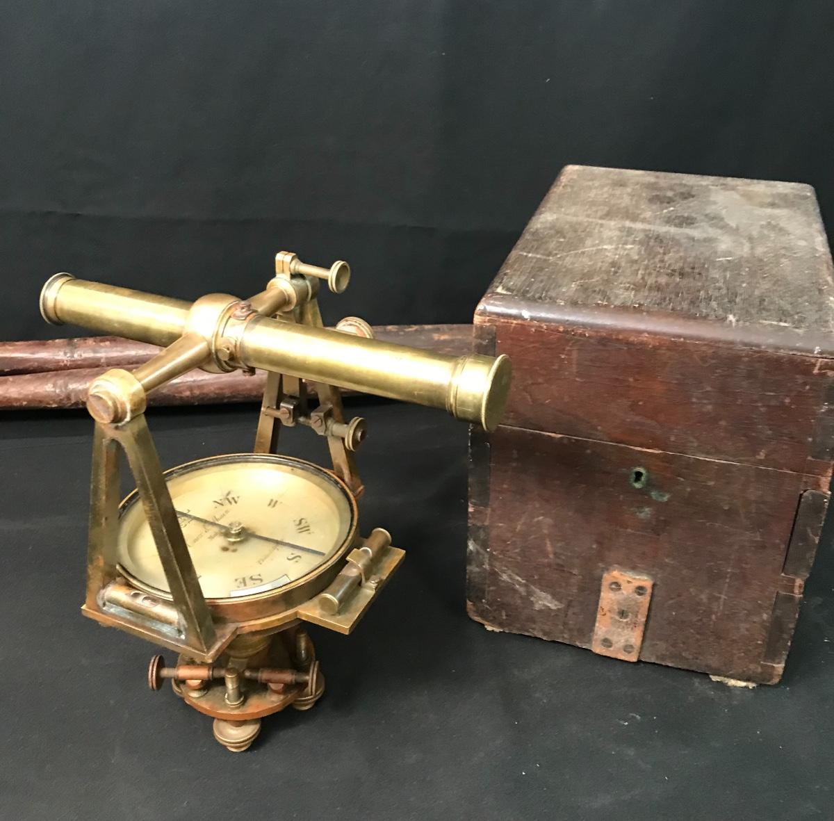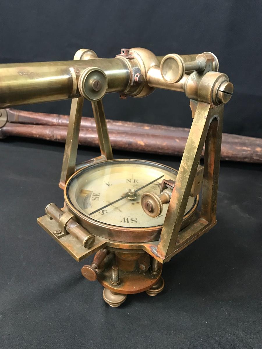 Lot 28: Antique Brass Survey Transit By Knox & Shain, Philadelphia For C. Duhamel, New Orleans