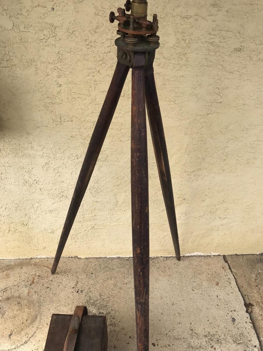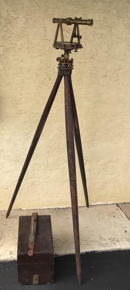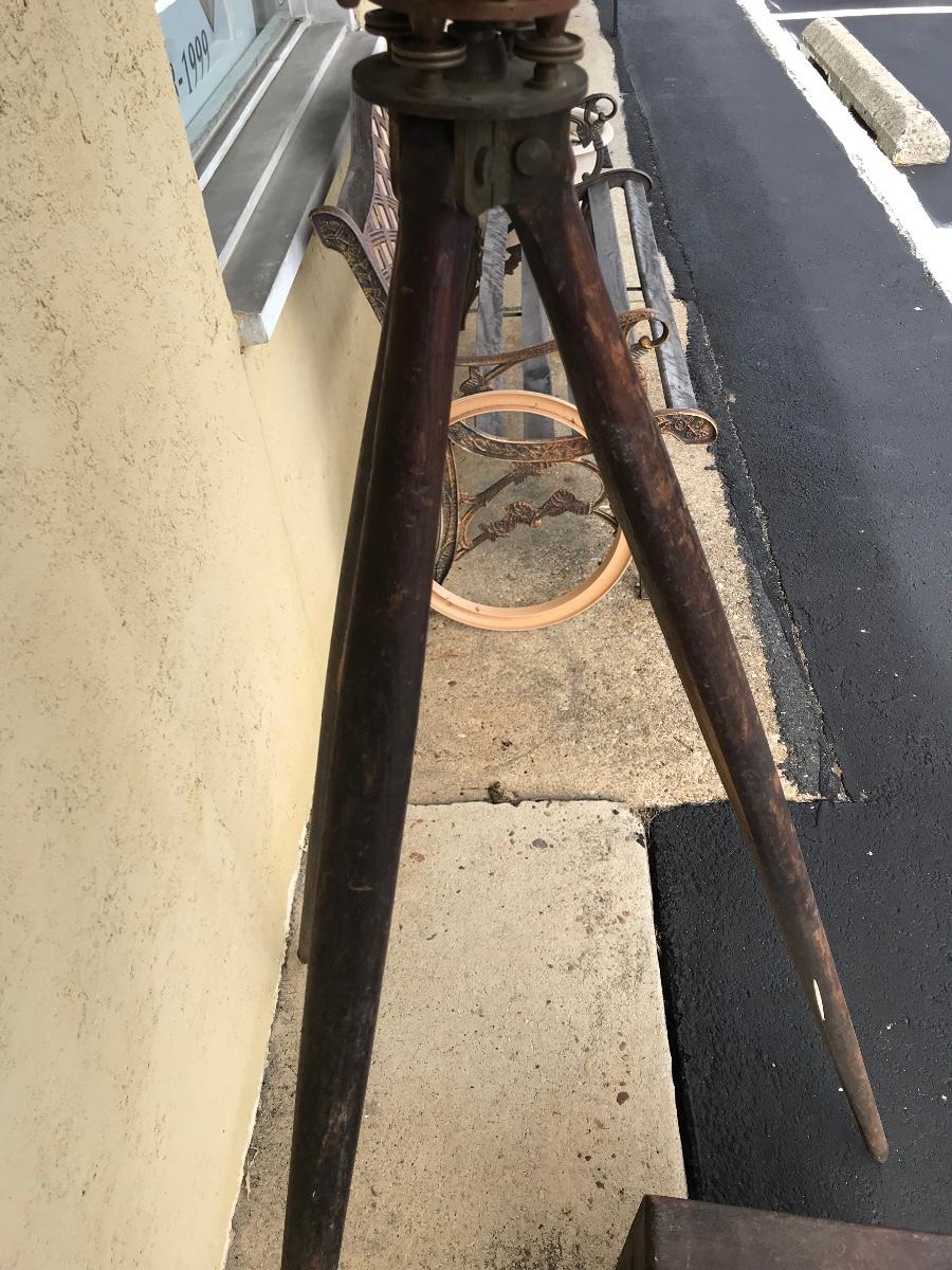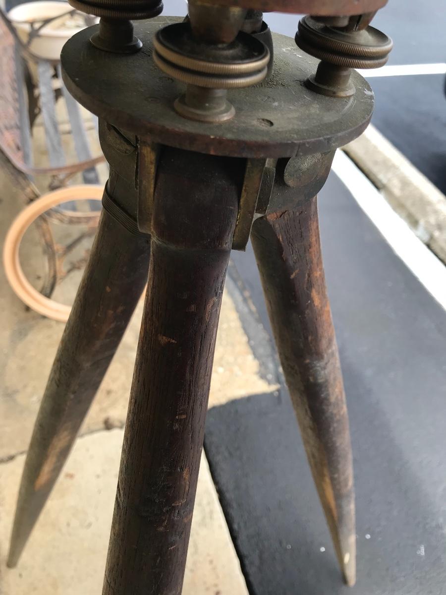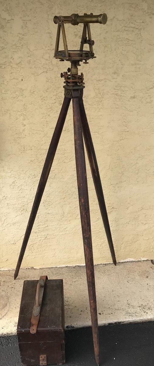Antique survey equipment - brass compass transit, tripod and case. Likely from mid to late 1800's. Markings show that it was manufactured for C. Duhamel optical instruments in New Orleans by Know & Shain in Philadelphia. Leather carrying strap for transit case is present but torn off from one side of box. Please see photos. The pictures show condition, measurements if taken, and what is included in the lot. Due to the large amount that we photograph and the time frame, we are not always able to take measurements. All items unless noted, are pre-owned and have been used. If you purchased furniture, you must bring help. We do not allow one person to carry large furniture out on their own. Bring help, tools and a truck for the safety of our client’s homes, and your personal safety. Company policy. Thank you.
