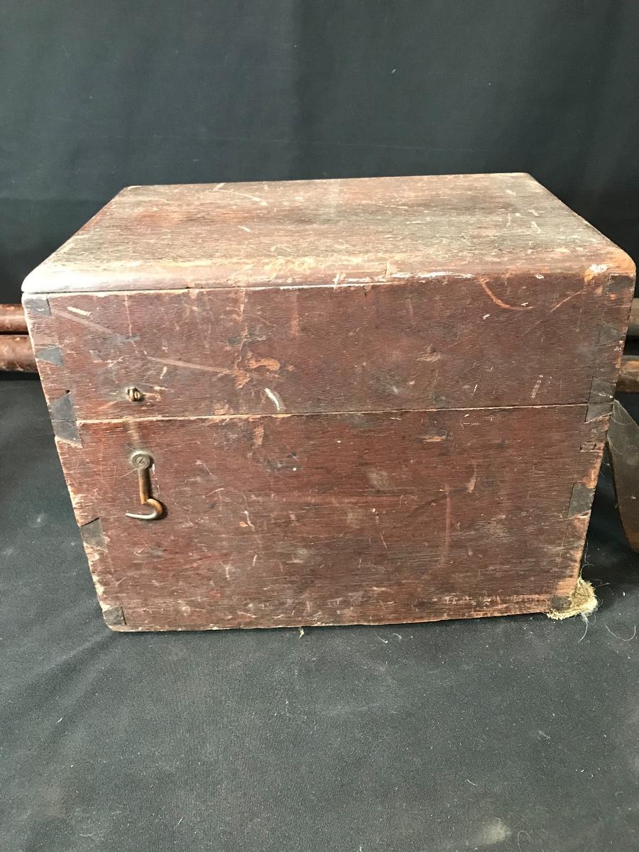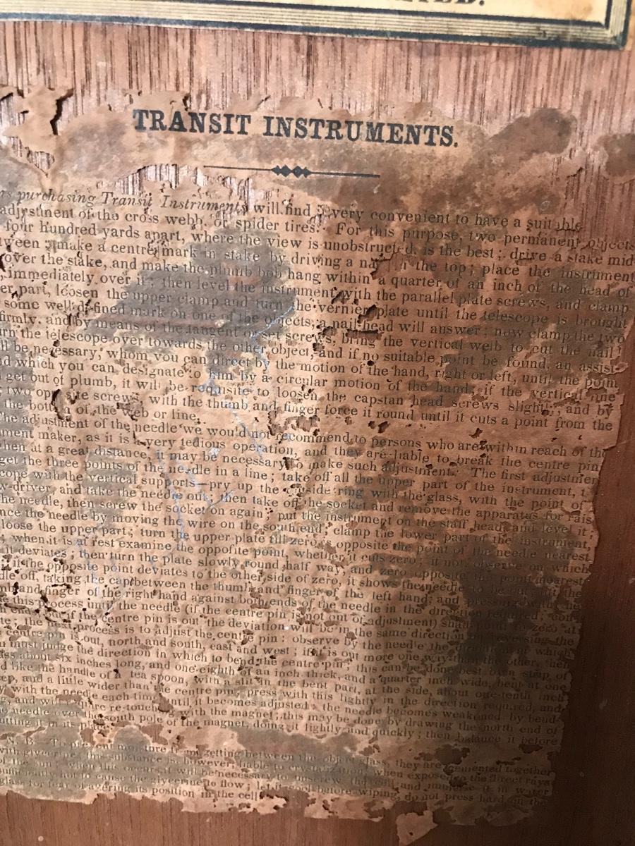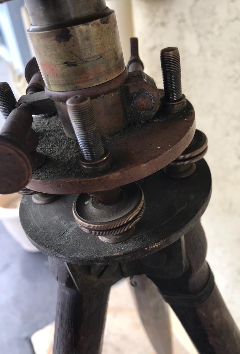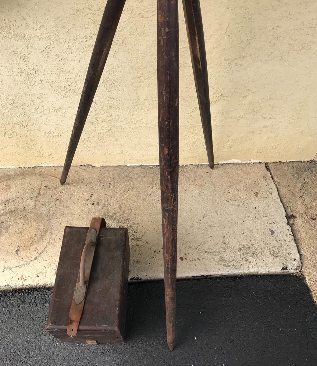 Antique survey equipment - brass compass transit, tripod and case. Likely from mid to late 1800's. Markings show that it was manufactured for C. Duhamel optical instruments in New Orleans by Know & Shain in Philadelphia. Leather carrying strap for transit case is present but torn off from one side of box. Please see photos. The pictures show condition, measurements if taken, and what is included in the lot. Due to the large amount that we photograph and the time frame, we are not always able to take measurements. All items unless noted, are pre-owned and have been used. If you purchased furniture, you must bring help. We do not allow one person to carry large furniture out on their own. Bring help, tools and a truck for the safety of our client’s homes, and your personal safety. Company policy. Thank you.