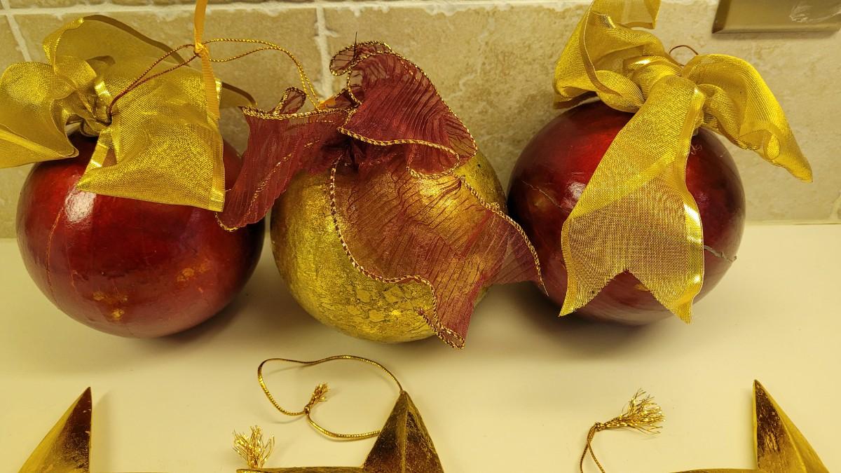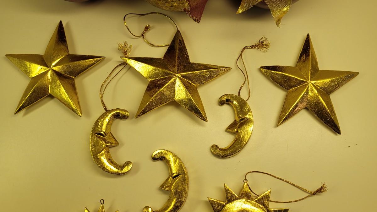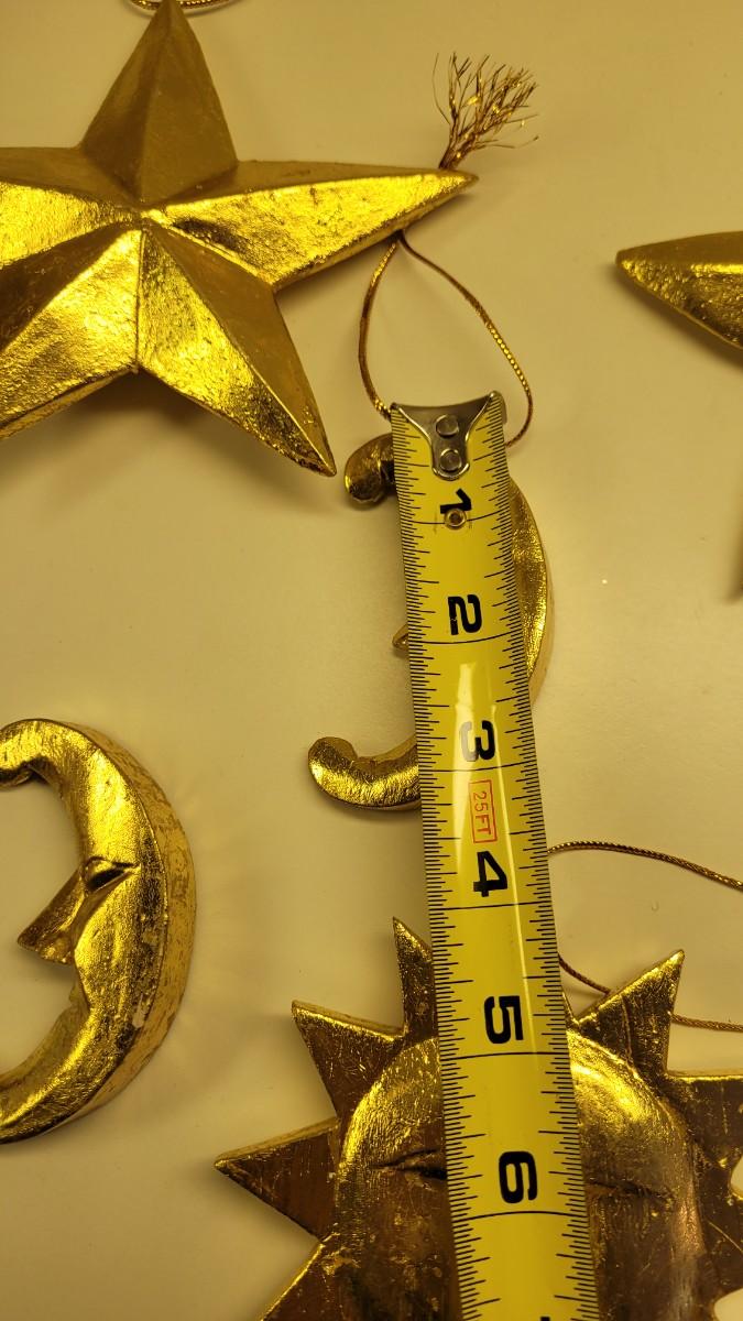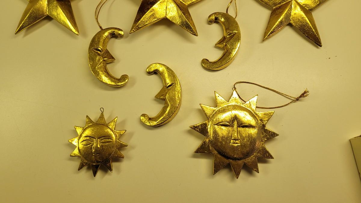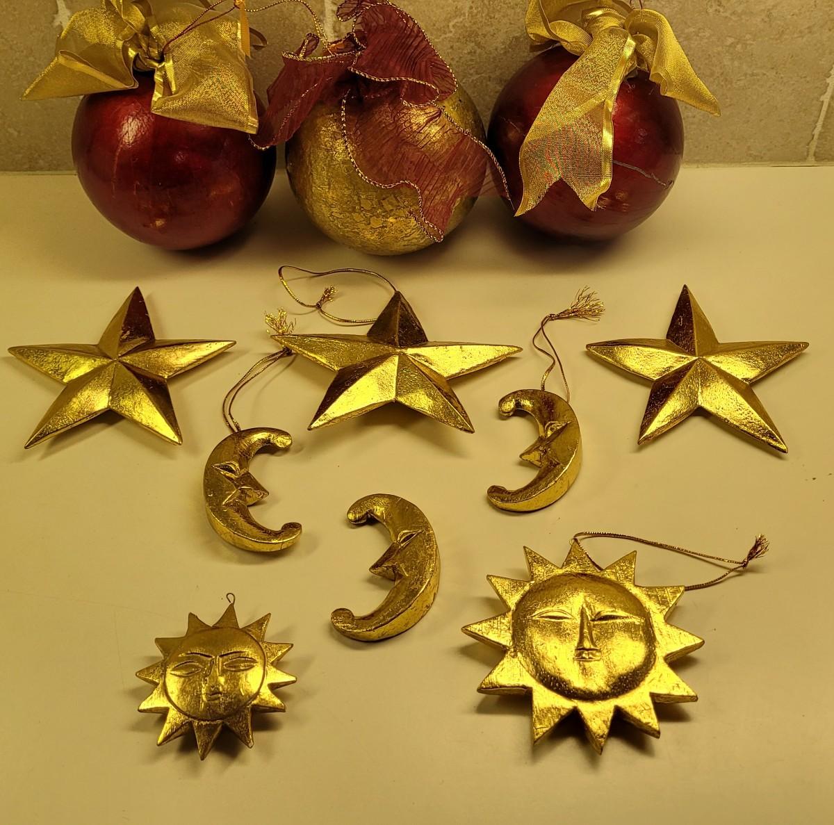 Lot 28: Large Golden Sun, Stars & Moon and 3 Large Red & Gold Balls