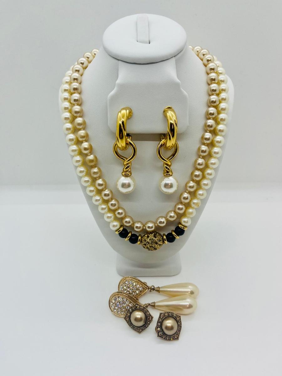 Gorgeous lot of mixed lot of faux pearl and Goldtone earrings &necklaces perfect for any occasion!. One pierced earring and two clip on. The pictures show condition, measurements if taken, and what is included in the lot. Due to the large amount that we photograph and the time frame, we are not always able to take measurements. All items unless noted, are pre-owned and have been used, and are untested. Thank you
