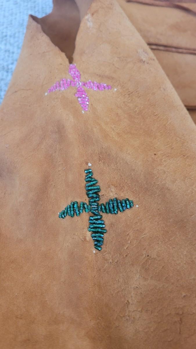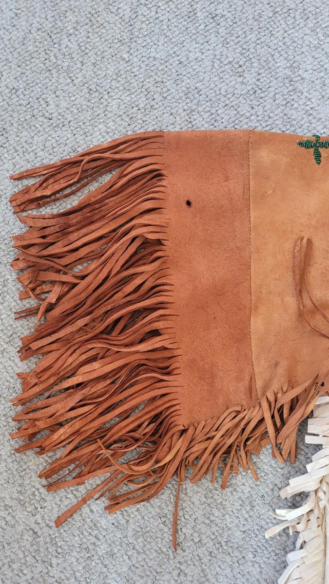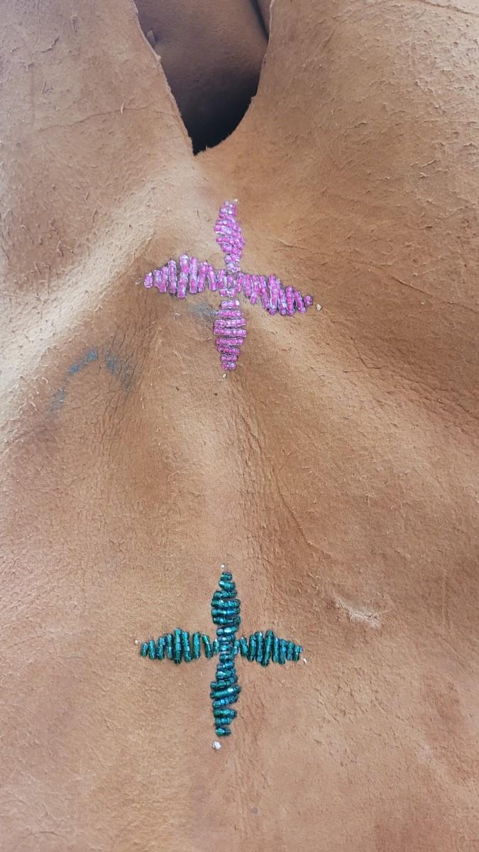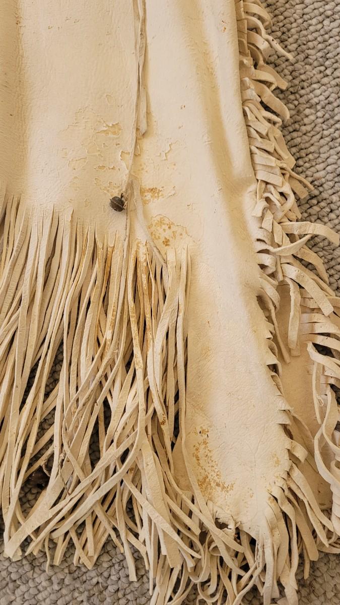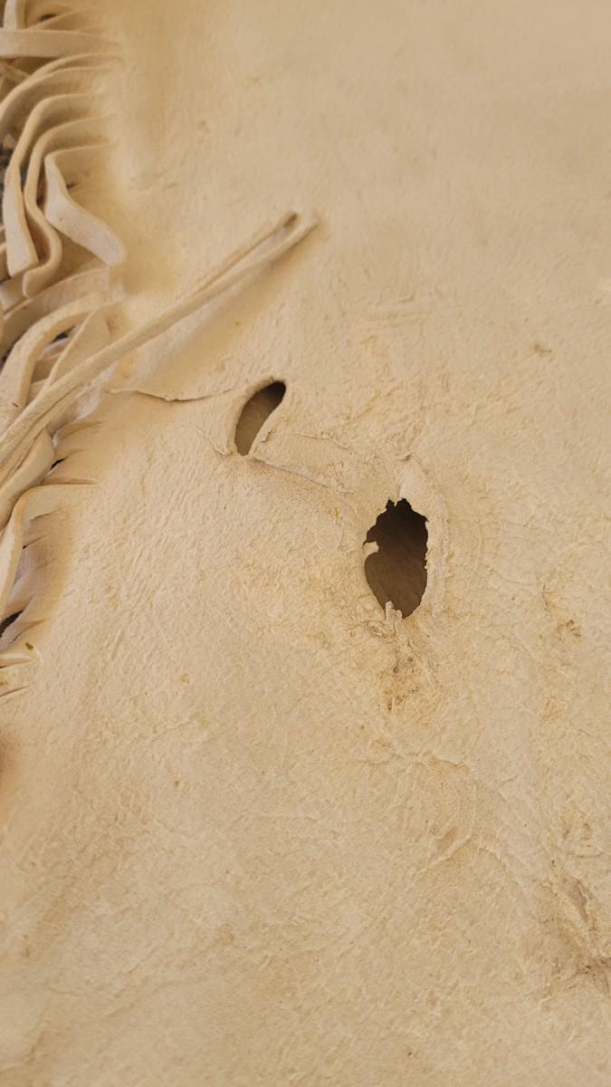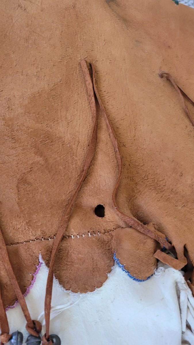 Condition: Has some holes, discoloration the white and brown hide, seed bead loss