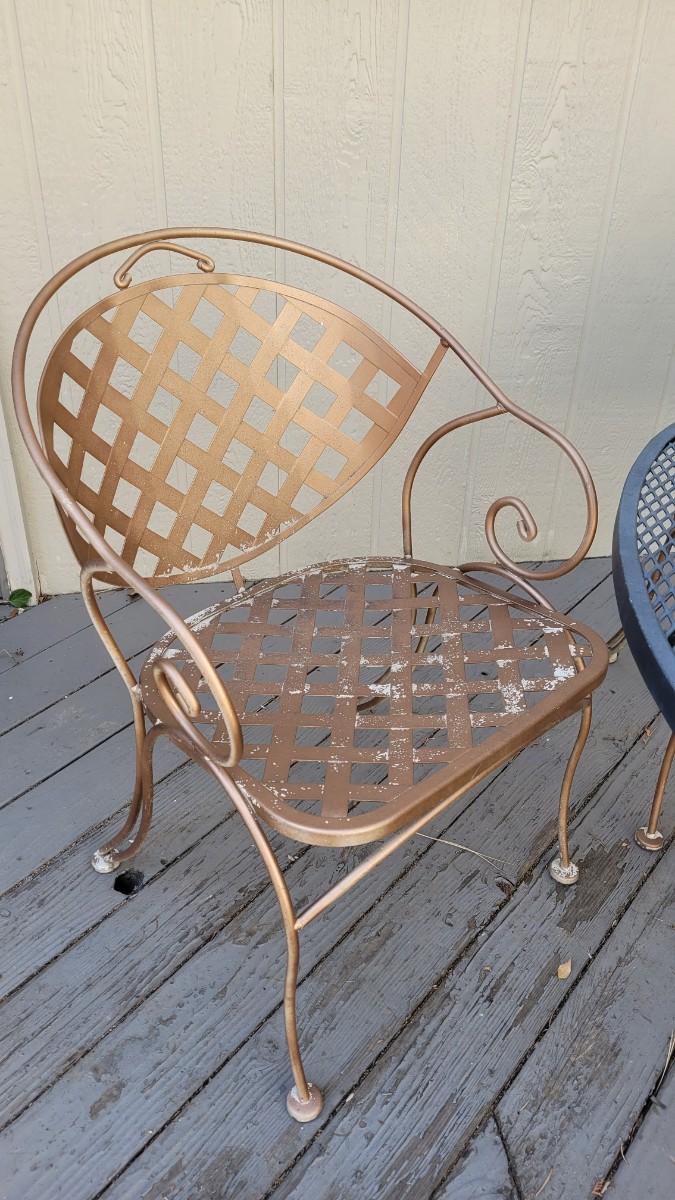 Chairs are spray painted copper.
