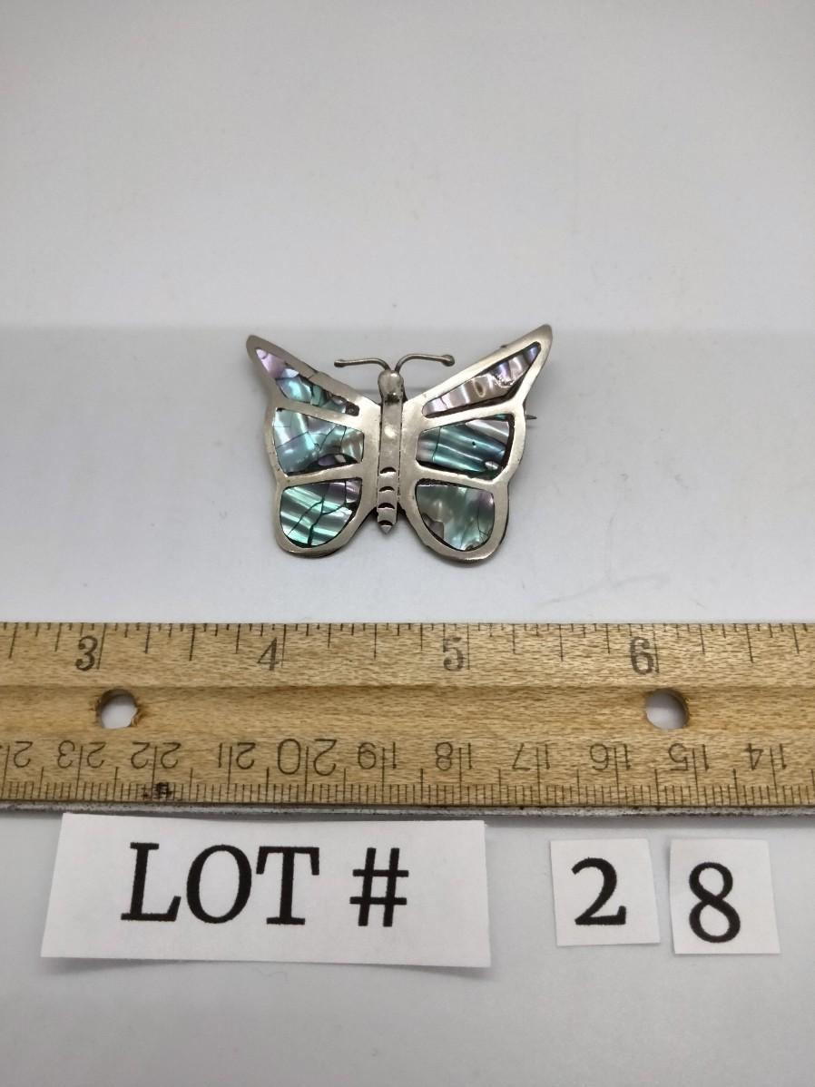 Lot 28 - Mexican Silver Albalone Butterfly Brooch