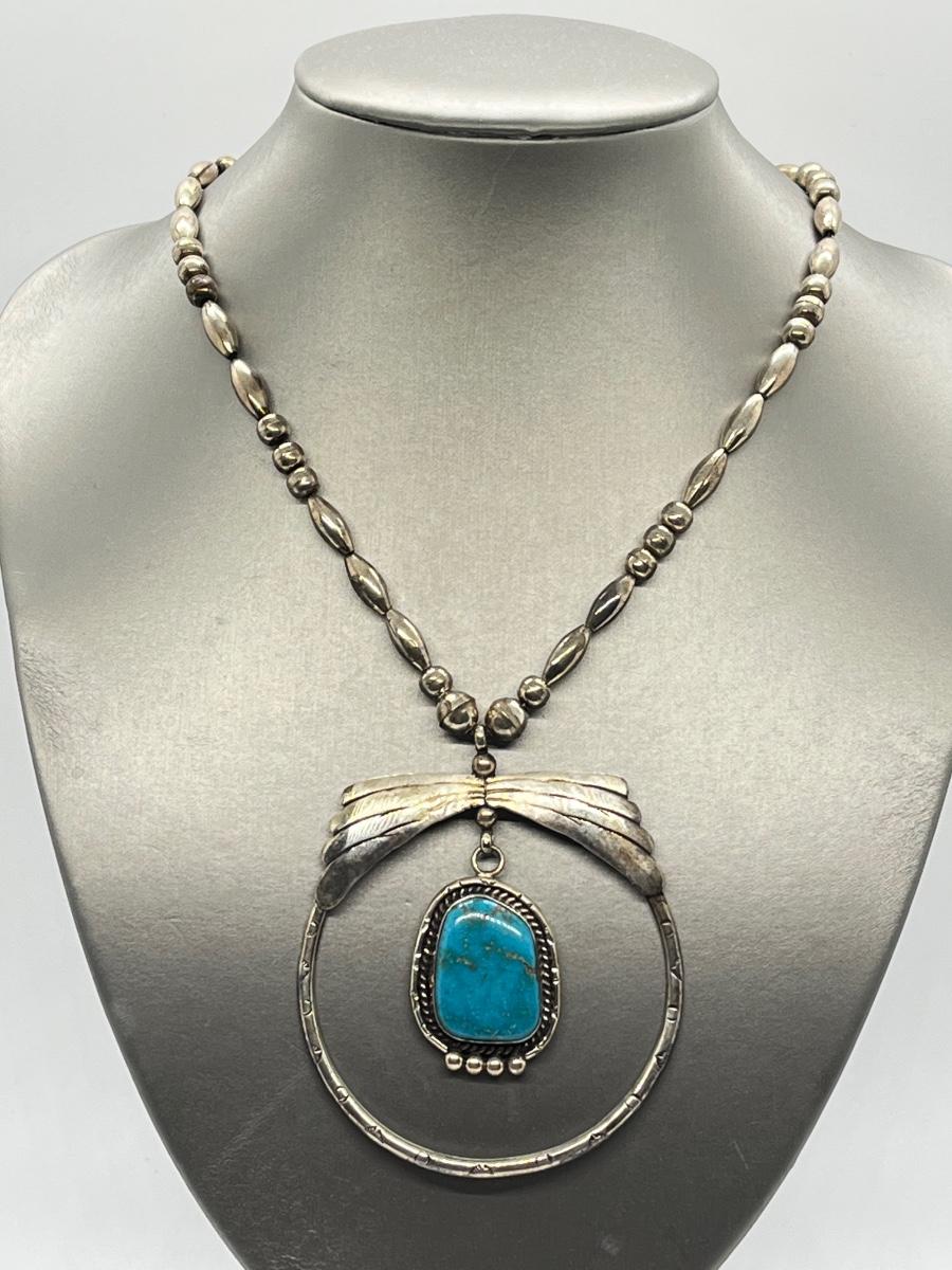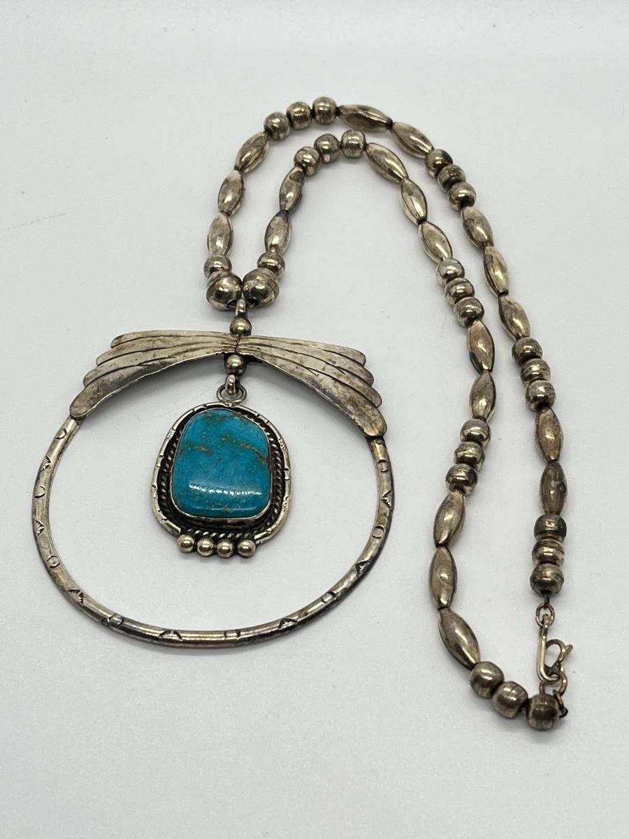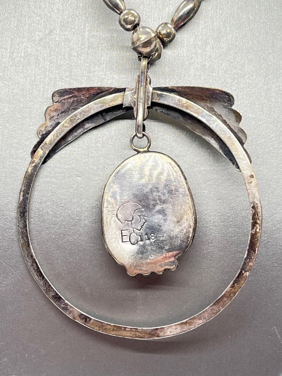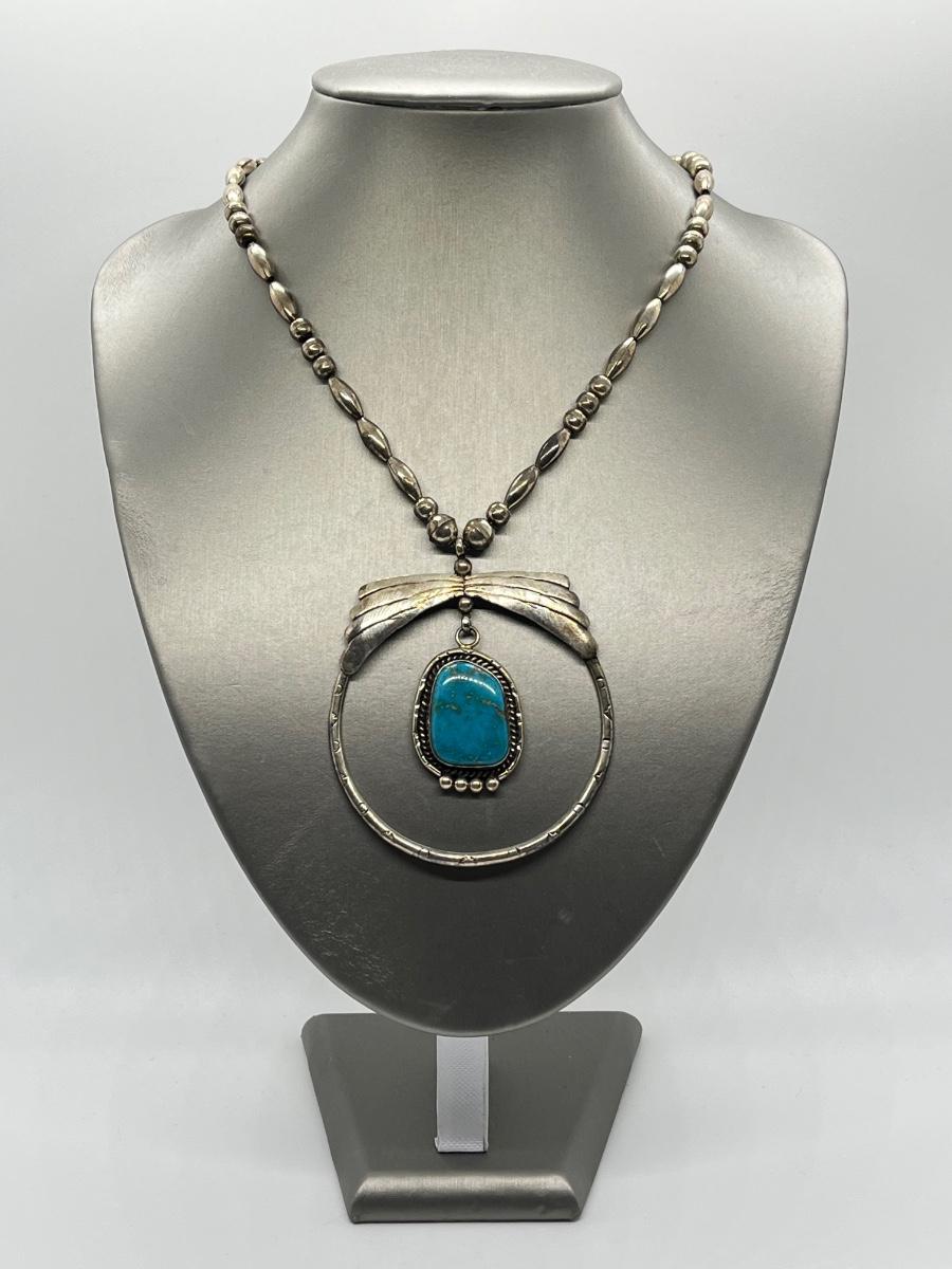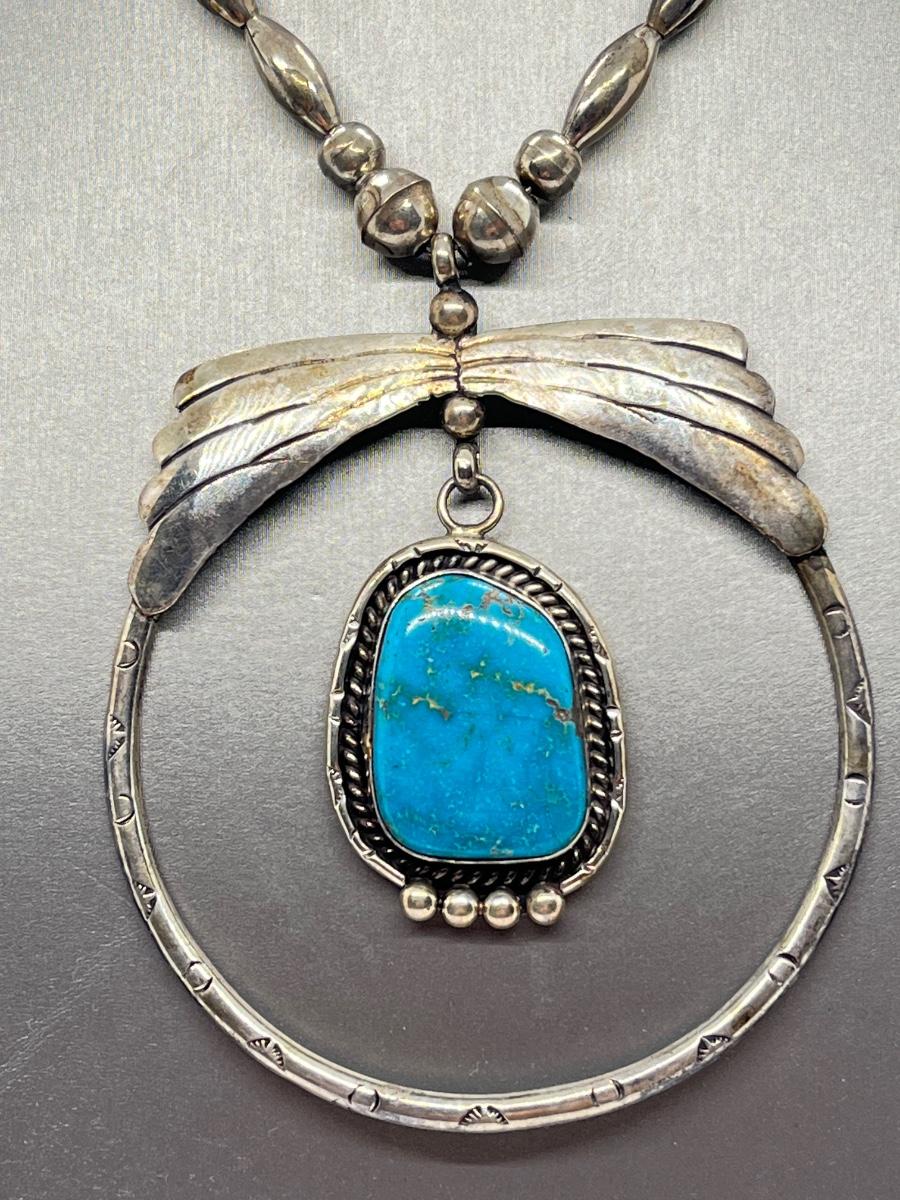 LOT 28: Vintage Eddie Chee Navajo Turquoise & Sterling Silver Pendant Necklace (18") - 45.5 Grams total weight