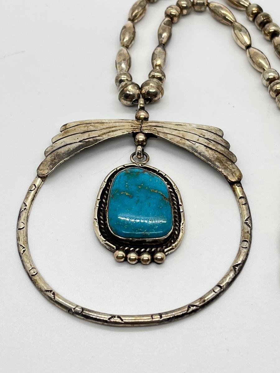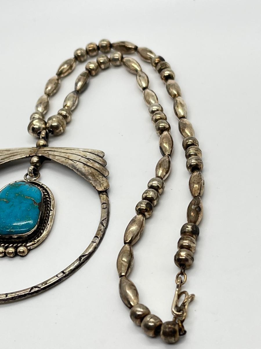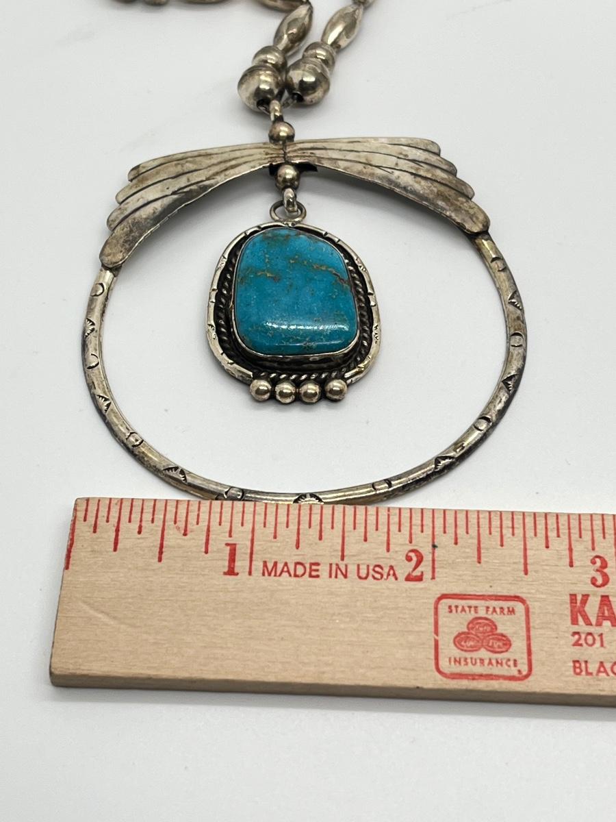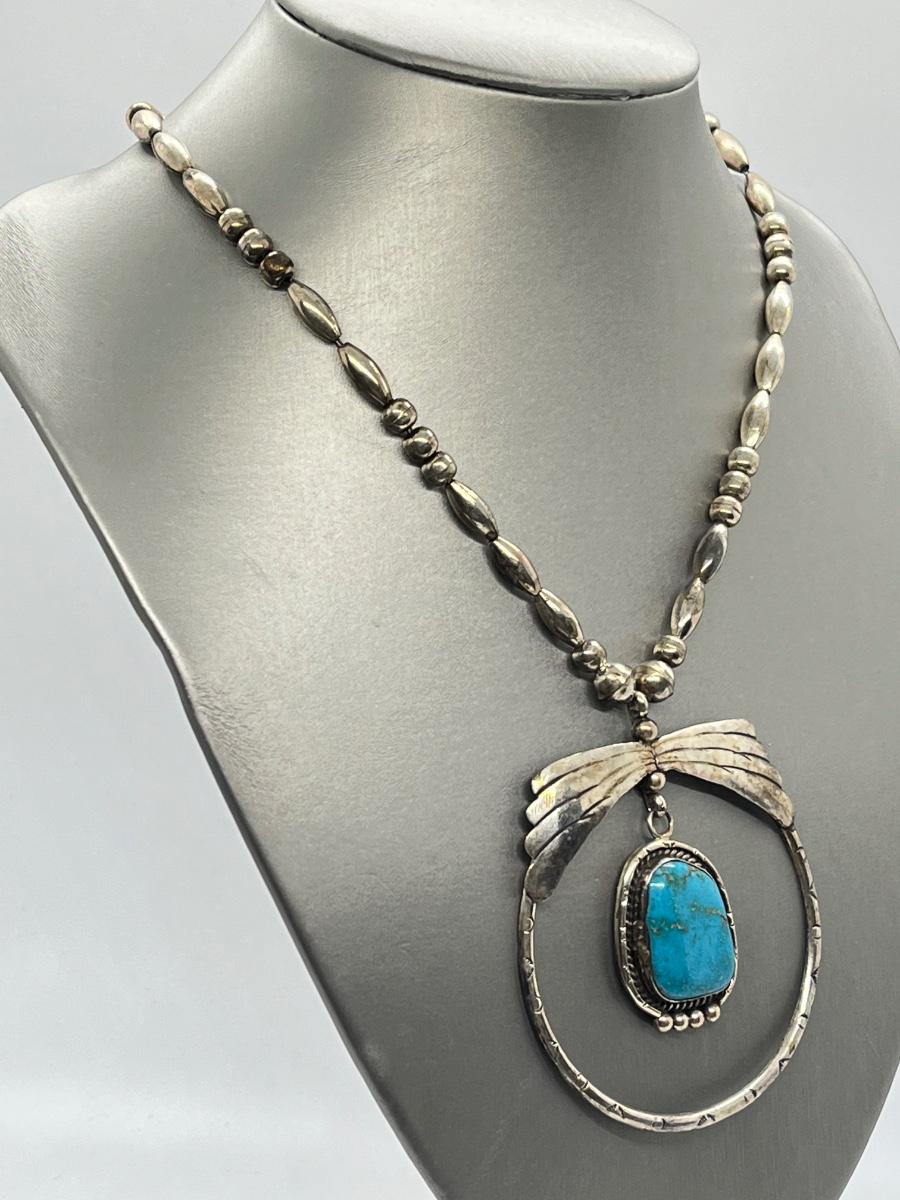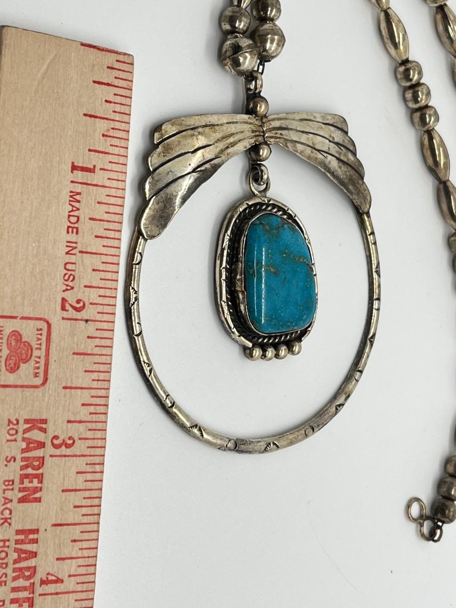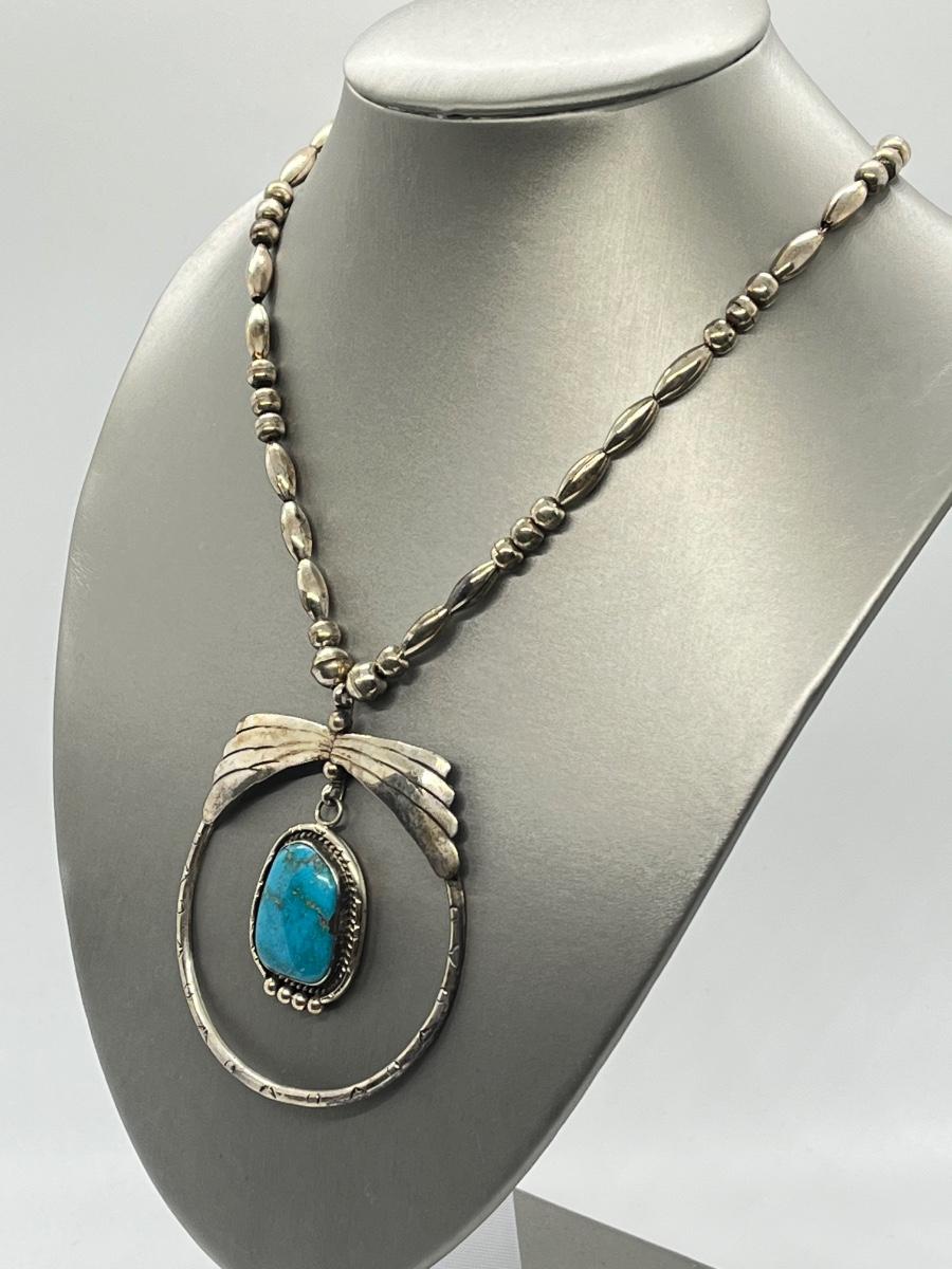 LOT 28: Vintage Eddie Chee Navajo Turquoise & Sterling Silver Pendant Necklace (18") - 45.5 Grams total weight