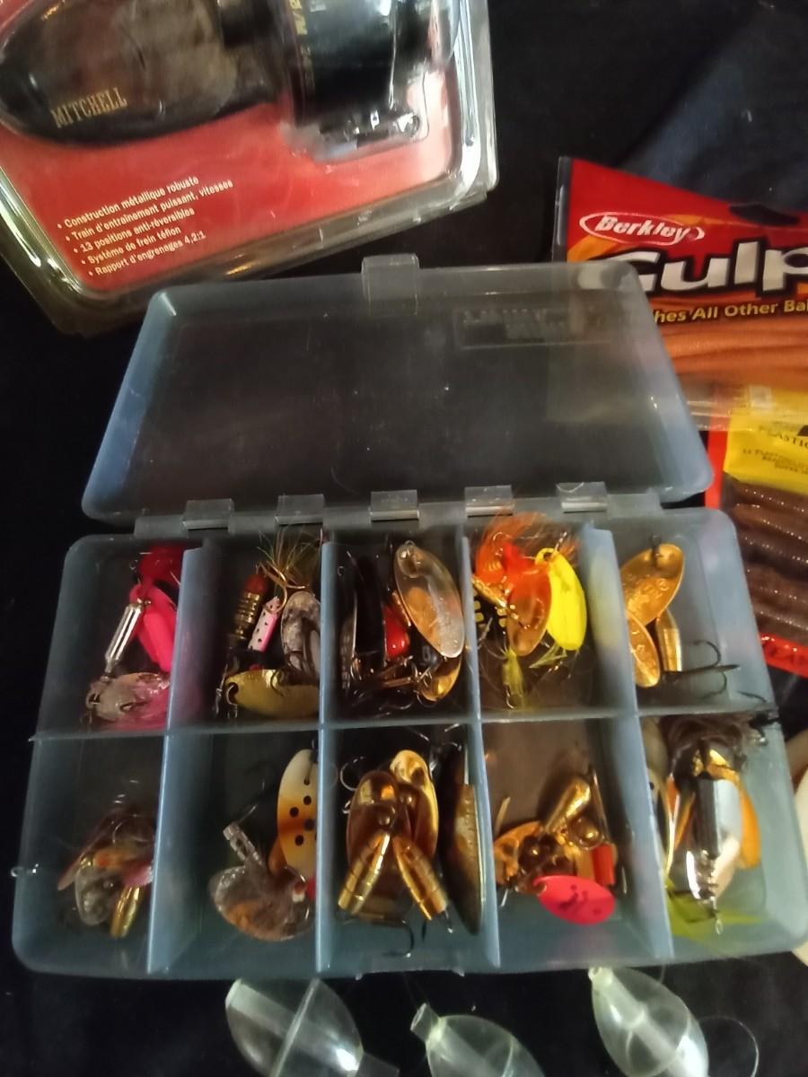 LOT 28 NEW MITCHELL FISHING REEL AND LURES