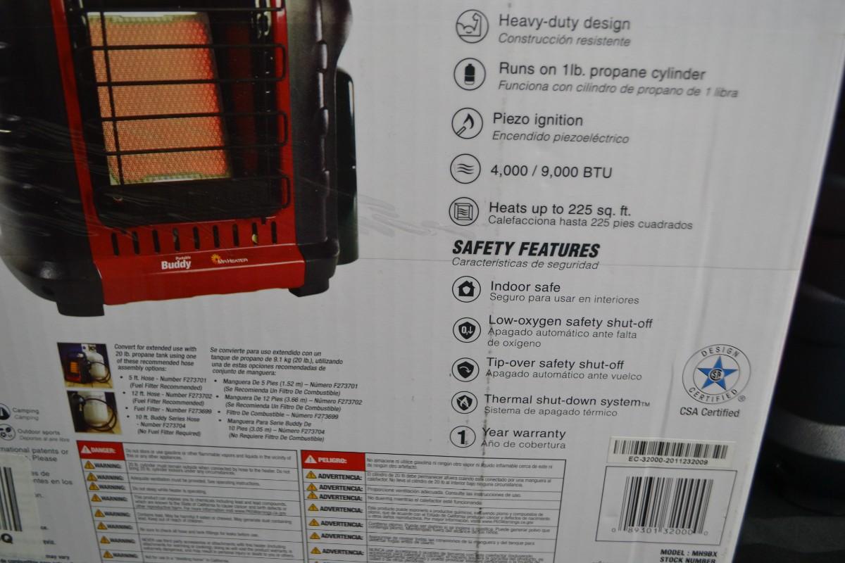 LOT 28. PORTABLE BUDDY. MR HEATER INDOOR SAFE RADIANT HEATER
