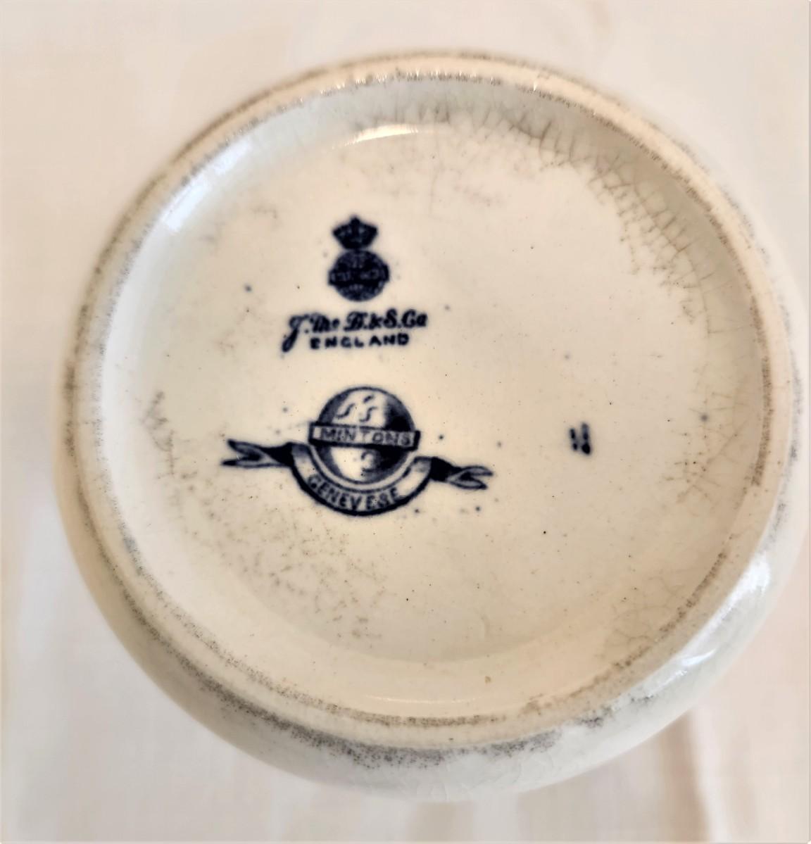 Made 1873-1900 - blue/white Minton vase with the post 1873 MINTONS mark. Good antique condition - 5" tall - pattern is "Genevese."