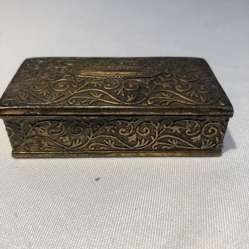 Trinket box measures 1.5” deep x 3” wide x 1” tall.