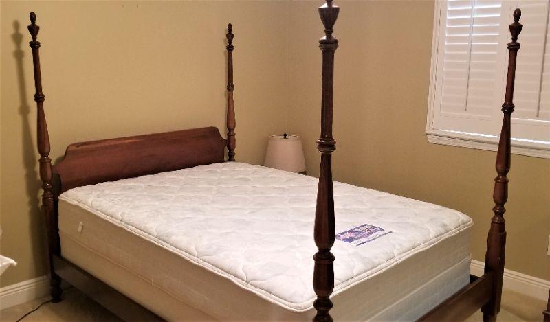 Lot #28 Double four poster bed with clean Serta Mattress