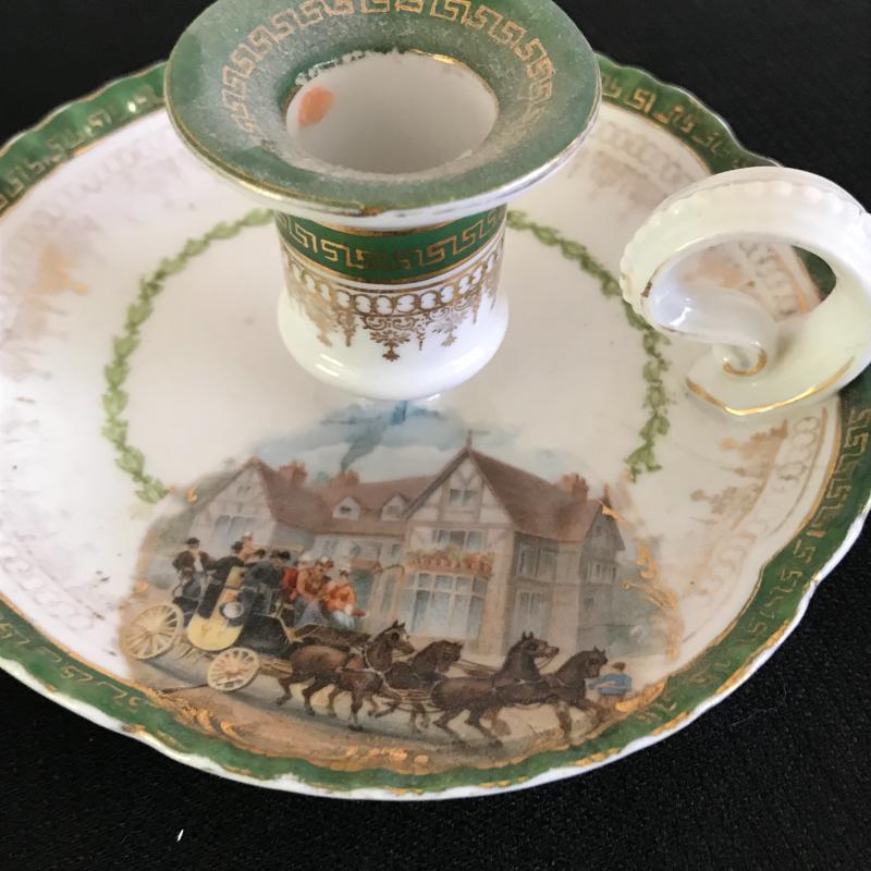 Man and woman figurines (approx. 6” tall), and candle holder with marking that reads “Crown Austria.” Shipping available or local pickup in Asheville, NC.