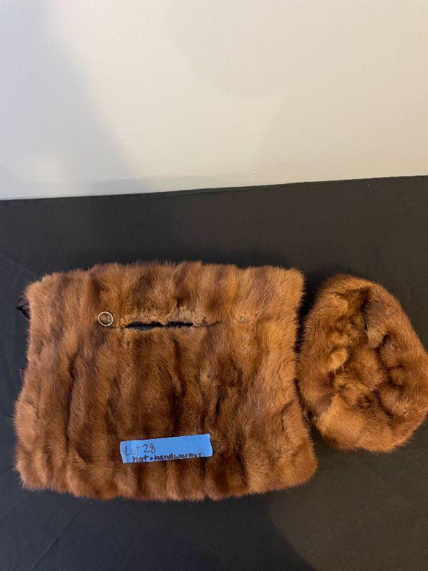 Lot 28 - Genuine mink fur hat and purse/handwarmer