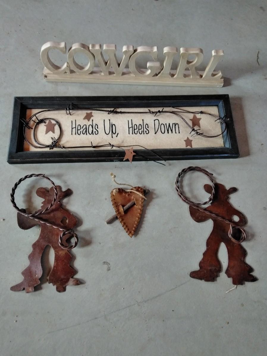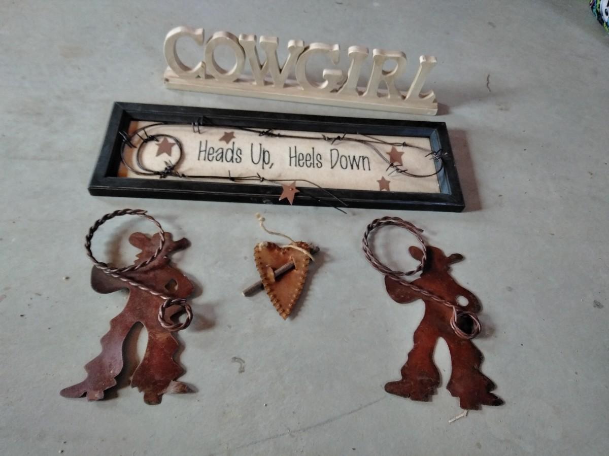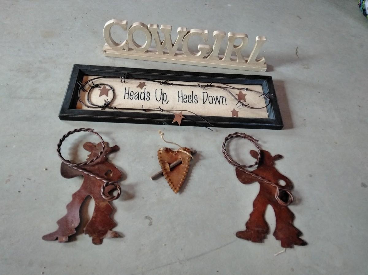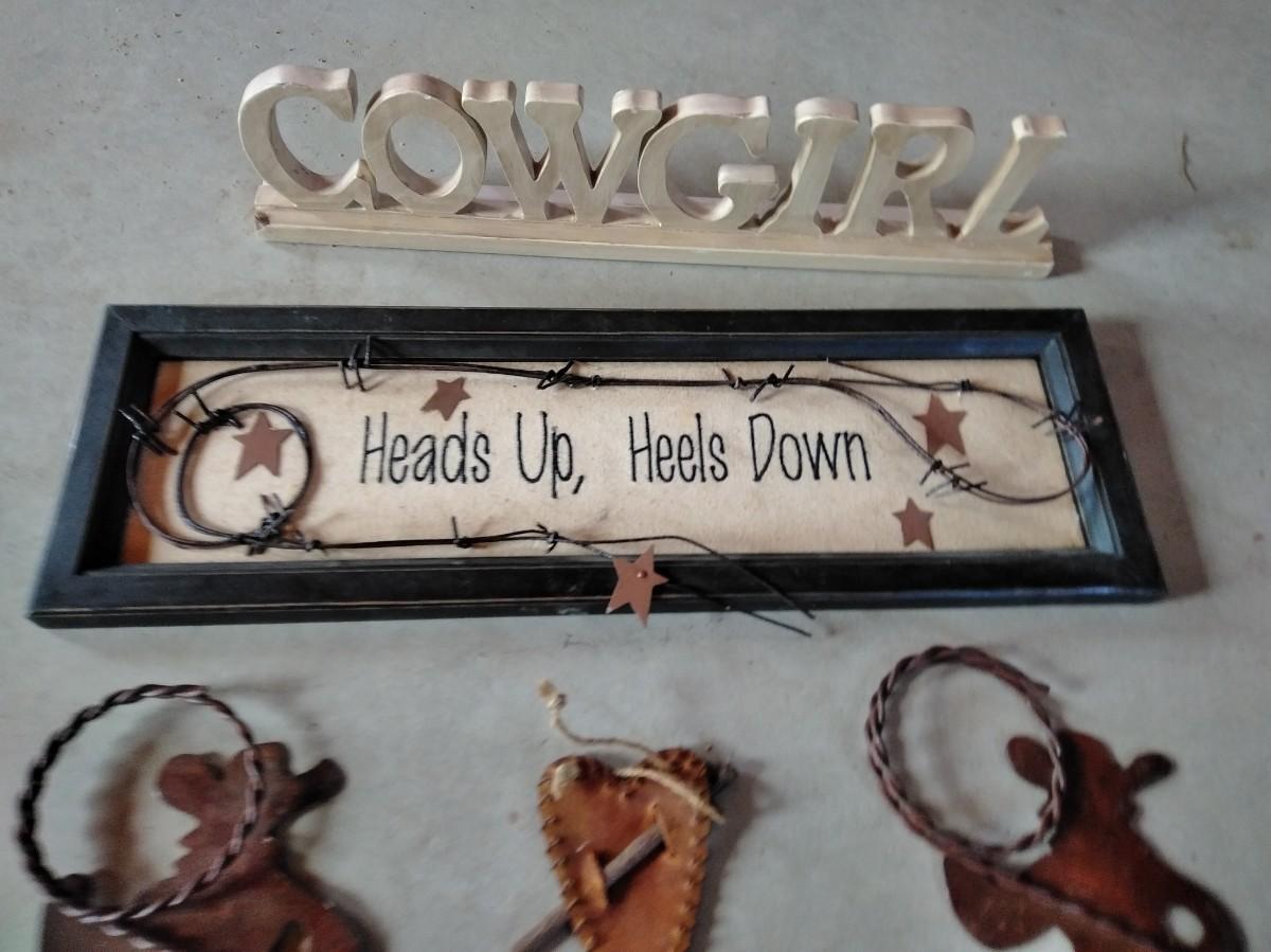 LOT 28 HEADS UP HEELS DOWN COWGIRL DECOR (W)