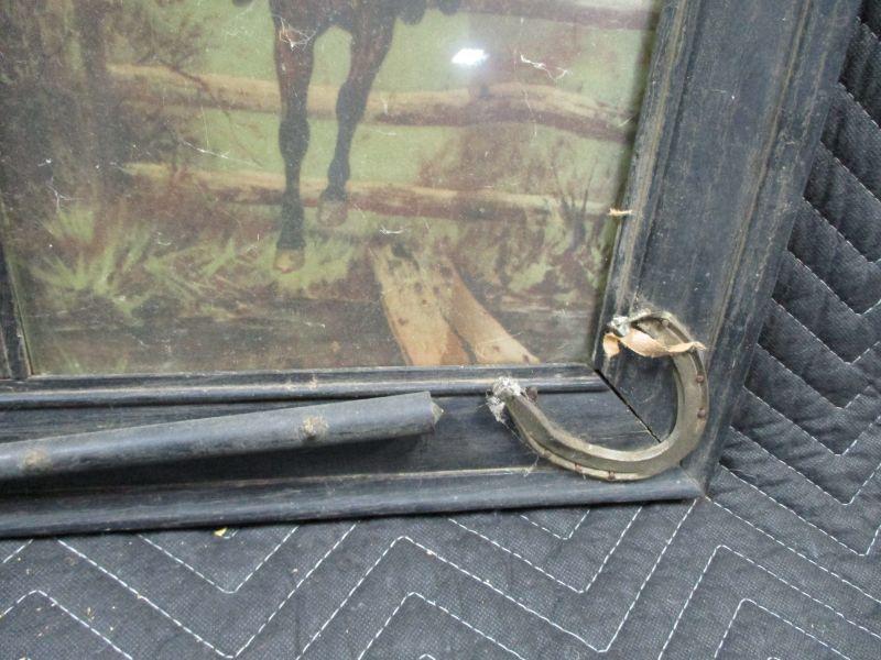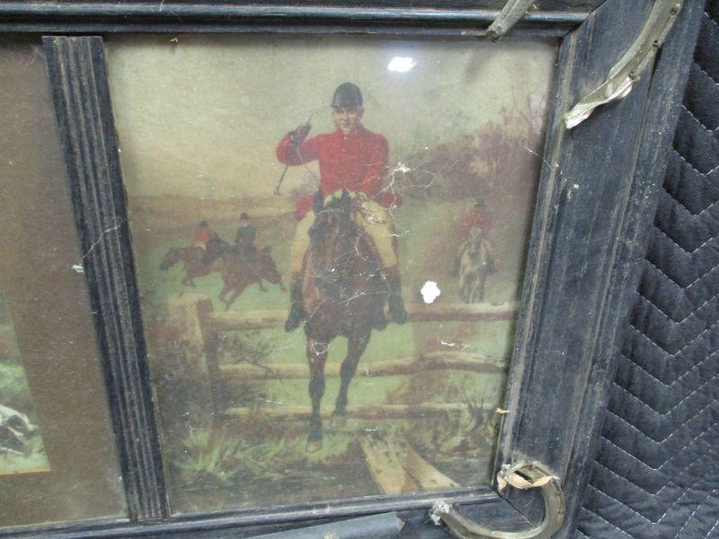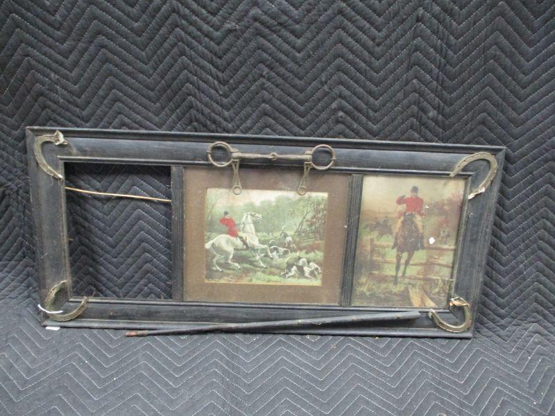 Lot 28 - Vintage Hunter Scene Prints in Horse Shoe Accented Frame
