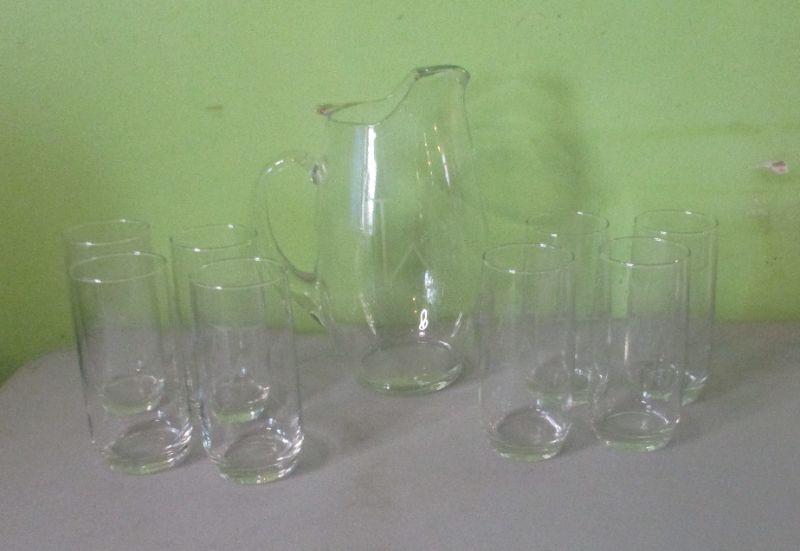 The pitcher is from House of Crystal in Greenville and monogrammed with a capital W. Because the glasses appear to match the style and they also are monogrammed, I'm assuming that they are from HOC as well. The glasses were wrapped in their original tissue which leads me to think that they were never used. If you're last name isn't W, then tell people that the W stands for water, or fill the pitcher with Sangria and the W stands for Wine. Or just say, "Whatever" when they ask...that works as well.