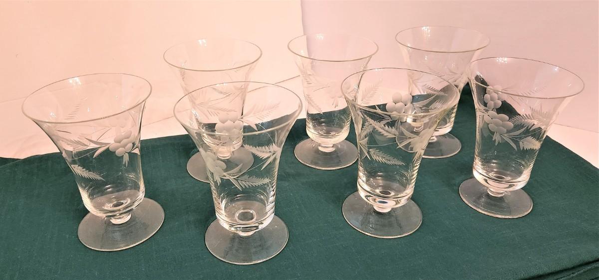 Quality vintage crystal - 7 matching footed water/iced tea glasses, each 5.5" tall. Good condition.