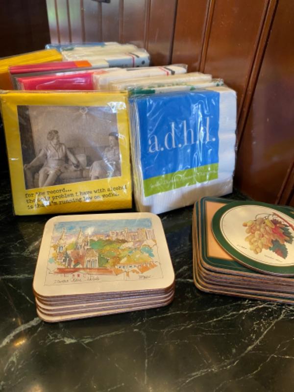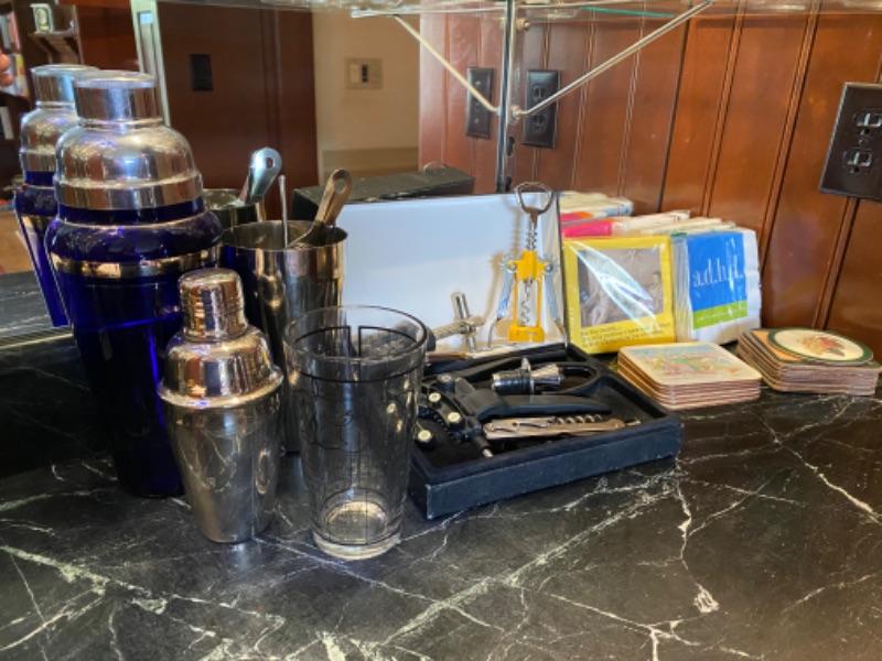 Bar Set with shakers, wine opener, cocktail napkins, coasters