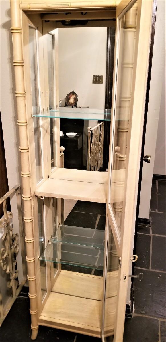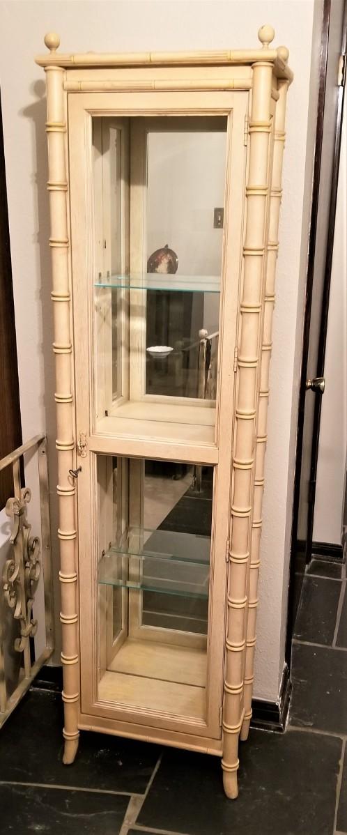 Lot #28 Mid Century Faux Rattan Display Cabinet - Working key